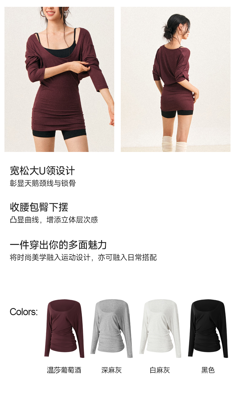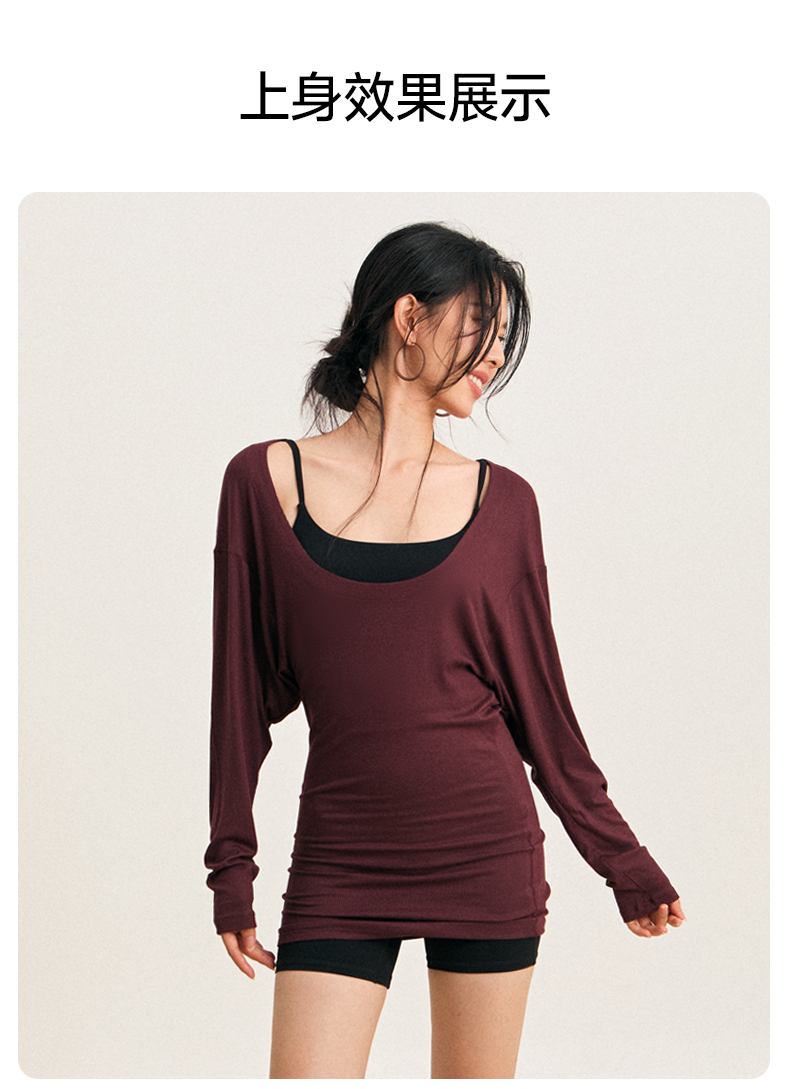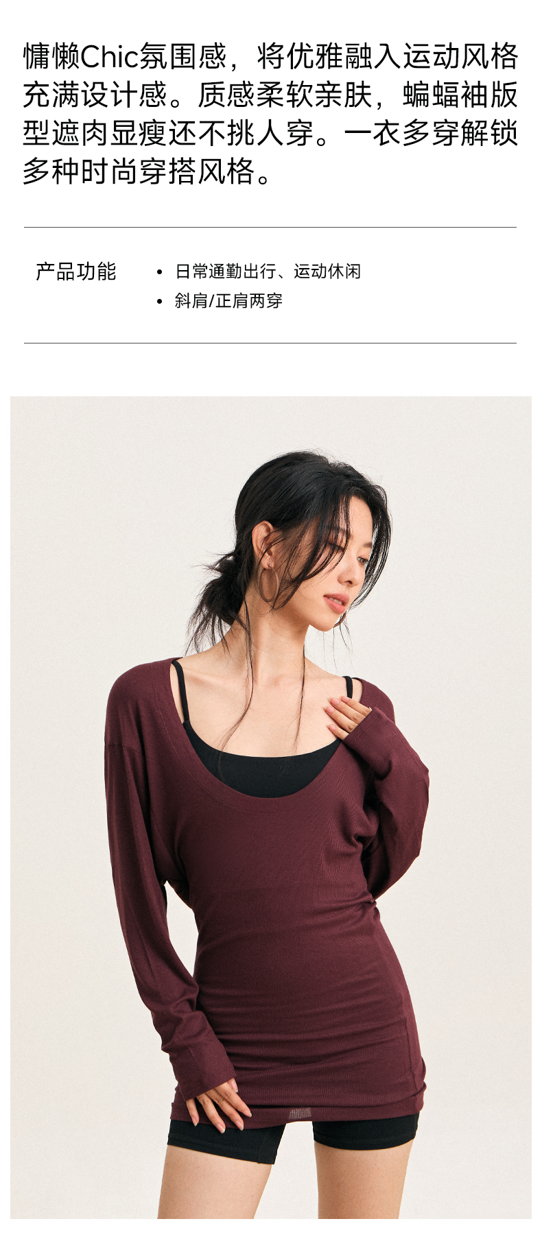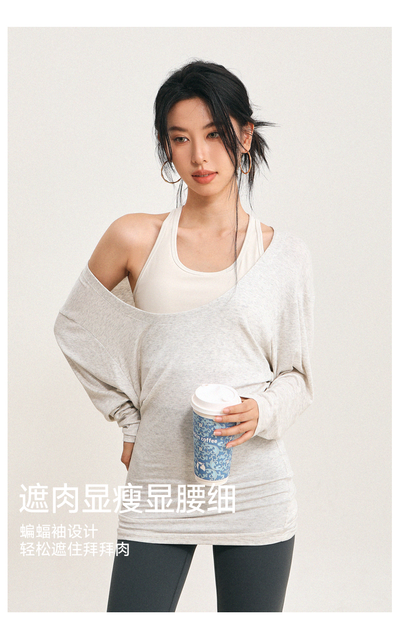 【限时秒】YOGACODE【火树银花系列】大U领运动罩衫女遮屁股休闲蝙蝠袖长袖瑜伽服上衣DWI125626