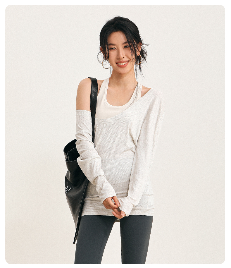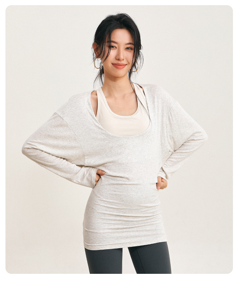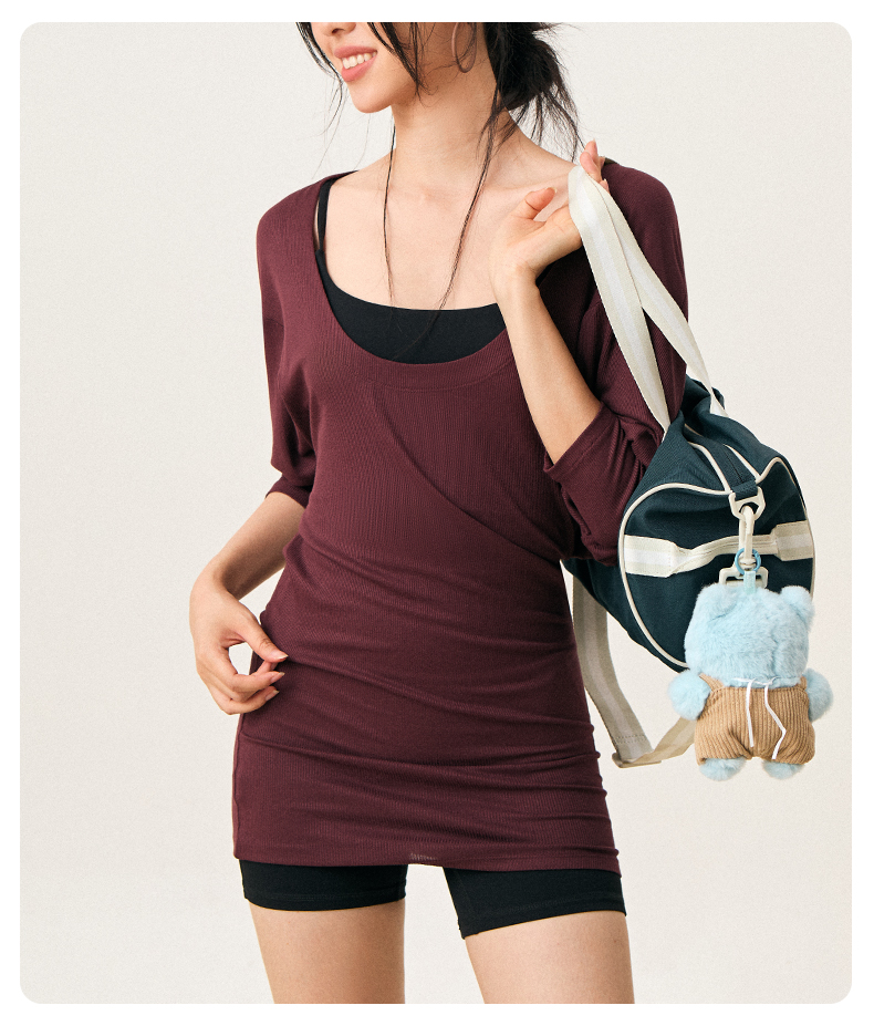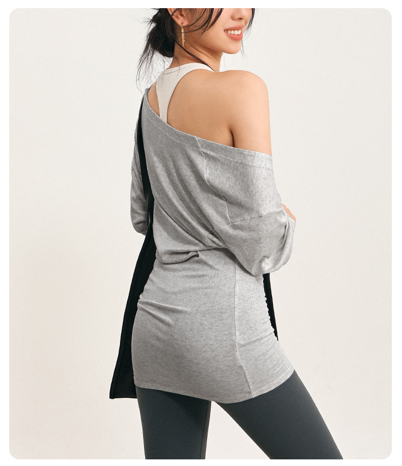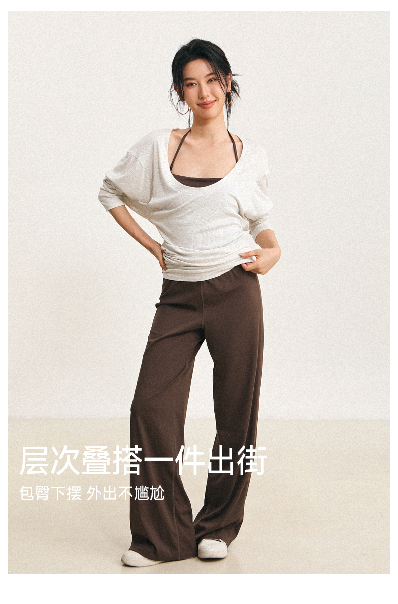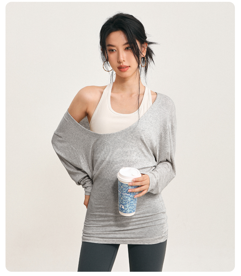 【限时秒】YOGACODE【火树银花系列】大U领运动罩衫女遮屁股休闲蝙蝠袖长袖瑜伽服上衣DWI125626