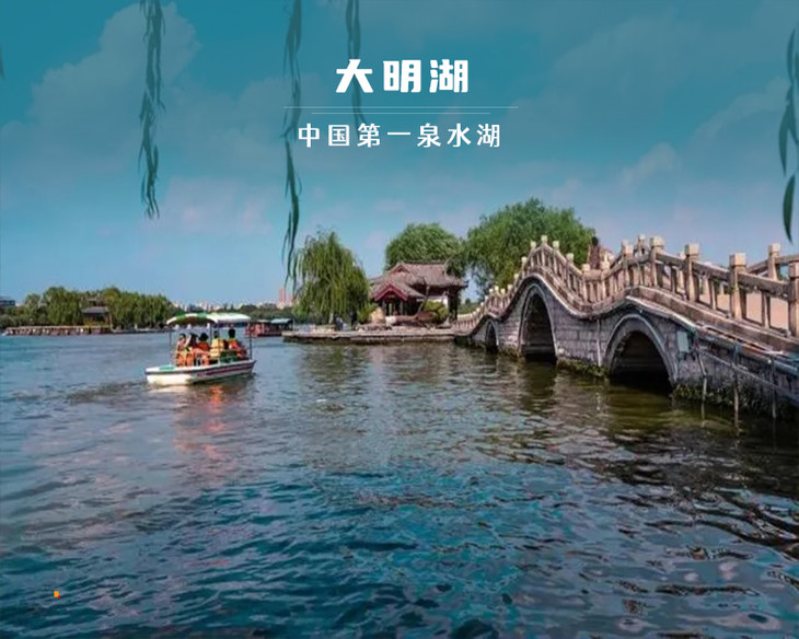 4)或前往【大明湖】,可乘坐公共交通:41路/k109路等等公交到大明湖站下车,或者步行走到大明湖公园。在大明湖我们可以坐船、看湖畔垂柳、漫步湖边享受夕阳西下。