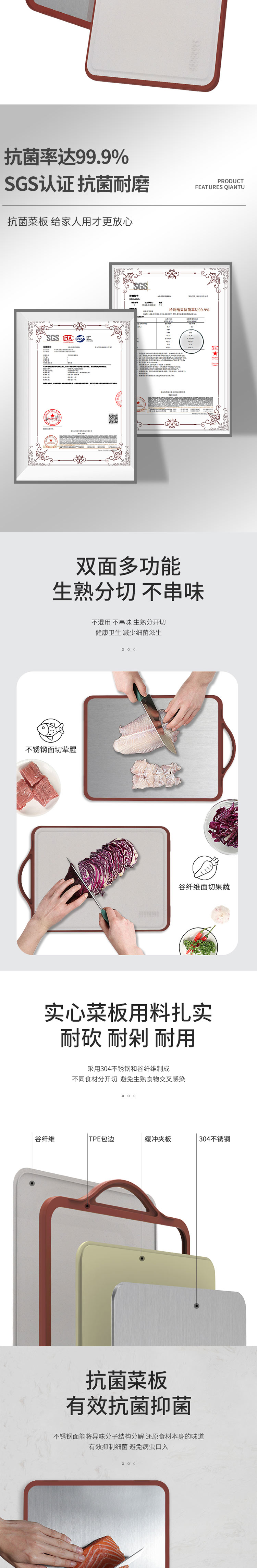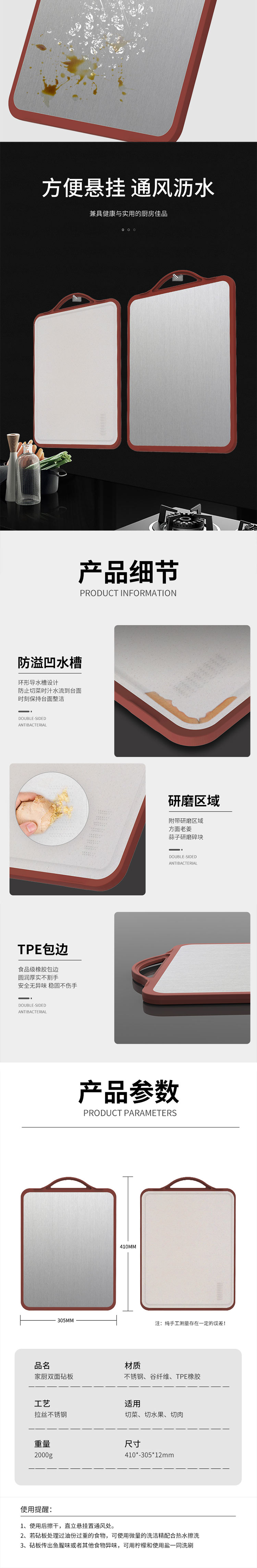 【官方正品保证】 欧乐菲中式典雅咖色抗菌两用菜板切菜板不发霉家用擀面水果剁肉砧板 大号-OLOCB-Z