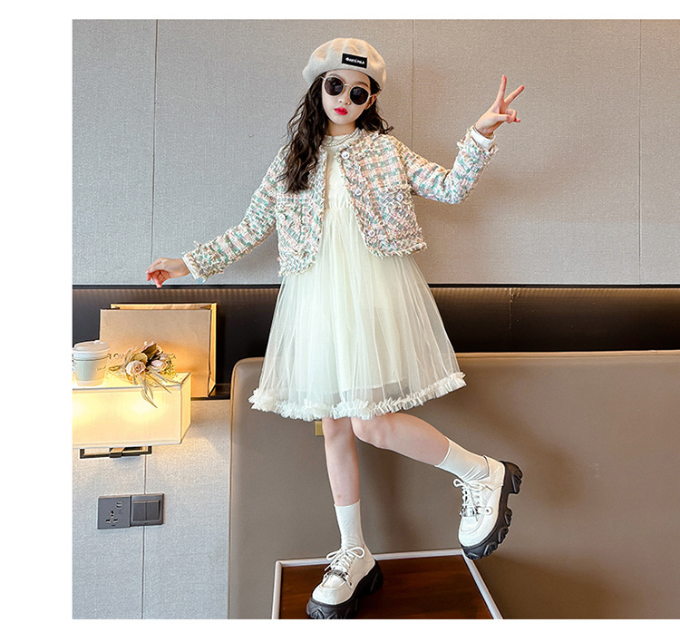 2023春秋季小香风网纱连衣裙套装中大儿童装PJX-FSYP小香风套装