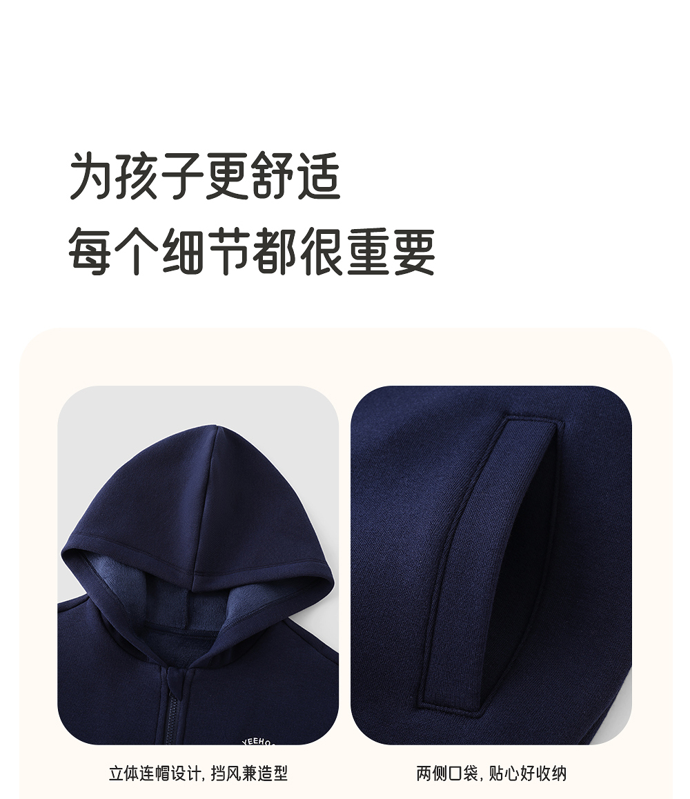 英氏男童开衫外套上衣2025秋冬季新款休闲百搭中大童连帽卫衣童装