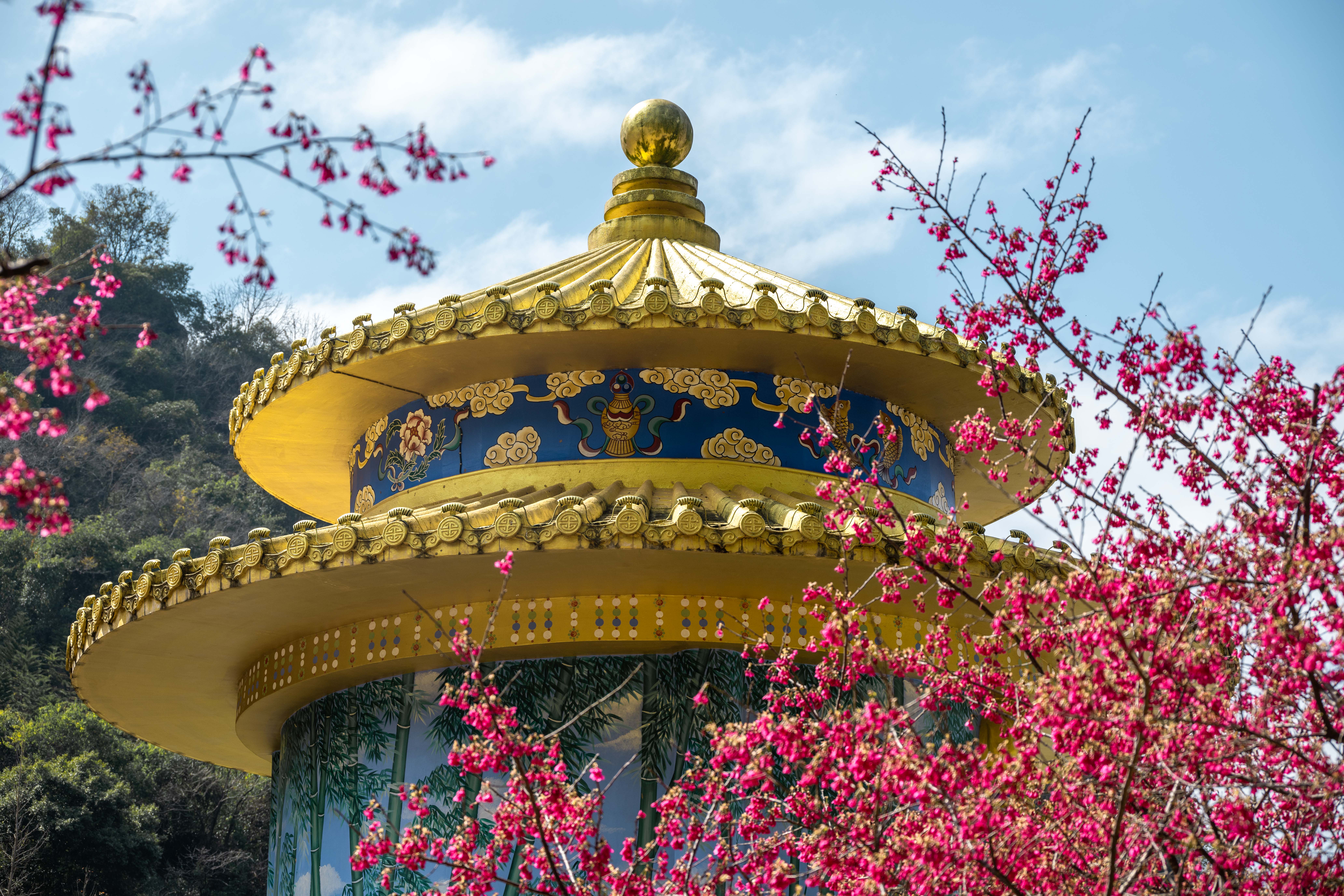 东华禅寺位于广东翁源县东华山风景区,禅寺古老的建筑与粉色的樱花相映成趣,构成了一幅美丽的画卷,美得让人陶醉。