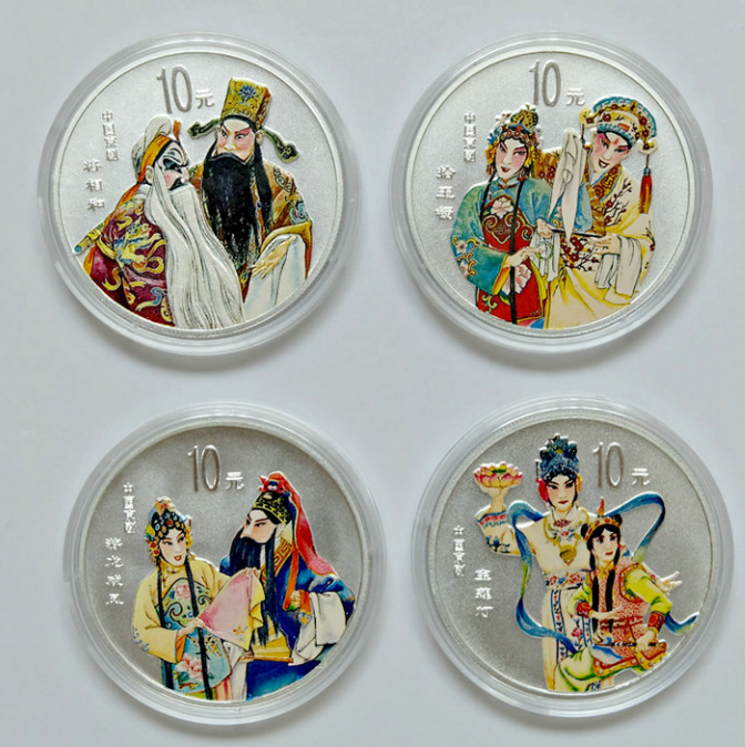 【福利】2001年 中国京剧艺术(第三组)彩色银币(一套4枚)裸币带证书