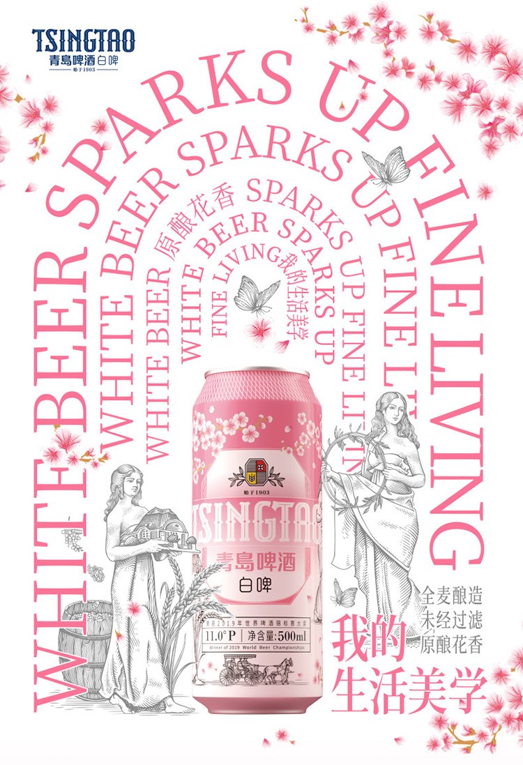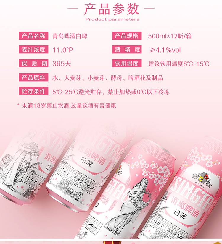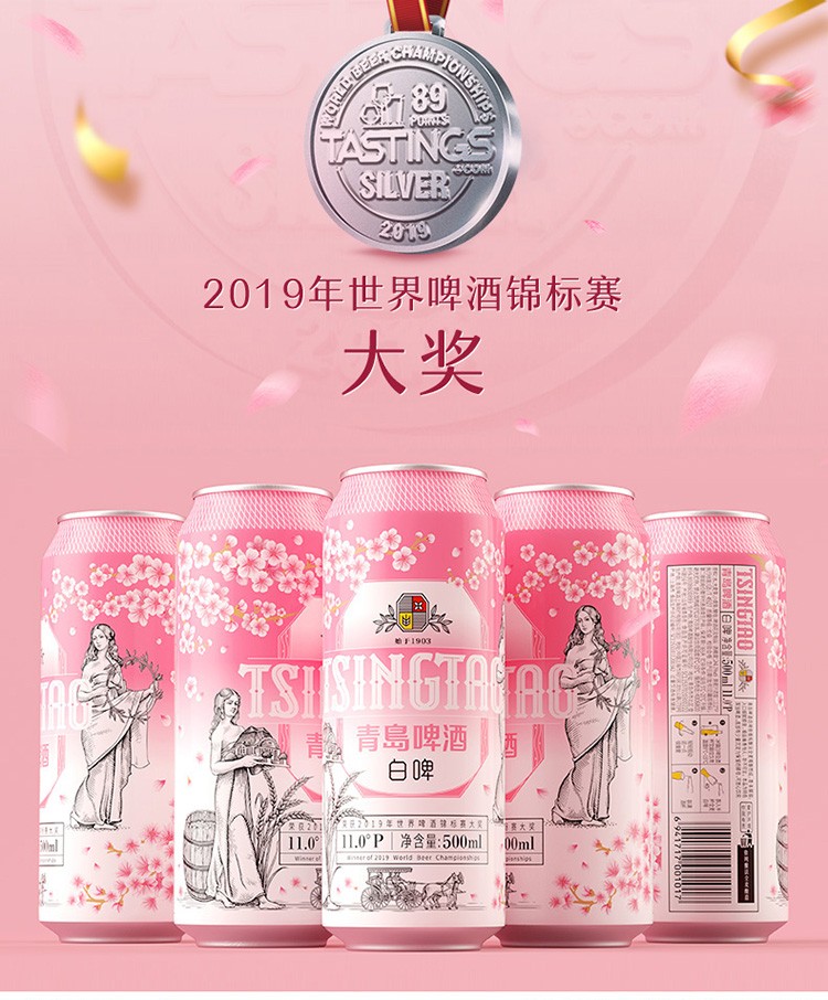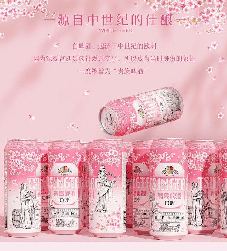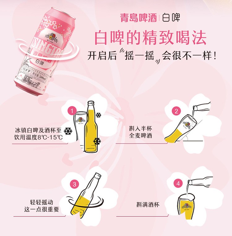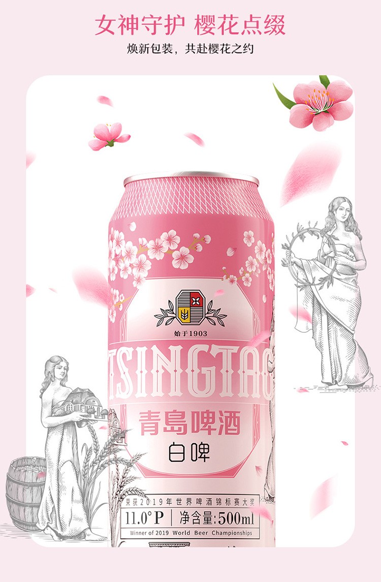 【青岛啤酒】樱花白啤11度500ml*12罐