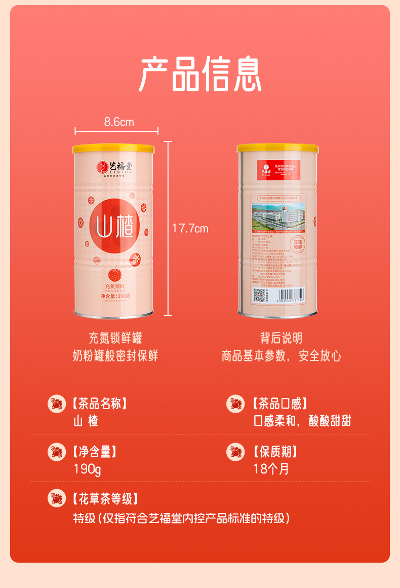 【买2送1】艺福堂 山楂干片 无核 190g/罐