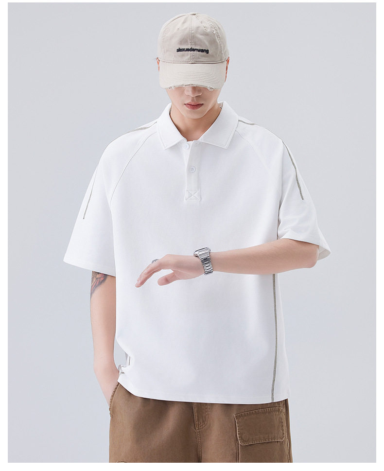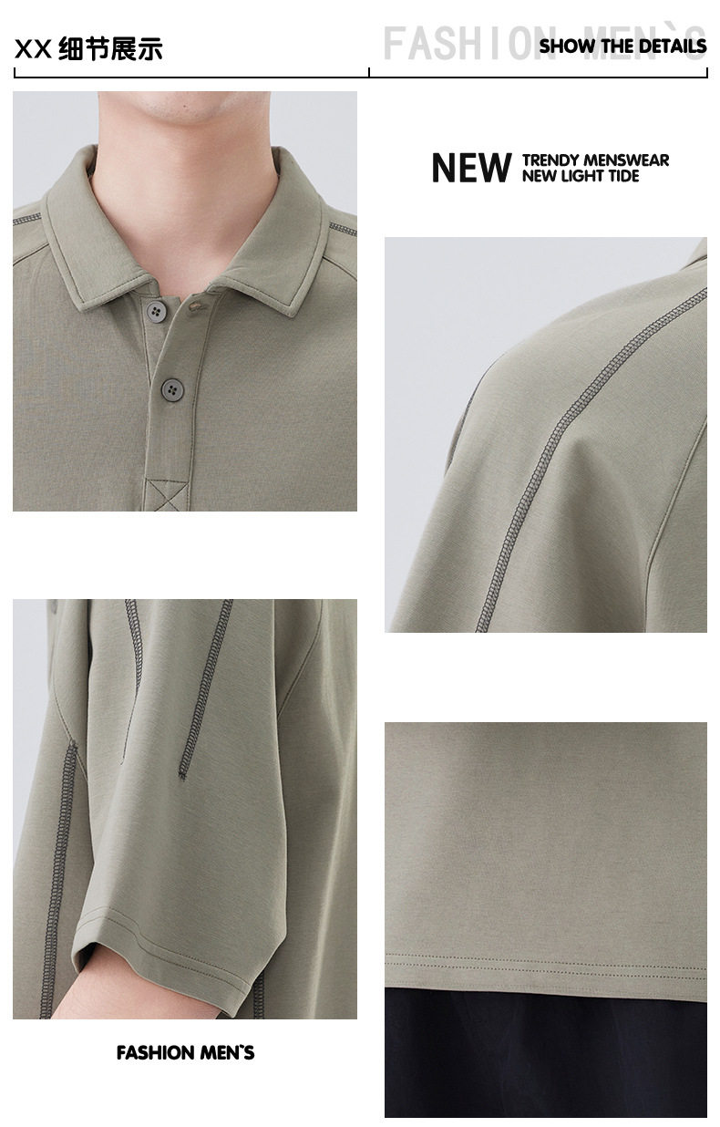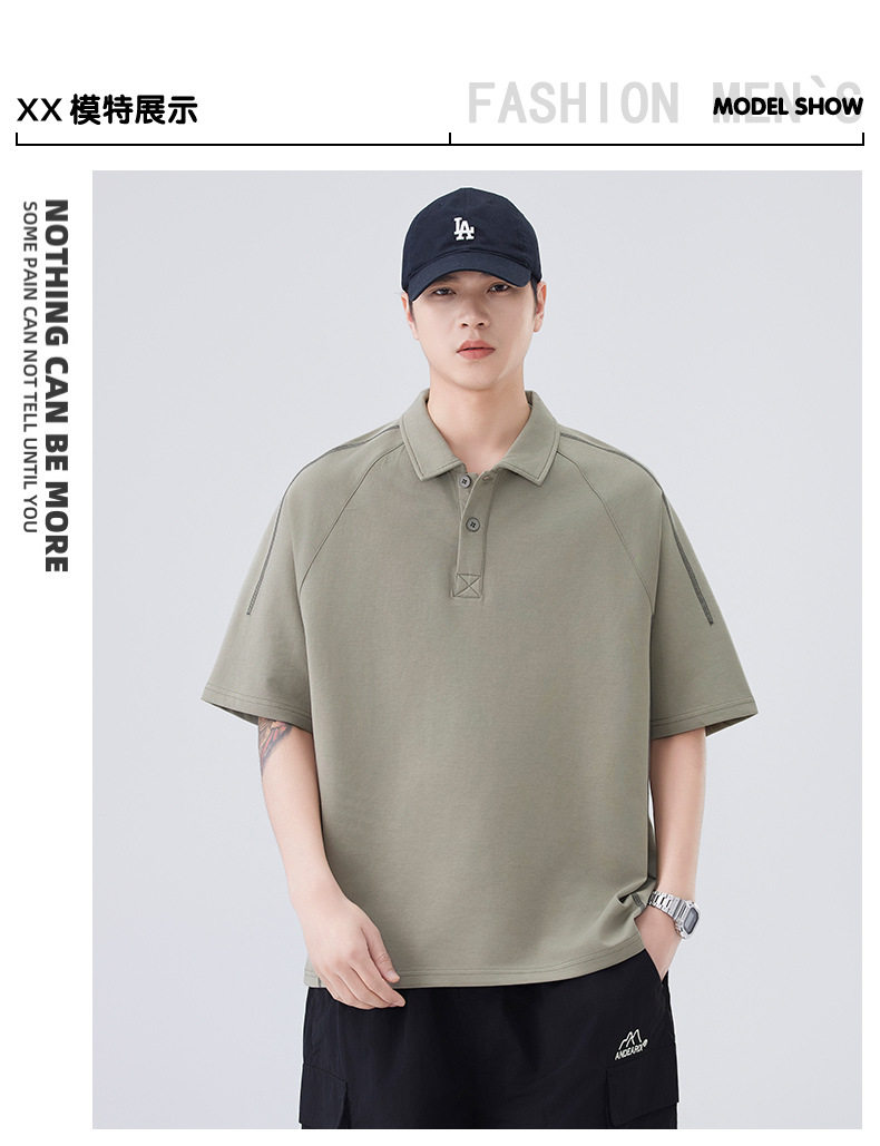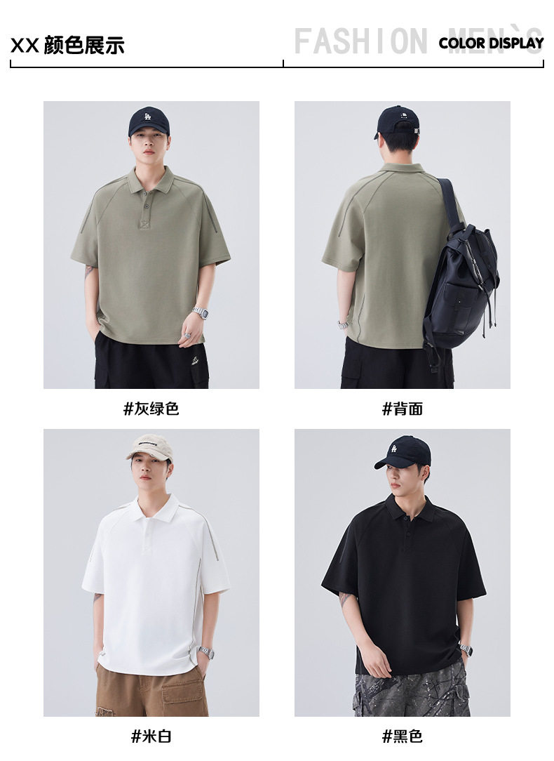 polo衫短袖男生夏季新款潮牌宽松翻领休闲宽松纯色上衣服 AY-D3611【AY-3611】