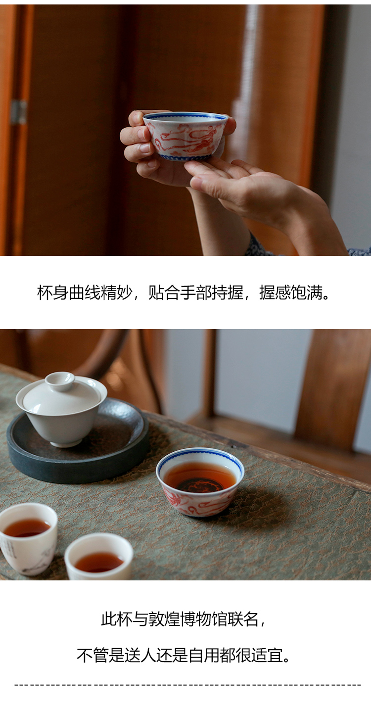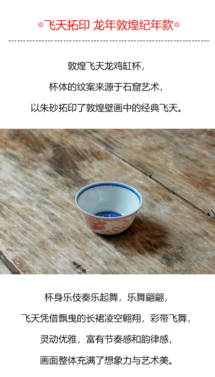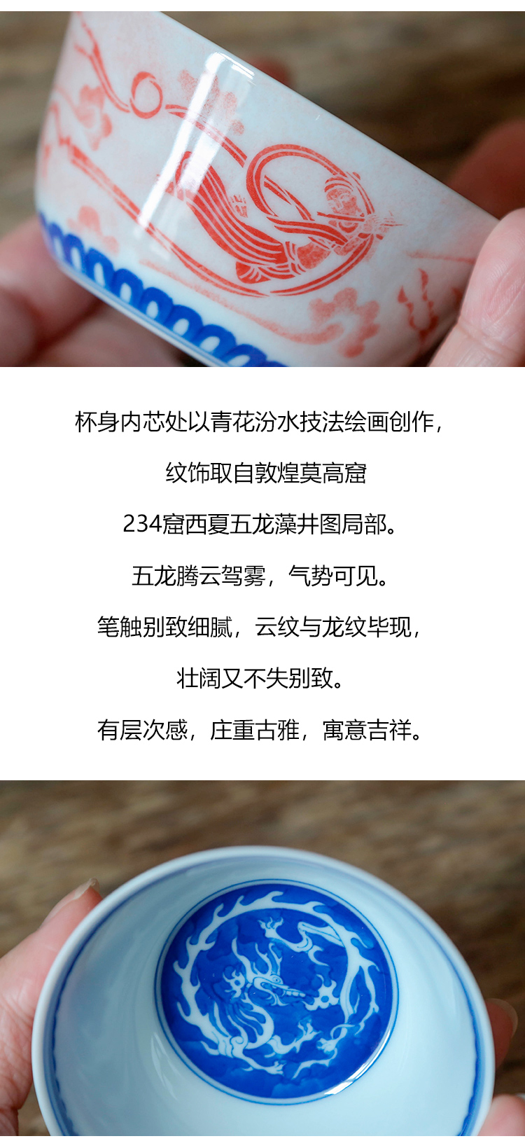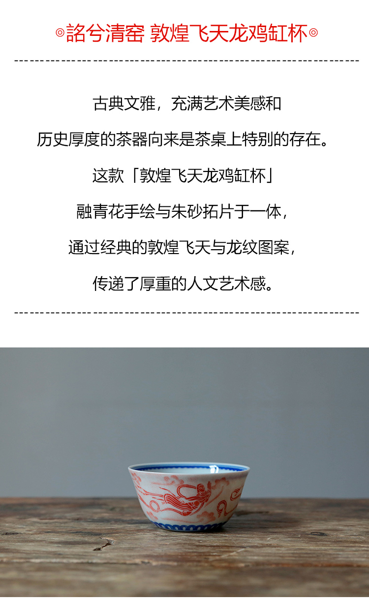 茶香记 詺兮清窑 敦煌飞天龙鸡缸杯 敦煌联名 龙年纪年款 金石拓印 古典青花