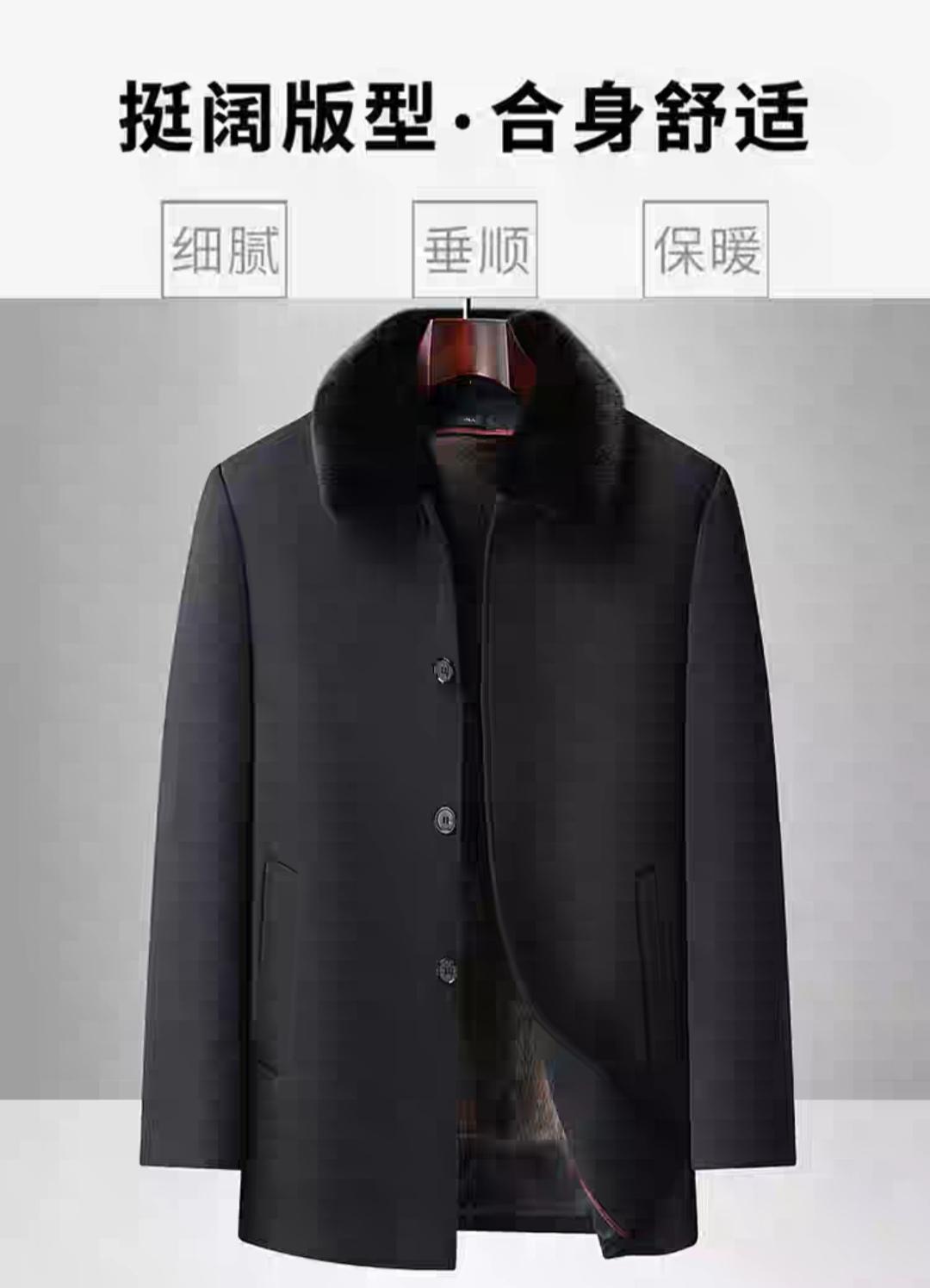 【挺括合身 可拆卸仿水貂绒内胆】香港老爷车中/长款大衣男(可拆卸毛领)