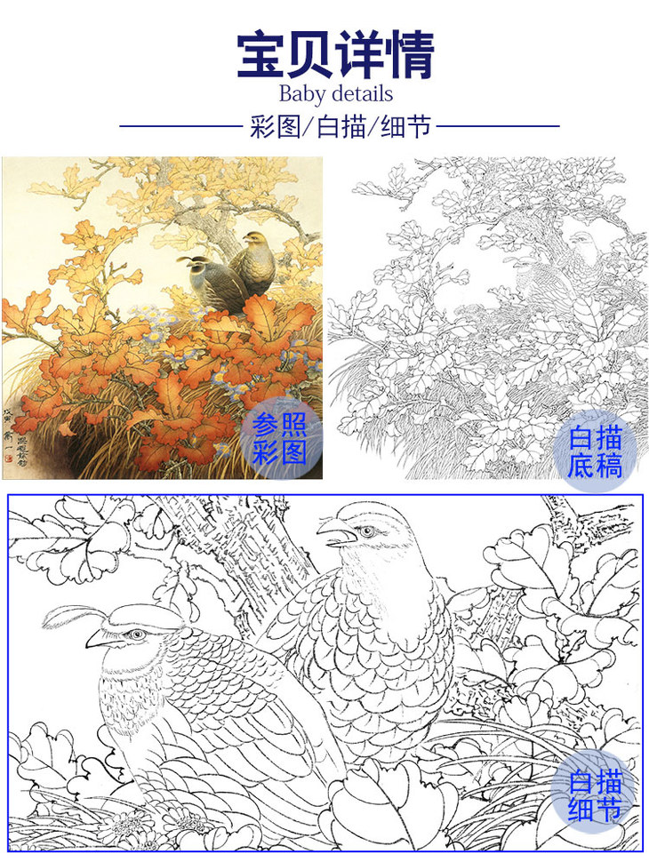 万一工笔花鸟白描底稿-《深秋余韵》斗方小品册页-多种白描尺寸可选-WT10