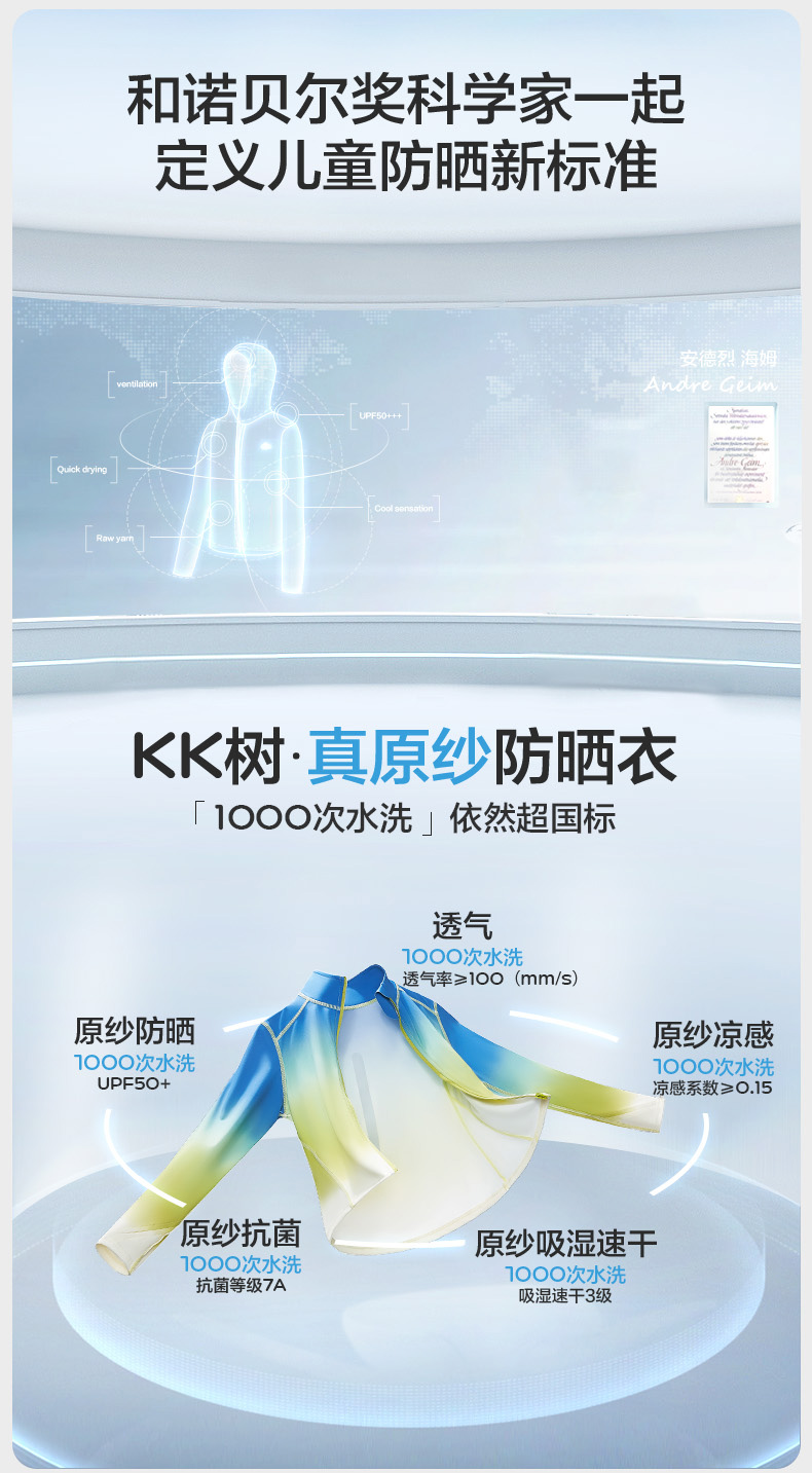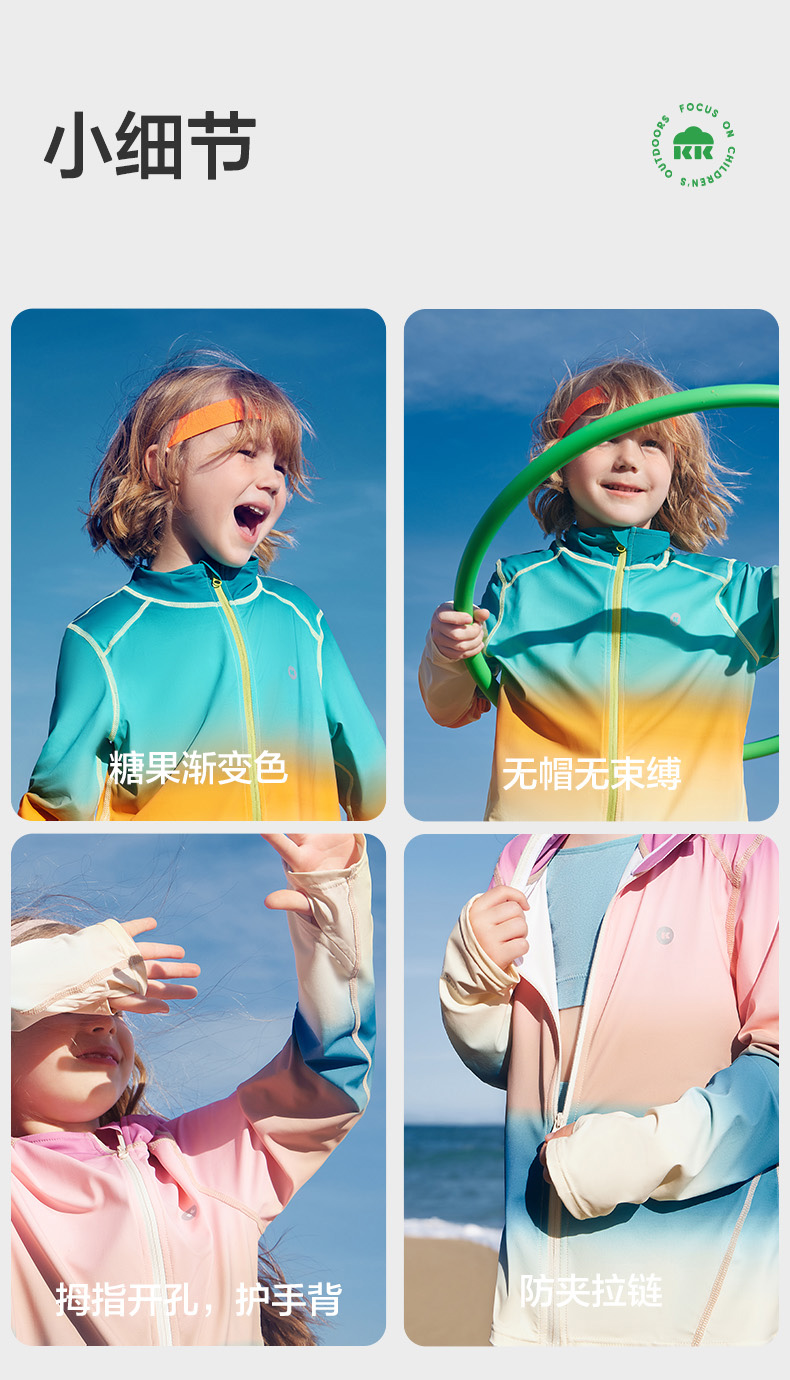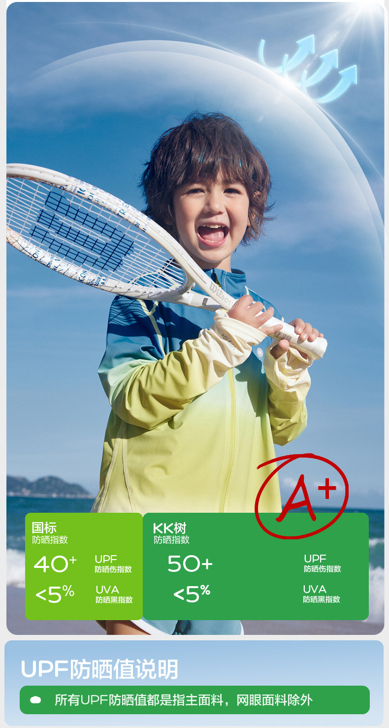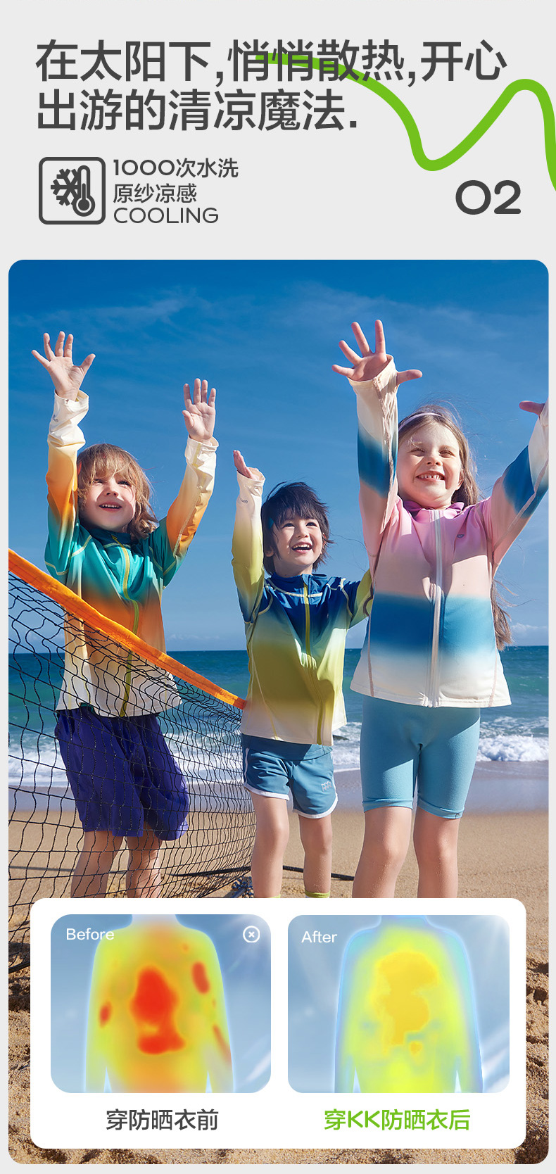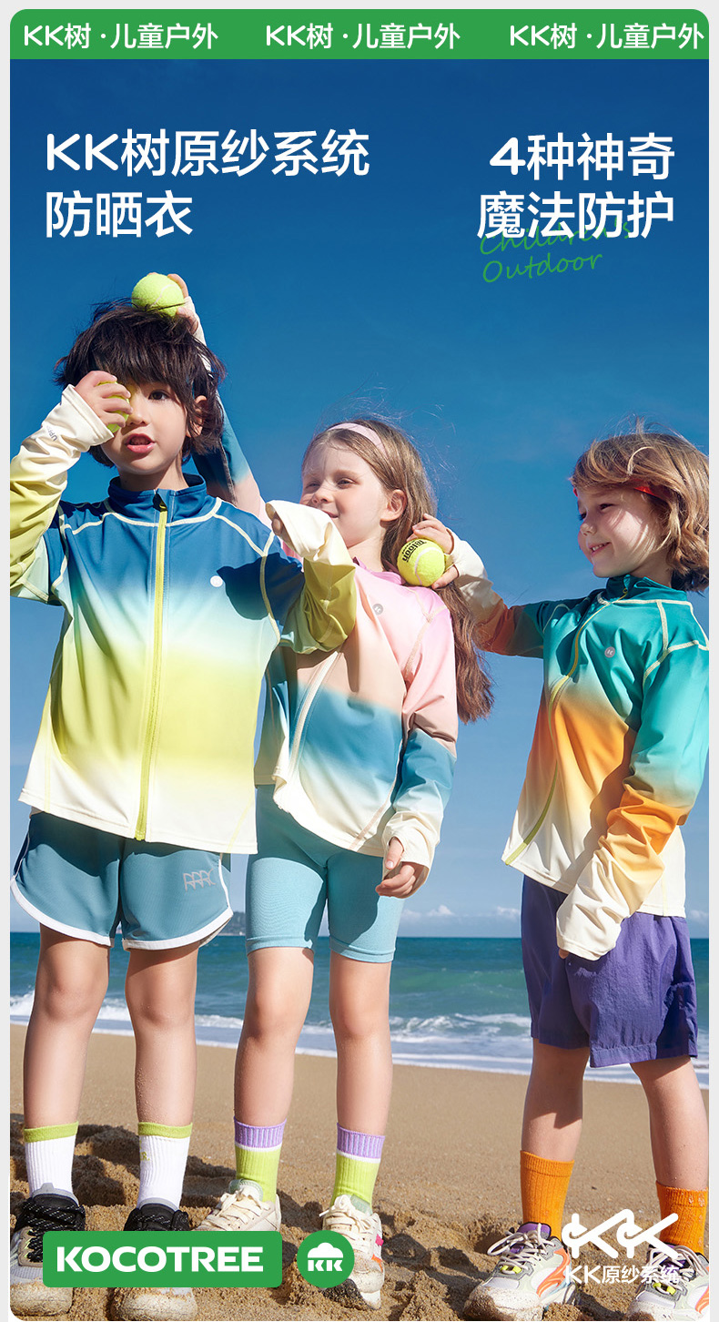 KK树儿童防晒衣男童女孩原纱防紫外线宝宝皮肤衣运动防晒服外套夏彩虹庄园运动冰皮衣