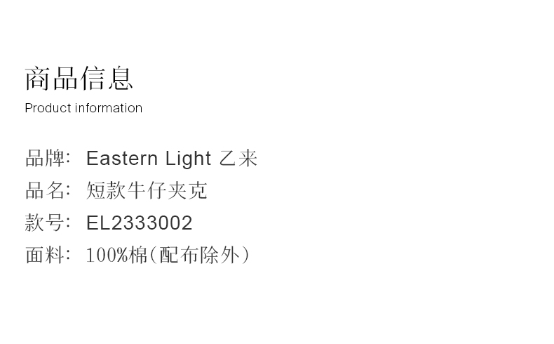 Eastern Light/乙来【100%土耳其纯棉牛仔】春季牛仔外套夹克
