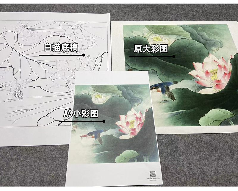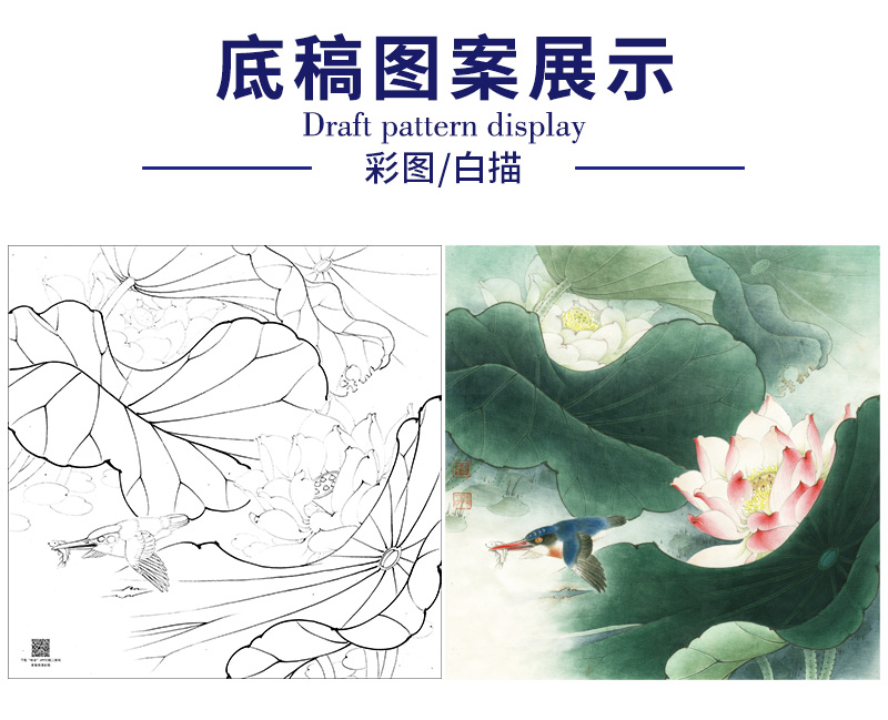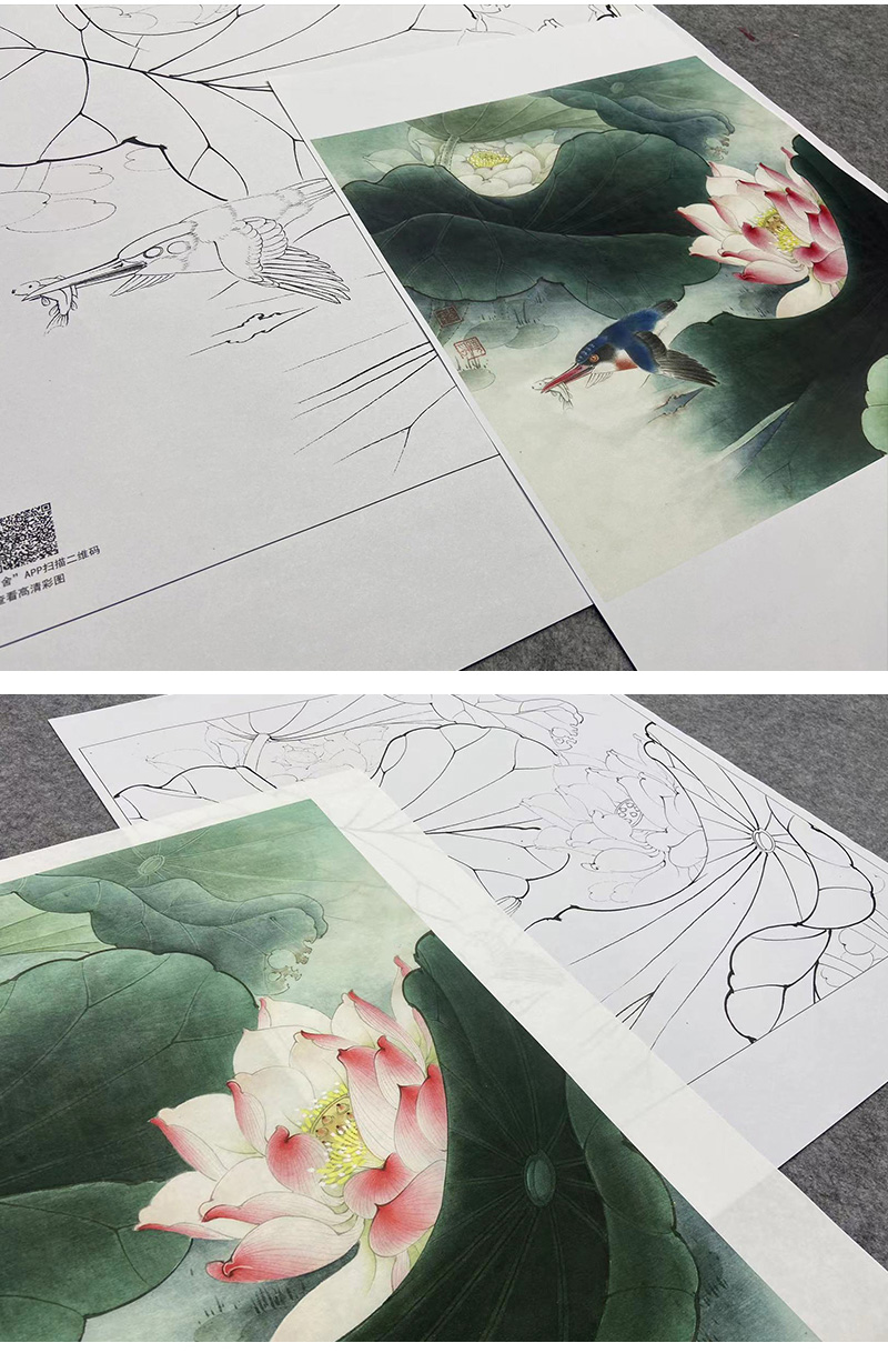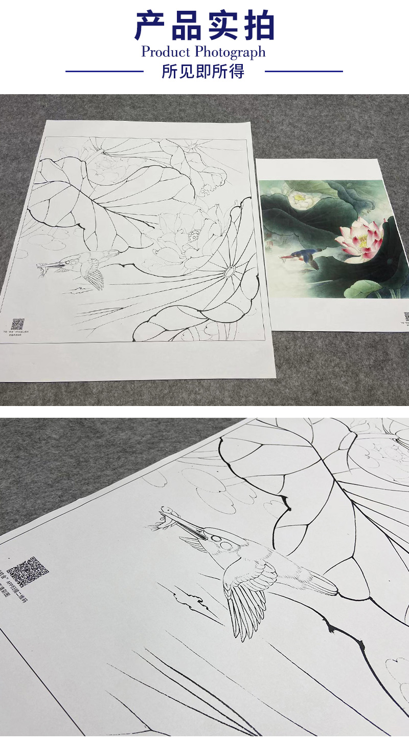 【大彩图】李晓明工笔画白描底稿斗方小品《绿翠红荷》荷花临摹勾线花鸟线稿K090