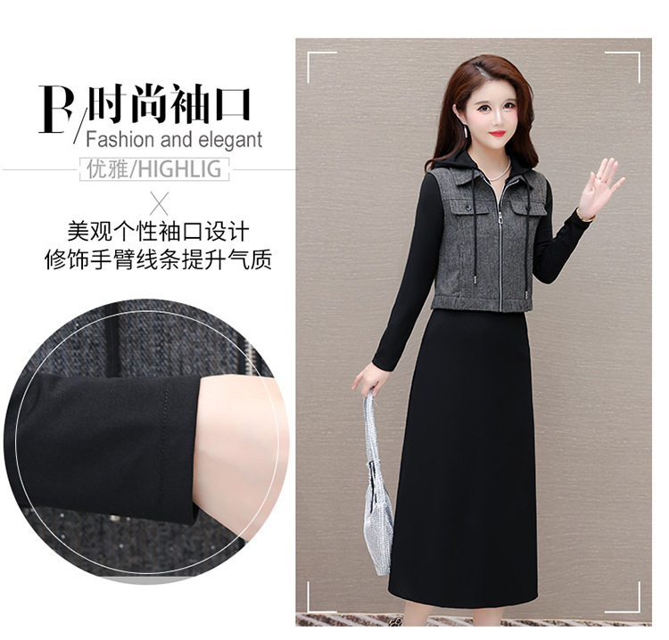 QYM F183-Y时尚连帽马甲连衣裙两件套休闲套装裙 商品图2