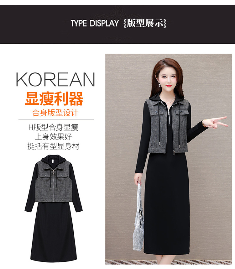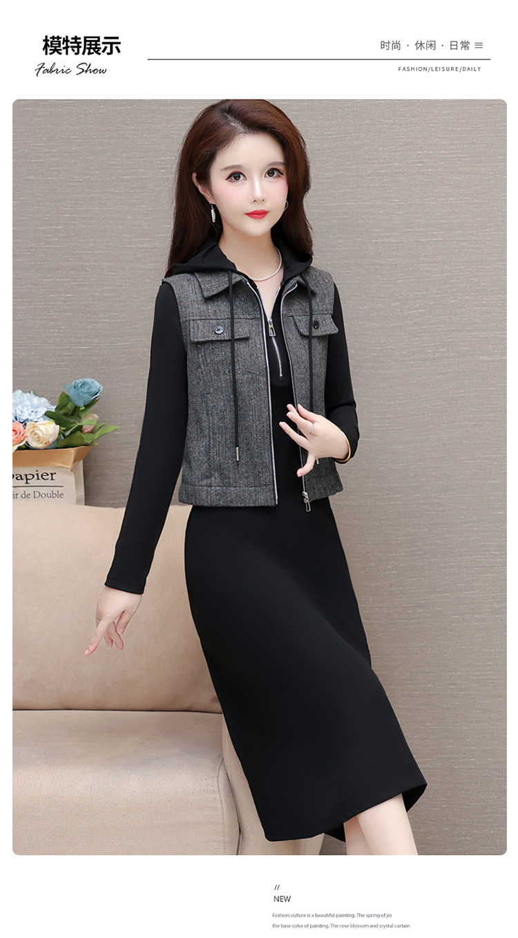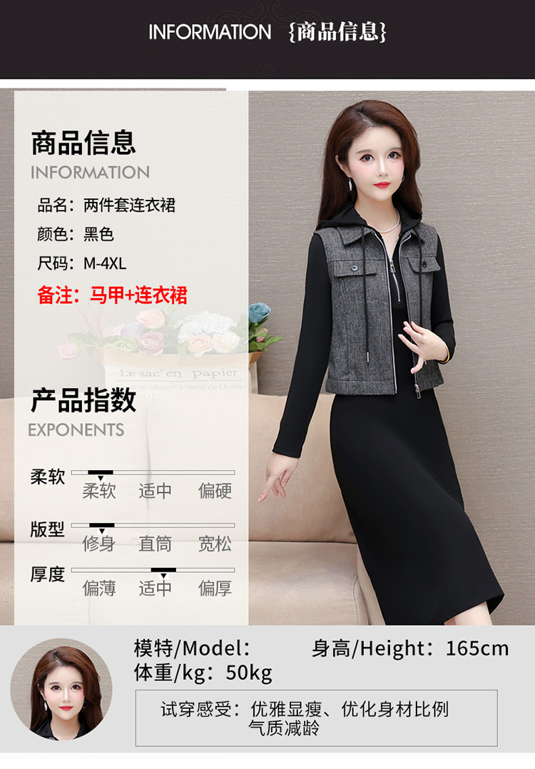 QYM F183-Y时尚连帽马甲连衣裙两件套休闲套装裙 商品图3
