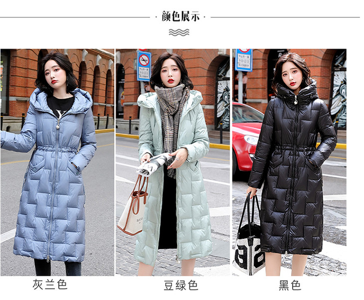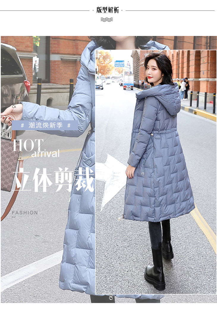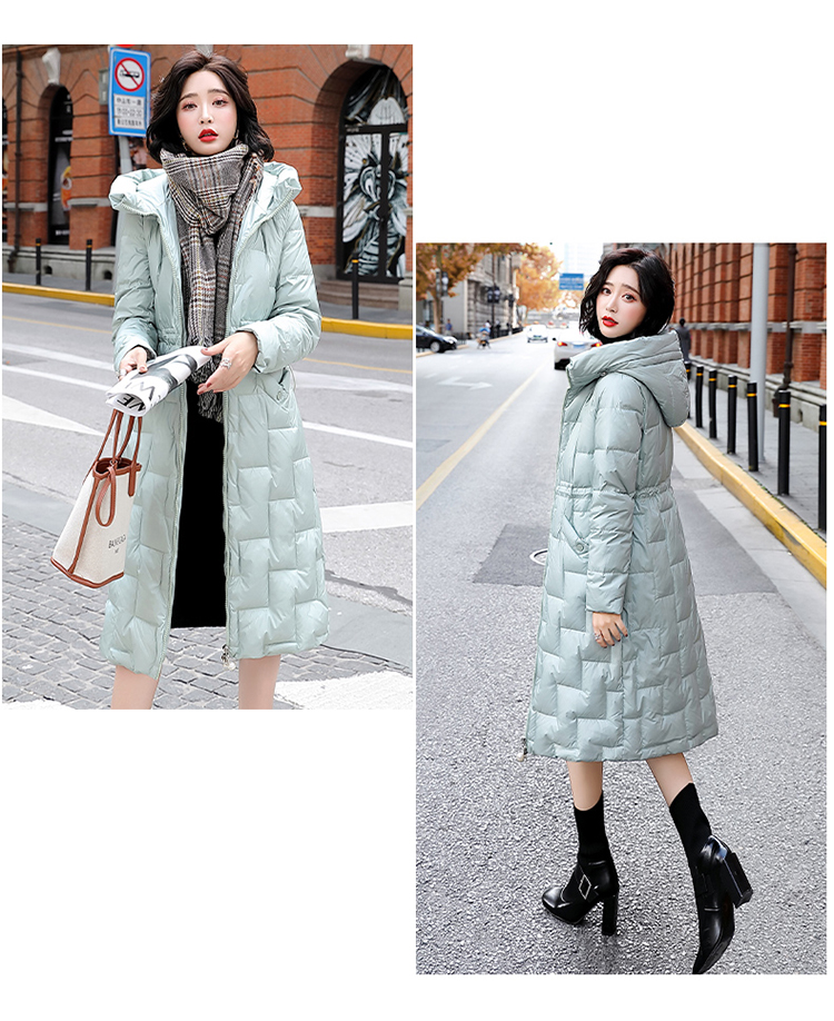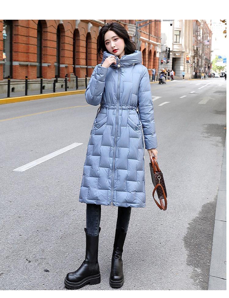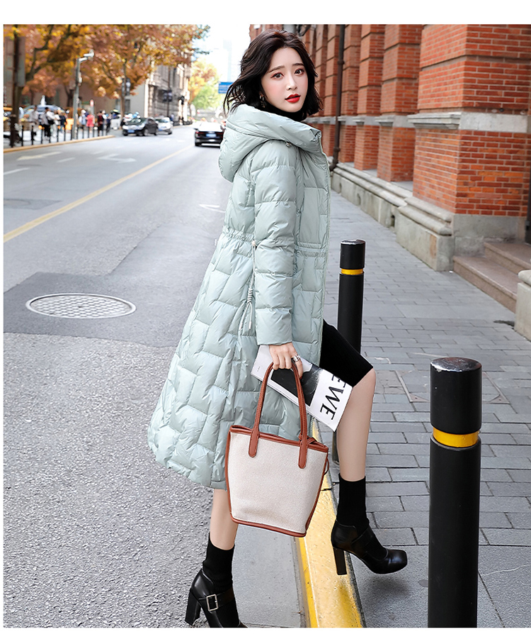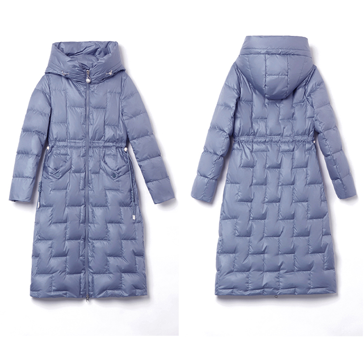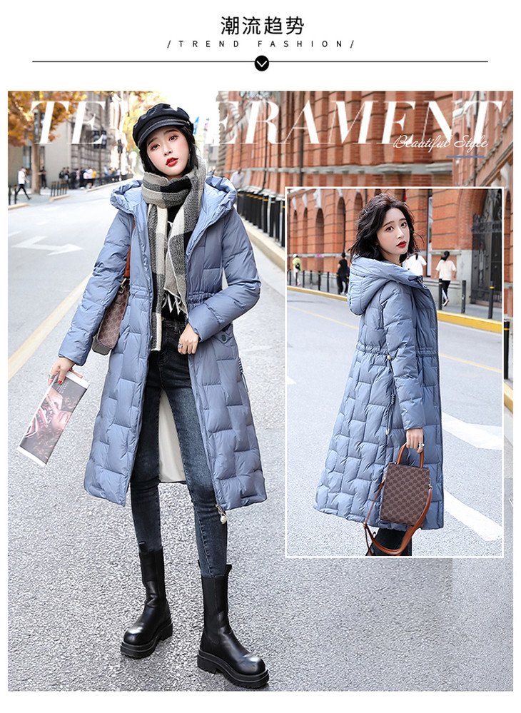 CPYY9058-1 羽绒服新款2021年女装工艺走线腰间抽绳修身连帽长款90白鸭绒