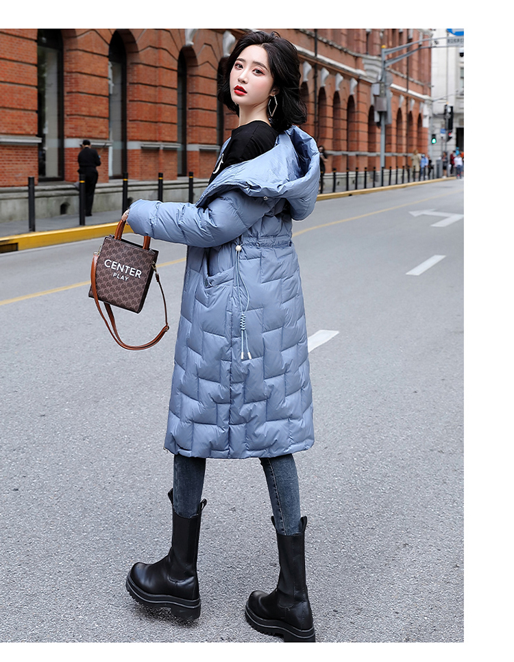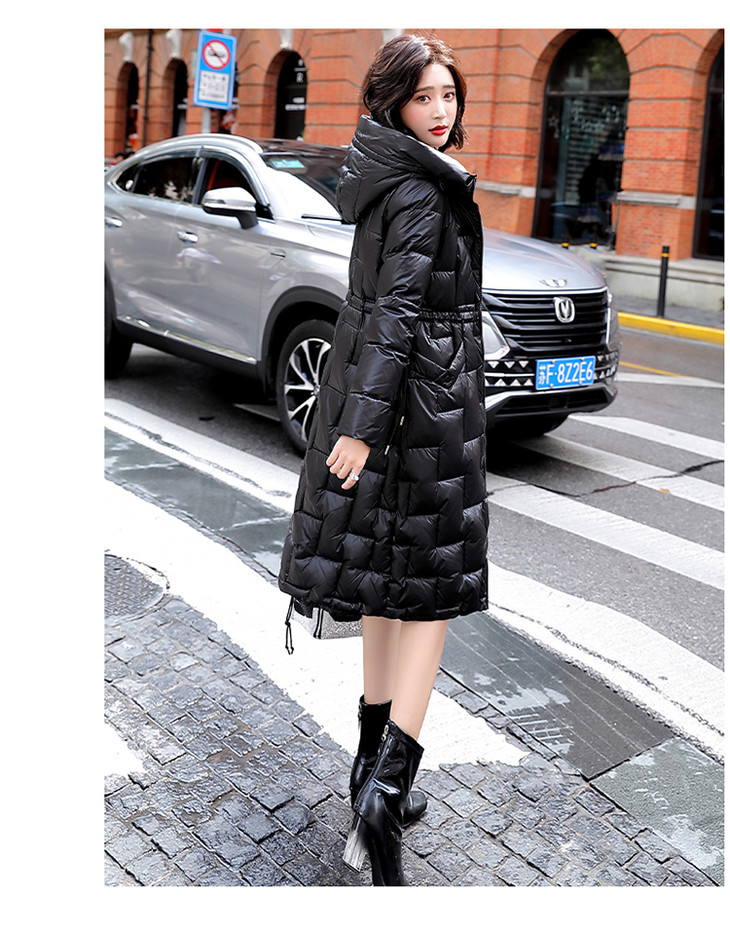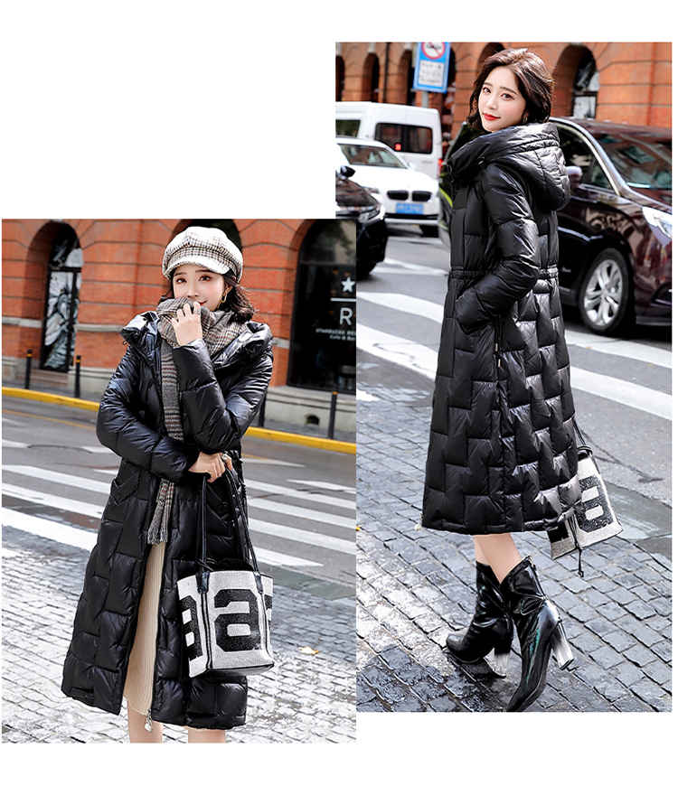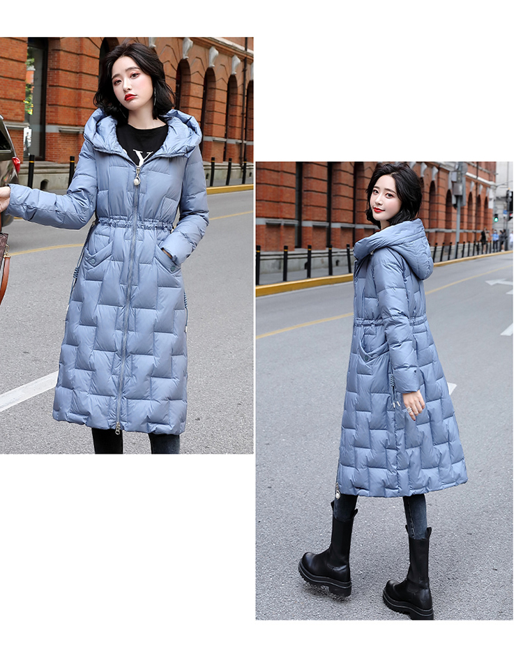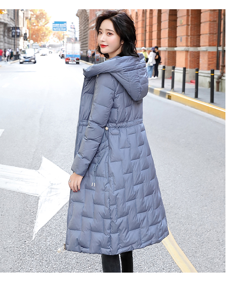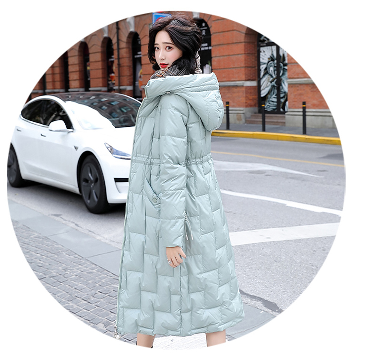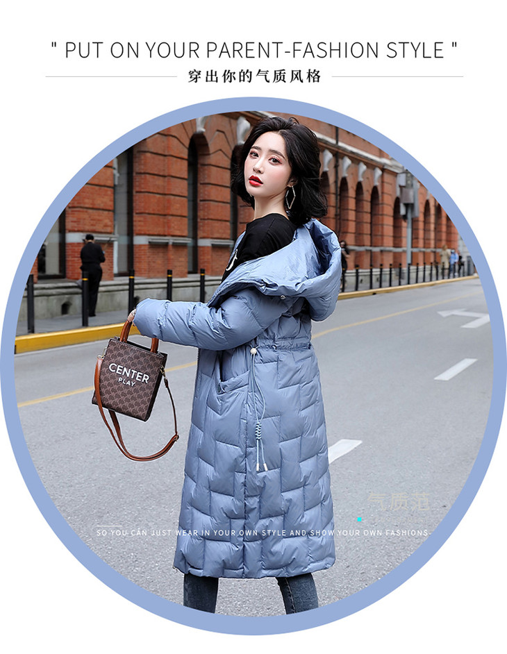 CPYY9058-1 羽绒服新款2021年女装工艺走线腰间抽绳修身连帽长款90白鸭绒