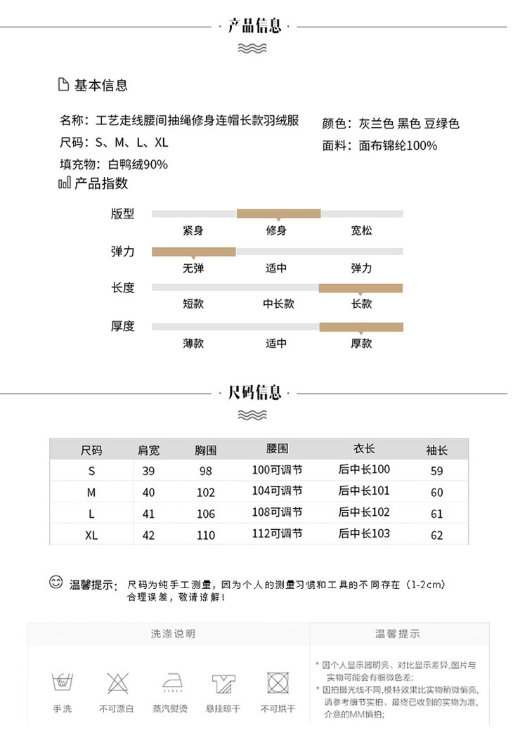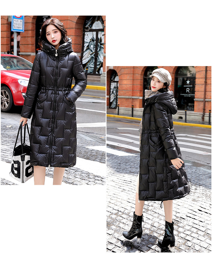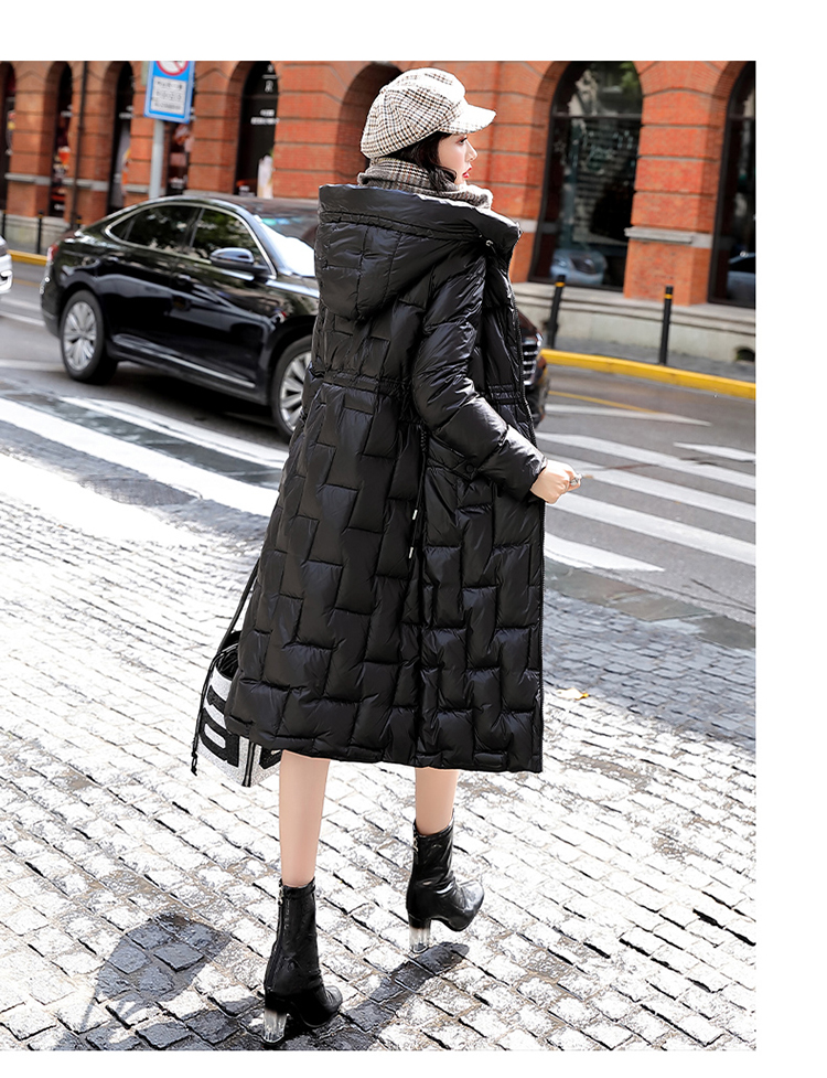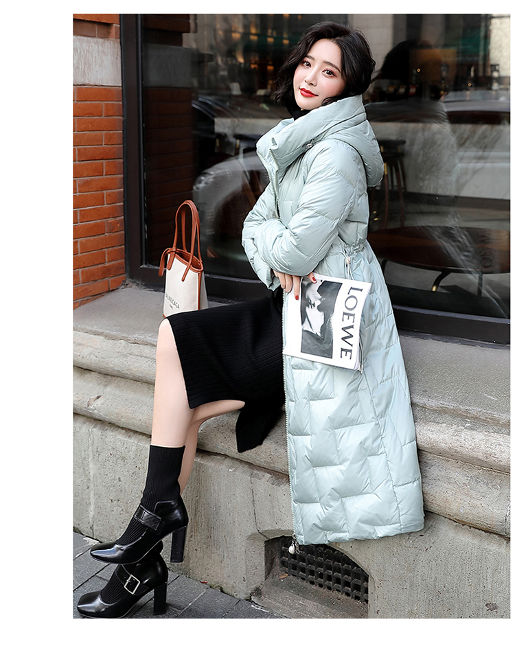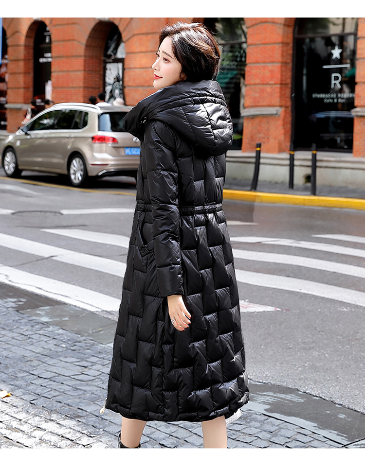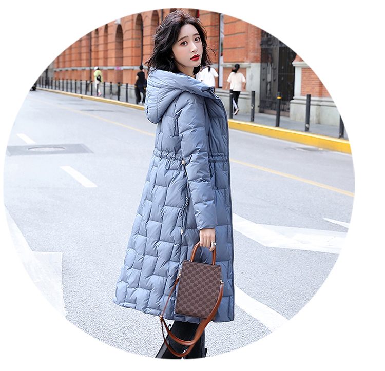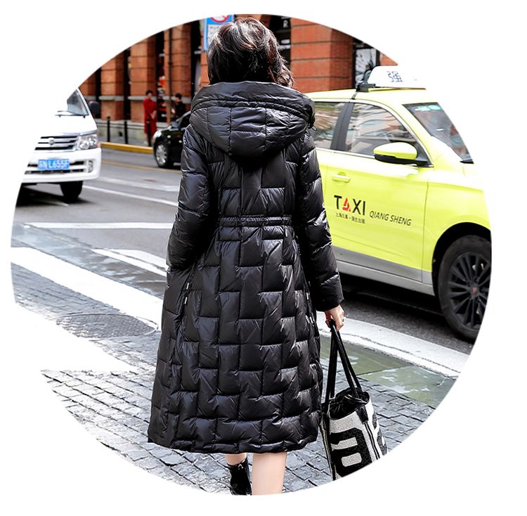 CPYY9058-1 羽绒服新款2021年女装工艺走线腰间抽绳修身连帽长款90白鸭绒