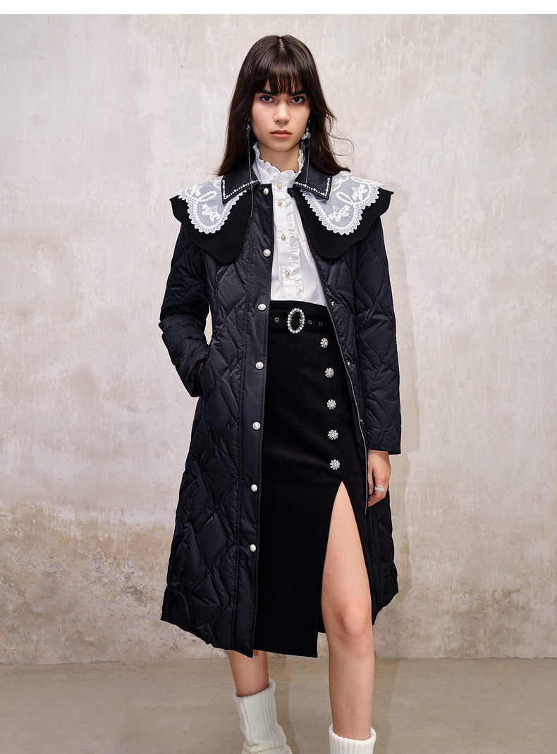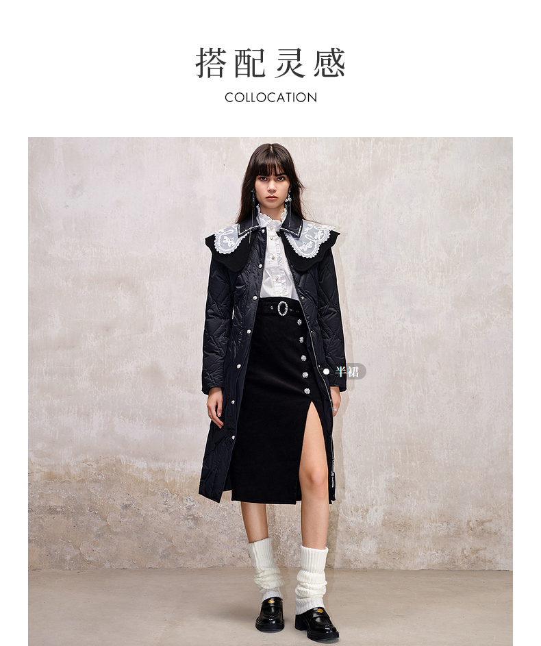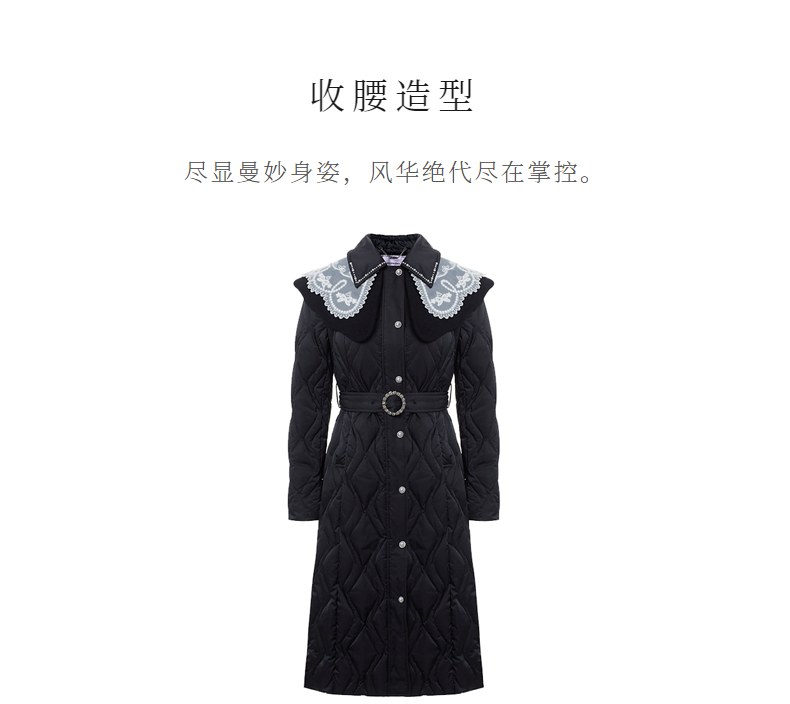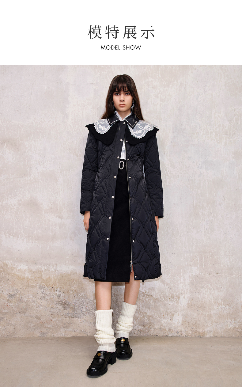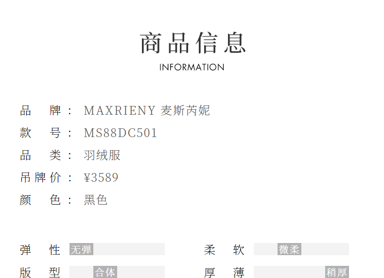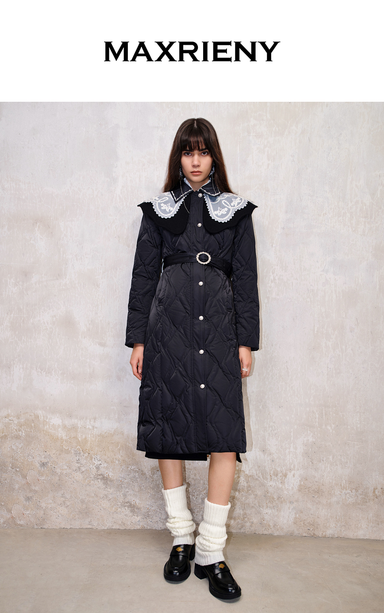 【防寒】MAXRIENY冬季热力感轻羽绒服中长款黑色修身收腰保暖过膝(货号:MS88DC501)