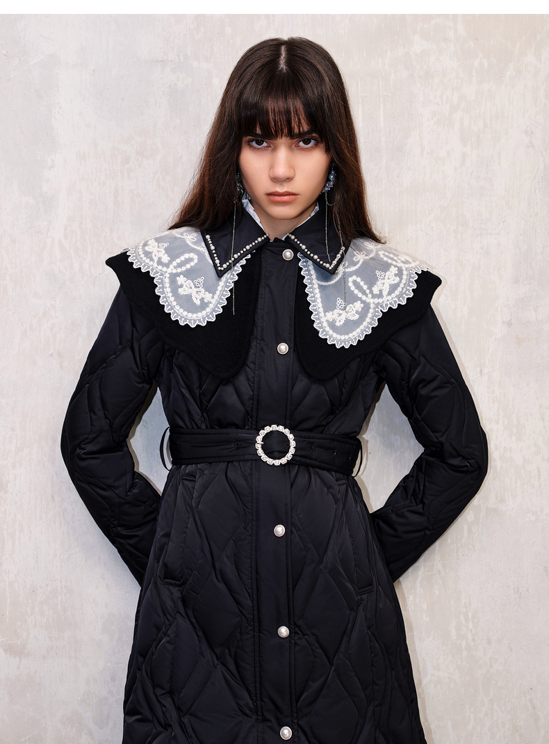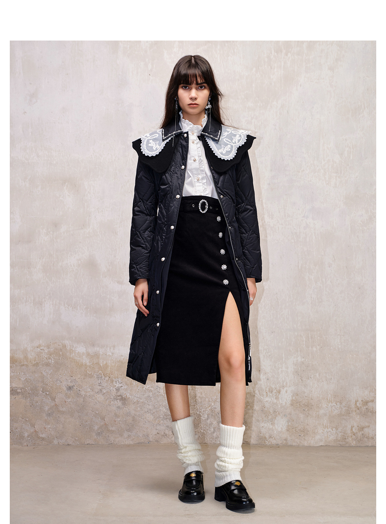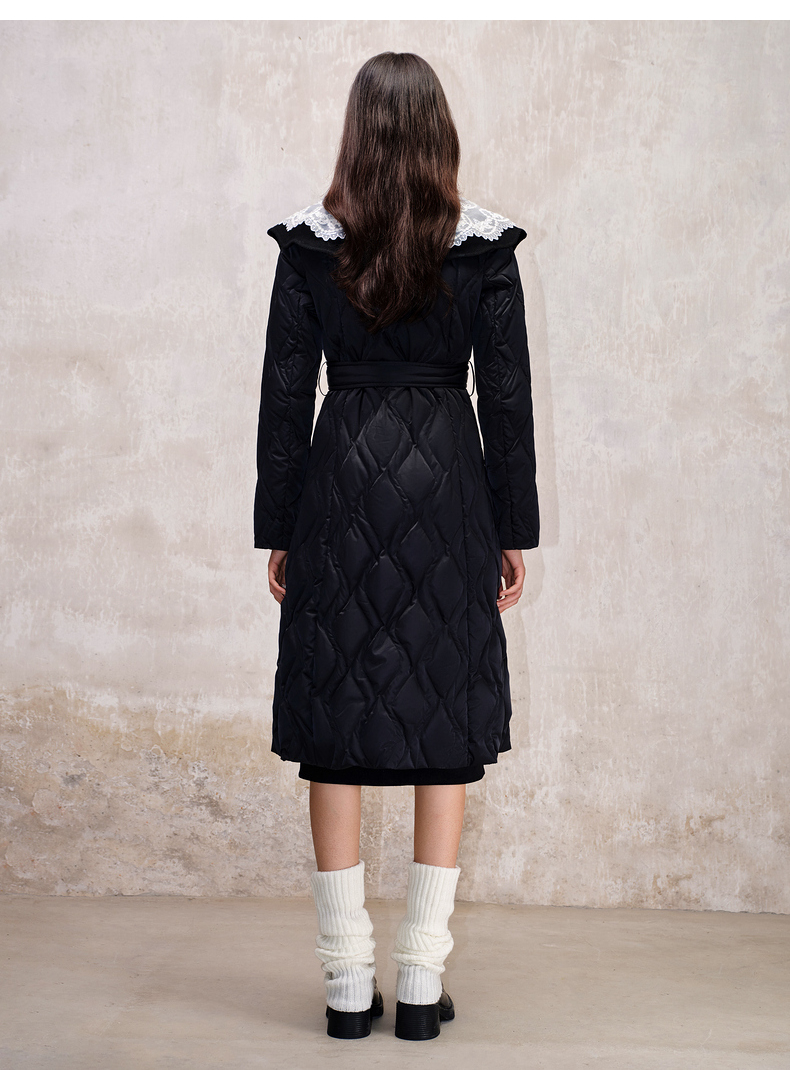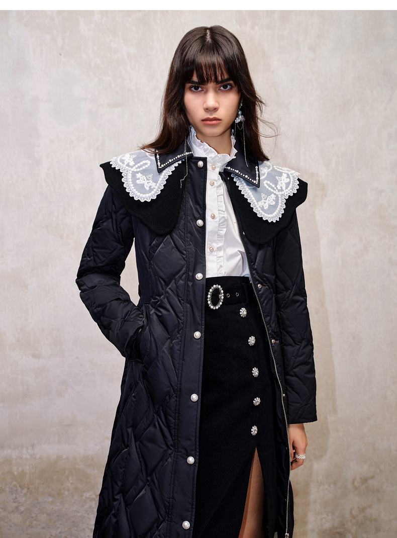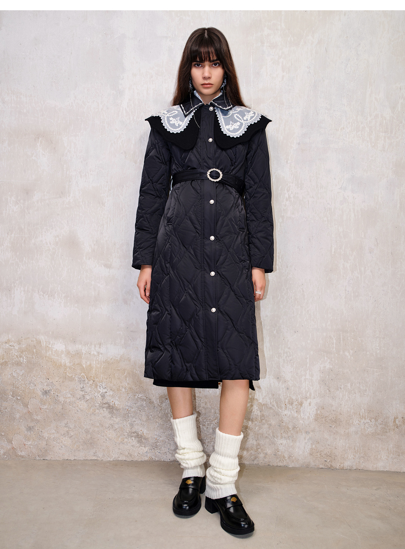 【防寒】MAXRIENY冬季热力感轻羽绒服中长款黑色修身收腰保暖过膝(货号:MS88DC501)