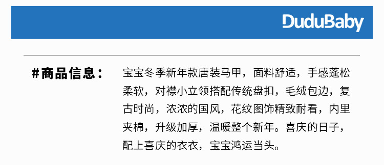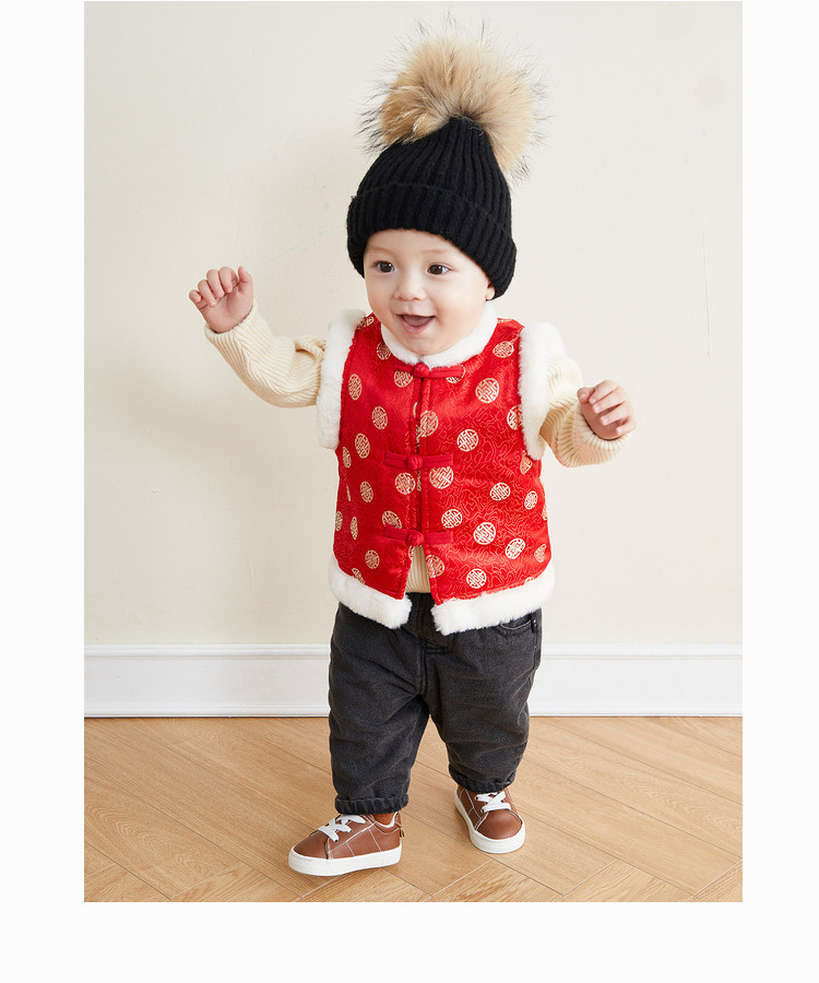 SYBZB100DMJ117婴儿马甲秋冬宝宝冬款喜庆中国风过年款拜年服唐装无袖上衣