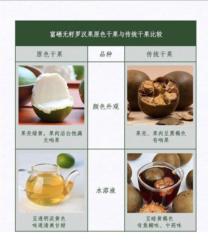 2.罗汉果脱水后会呈现绿色、黄绿色、金黄色,都属于正常现象,并非不成熟/染色/熏制,介意者慎拍