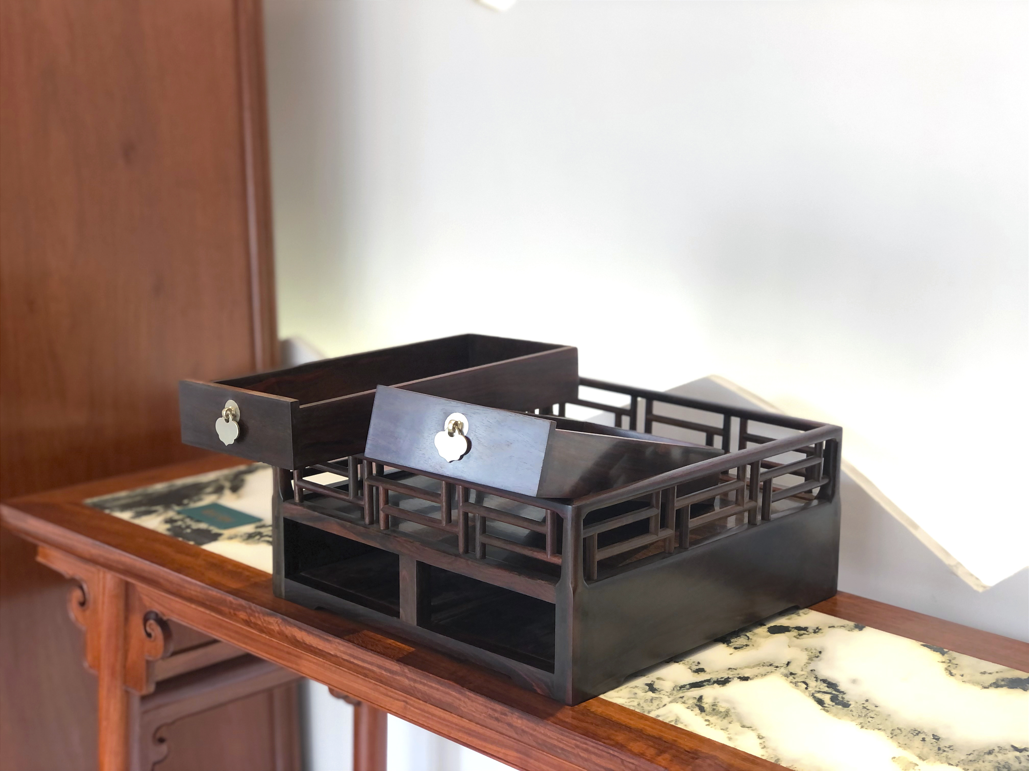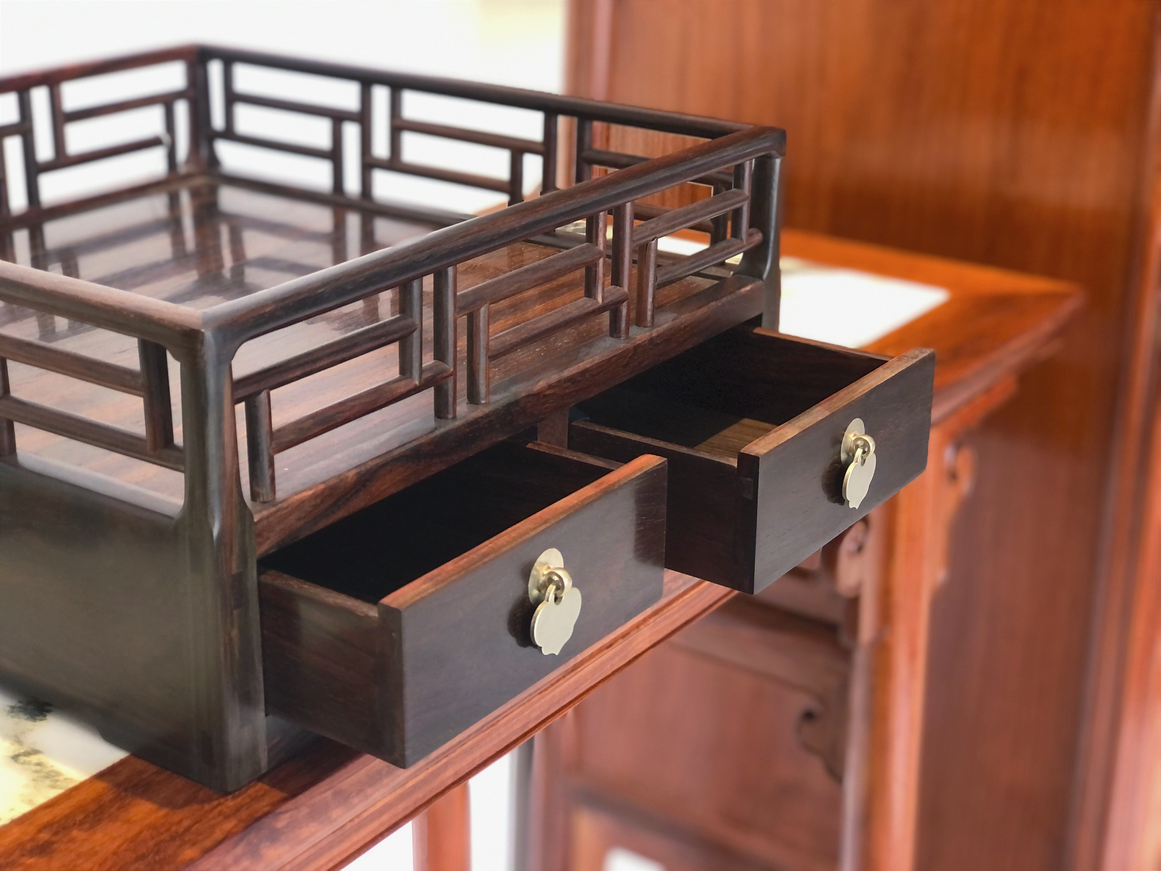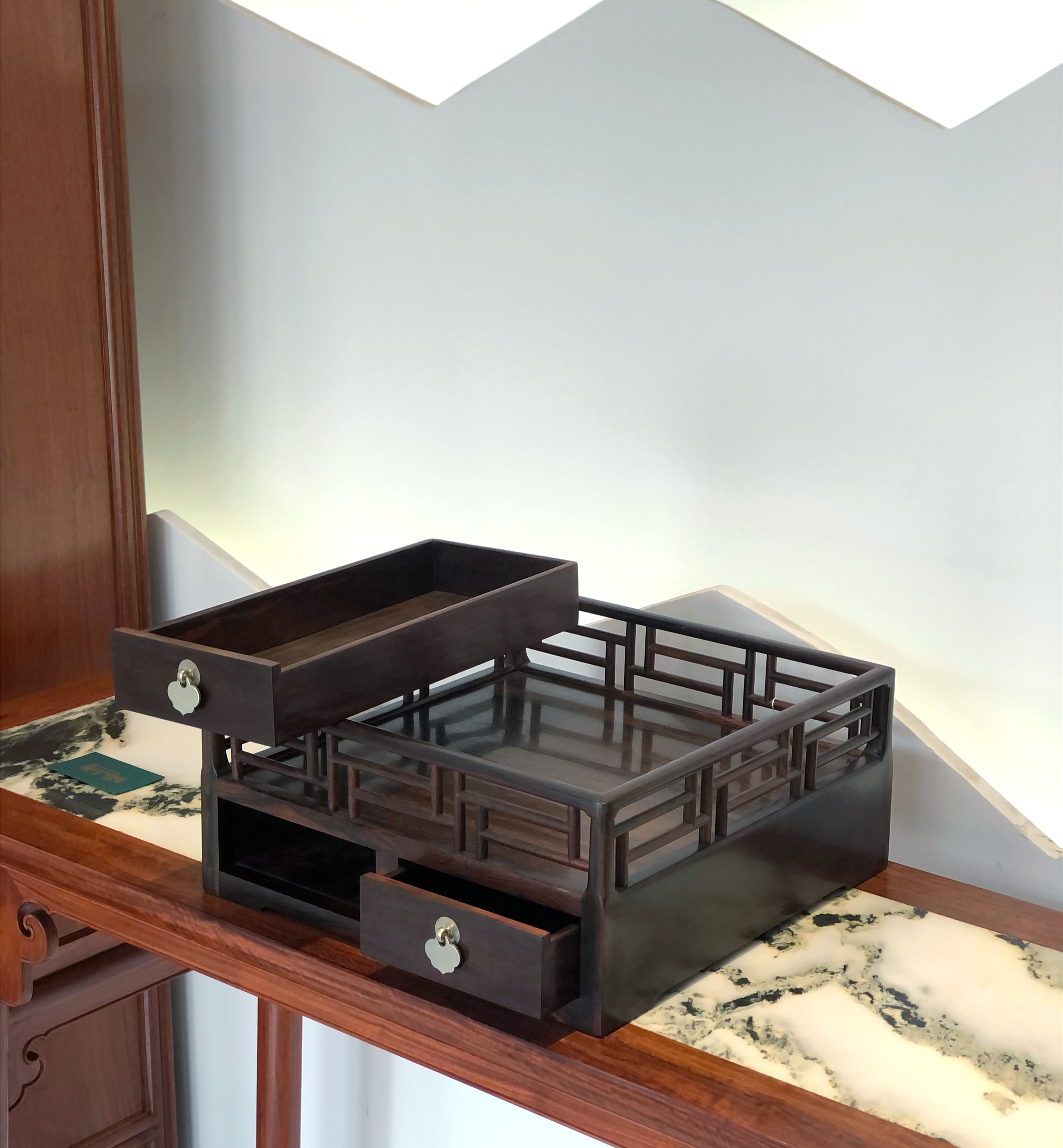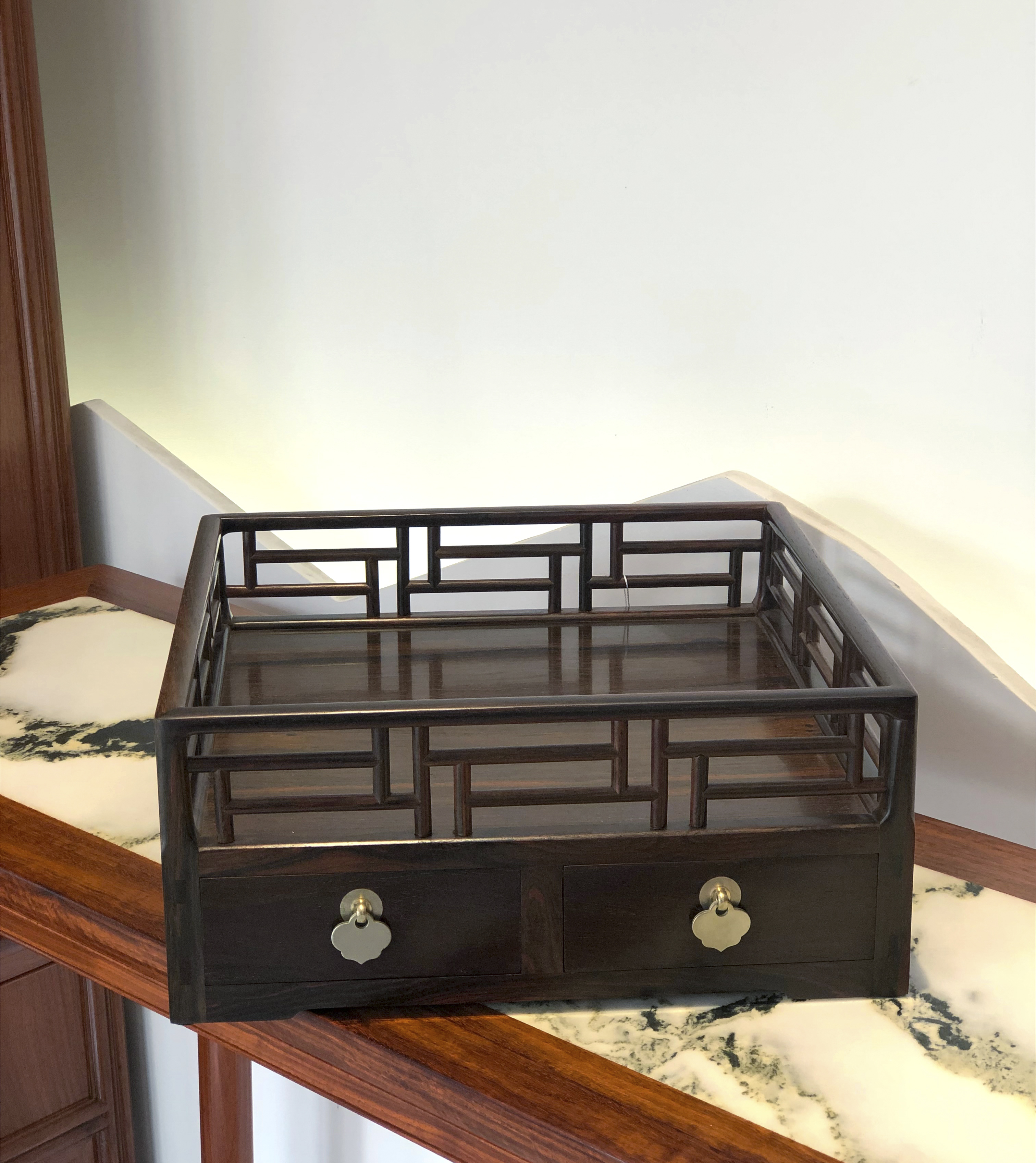都承盘,平盘与抽屉结合形制,理应念dou承盘,意为什么都可以盛放用于案头收纳文具、文玩等。