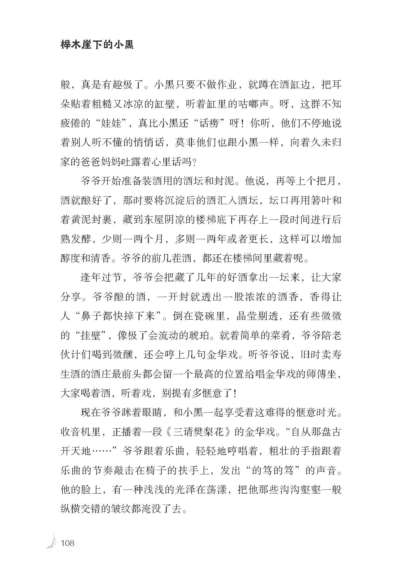 《榉木崖下的小黑》是一部基于中华优秀传统文化,展现本土儿童生活,讲金华故事、有“中国味道”的儿童文学作品,具有浓郁的时代气息。小说的主人公小黑和爷爷一起生活在金华八仙溪畔榉木崖村,父母在外务工。故事结构主要以两条线展开,一条线通过主人公小黑的视角,展现了金华尤其是金东的乡情之美、山水之美、人文之美,表现生活在这片土地的人们善良、淳朴、奋进的文化精神,展现传统文化的魅力与价值。另一条线通过描述小黑和家人、乡亲、老师、小伙伴等人物之间发生的精彩故事,以及榉木崖村的乡村建设、科技运用推广等变化,表现少年儿童积极向上、茁壮成长的面貌,展现新时代奋进昂扬的新农村、新生活。