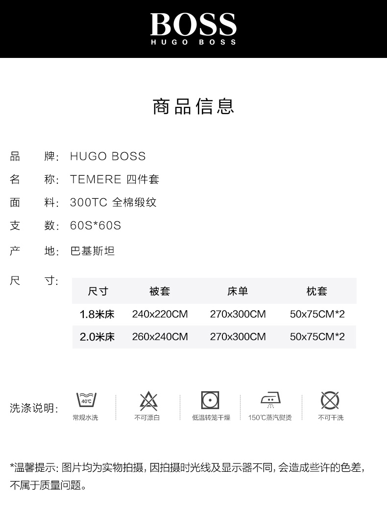 【Hugo Boss】彩色四件套床上用品全棉被套贡缎60S Temere