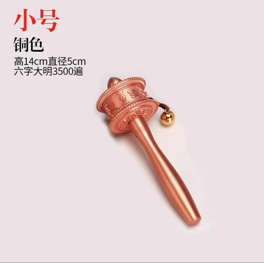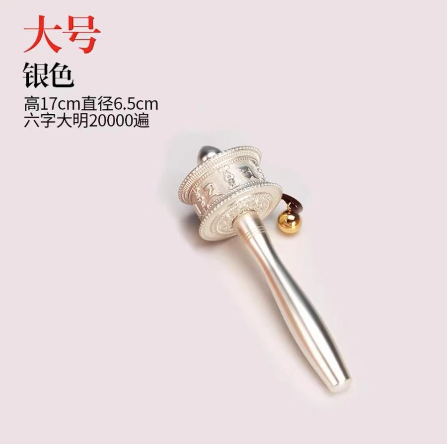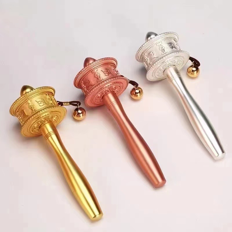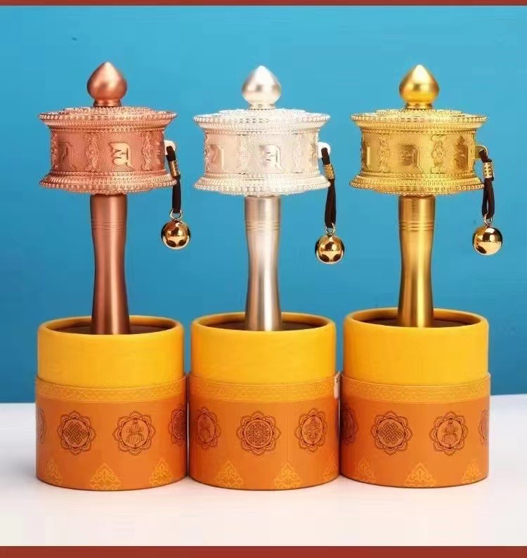 新品德田手摇转经轮静音六字真言锌合金电镀工艺家用摆件西藏转经筒大中小三个号