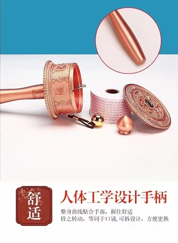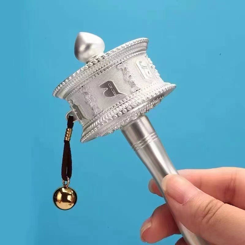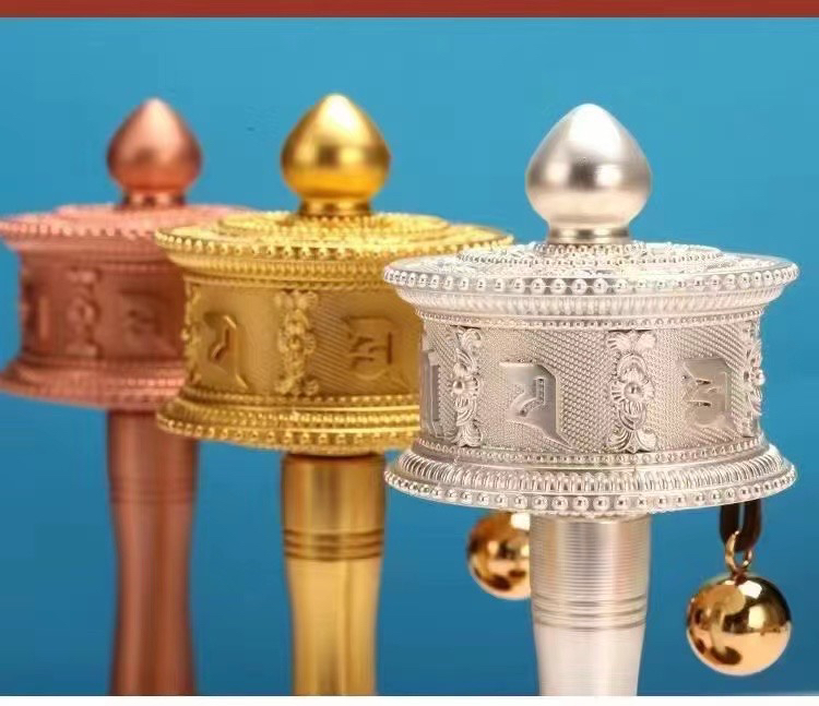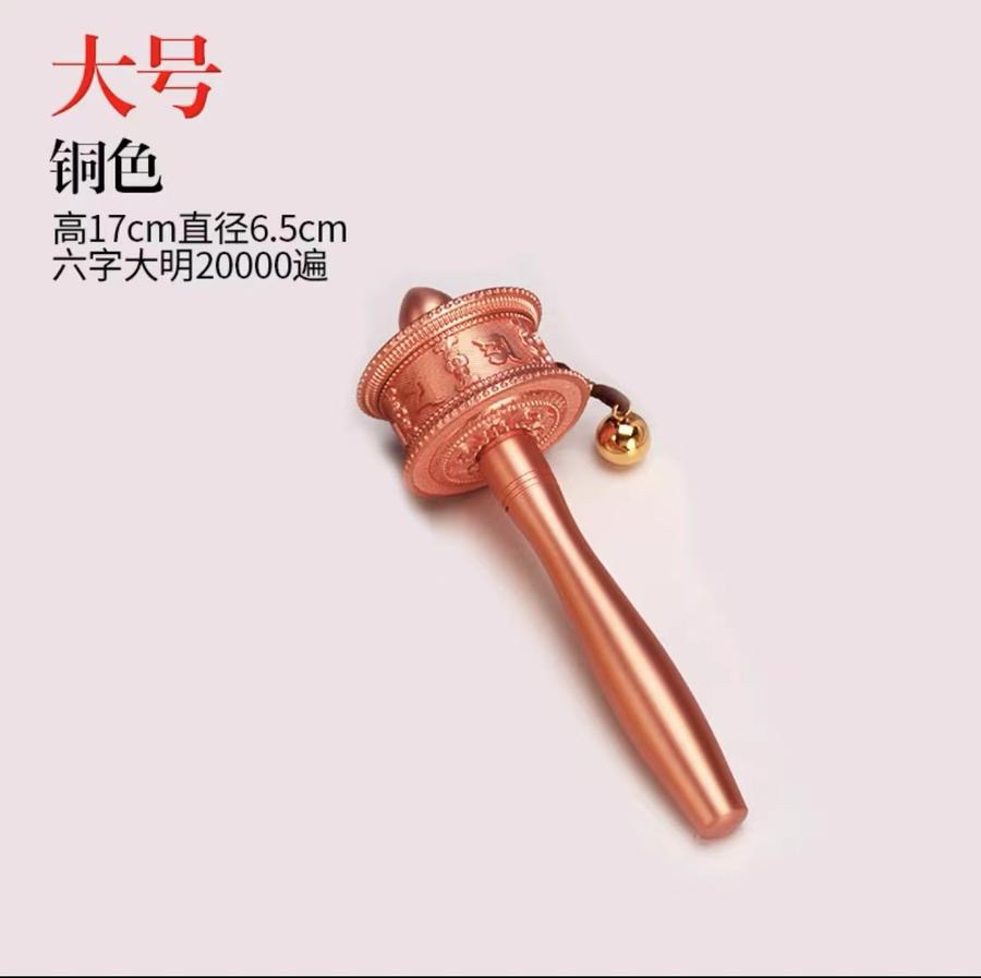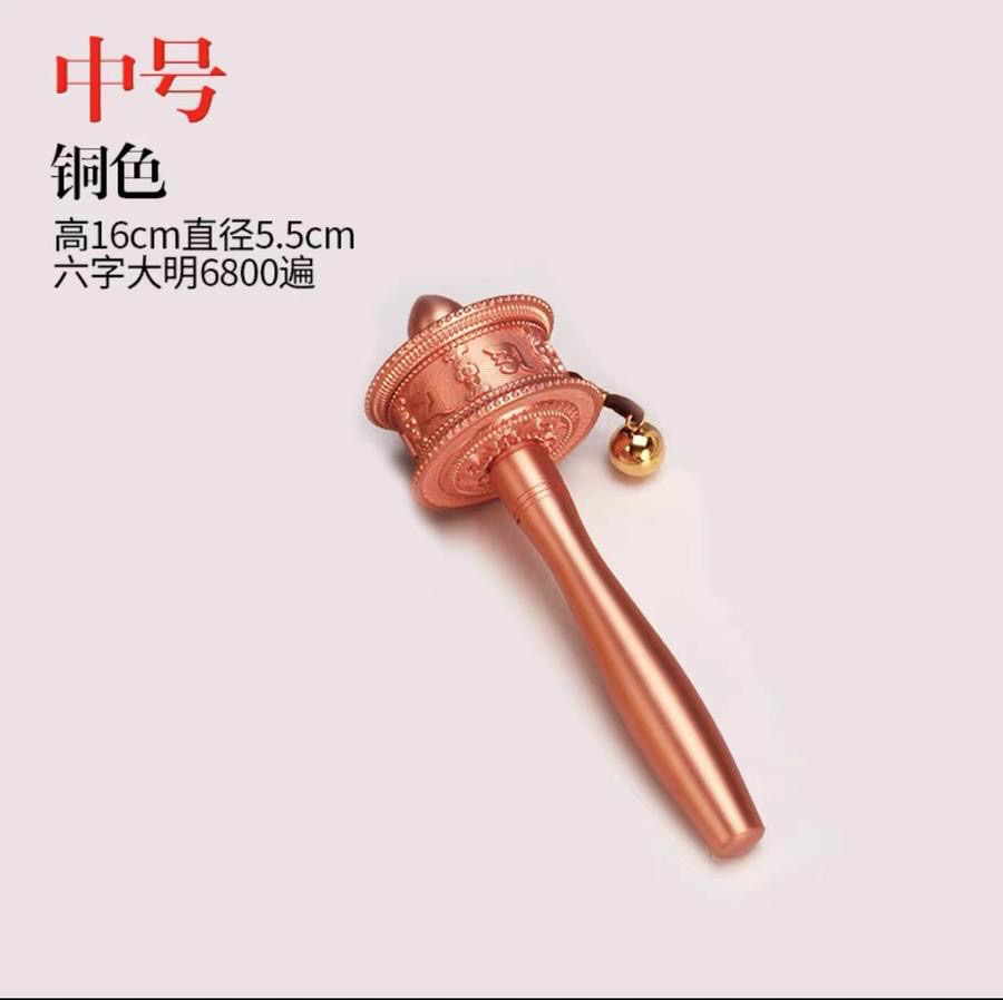 新品德田手摇转经轮静音六字真言锌合金电镀工艺家用摆件西藏转经筒大中小三个号