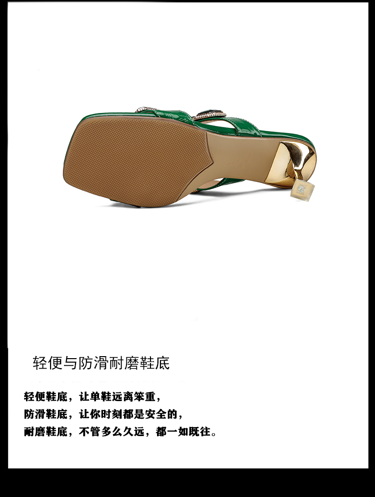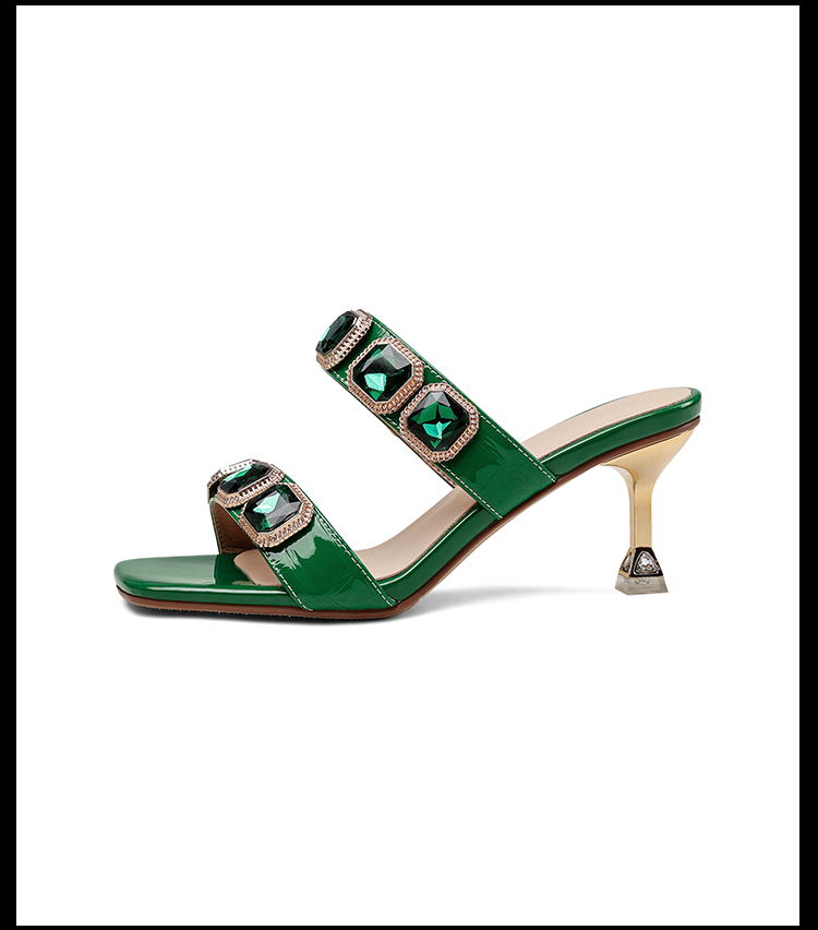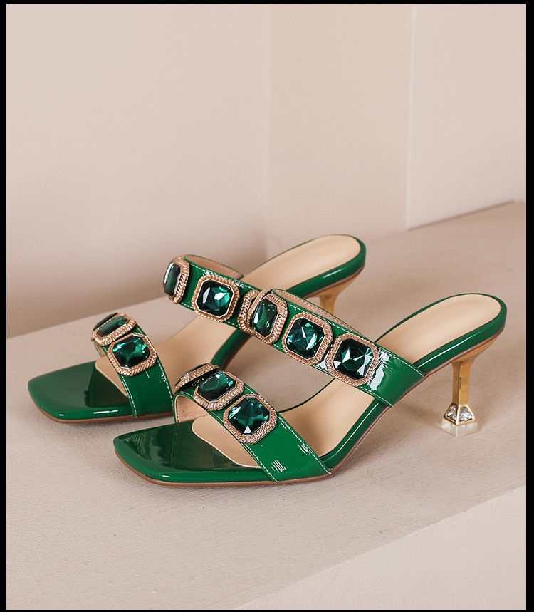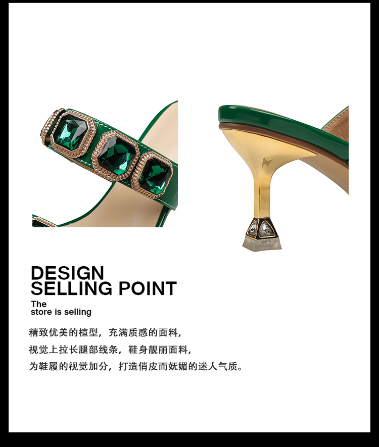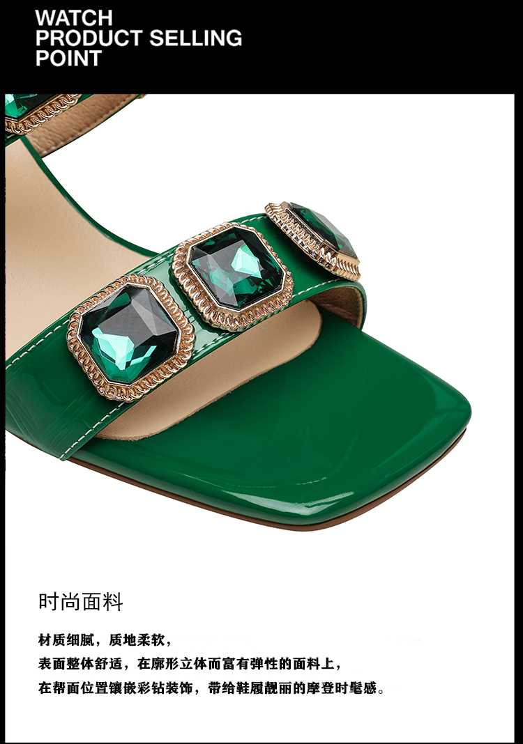 新款外穿,高跟细跟白色绿色皮拖真皮水钻韩版凉拖鞋PLGZ-D109-1