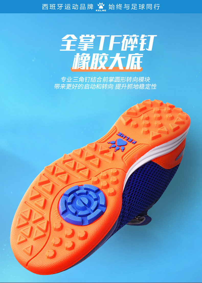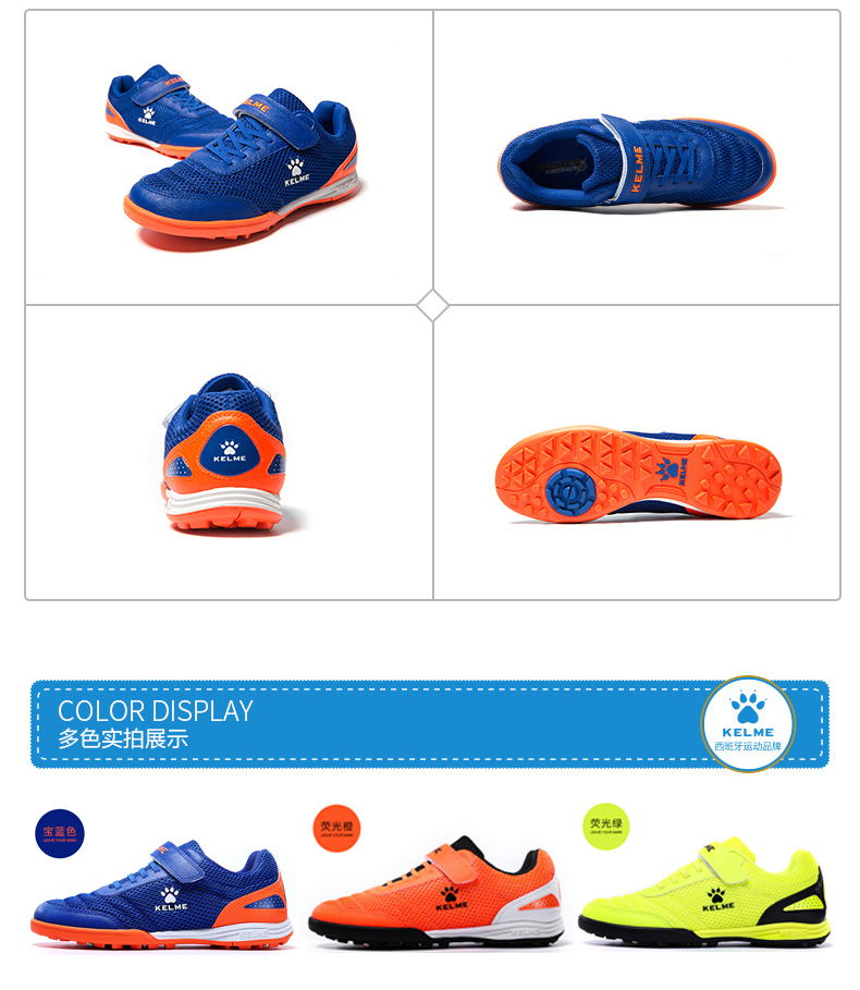 卡尔美儿童足球鞋男女魔术贴碎钉球鞋男童学生透气足球训练鞋