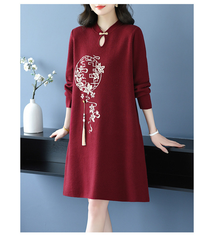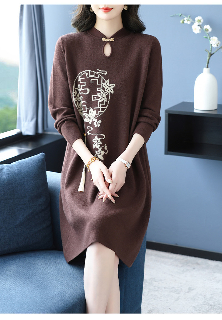 新中式国风女装针织连衣裙,洋气毛衣裙中长款显瘦遮肉裙子CC-16-9619