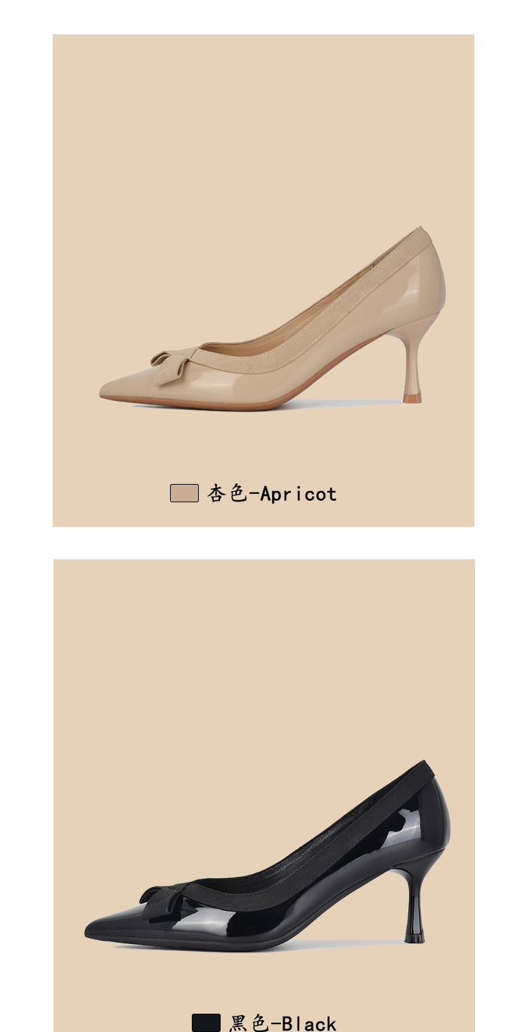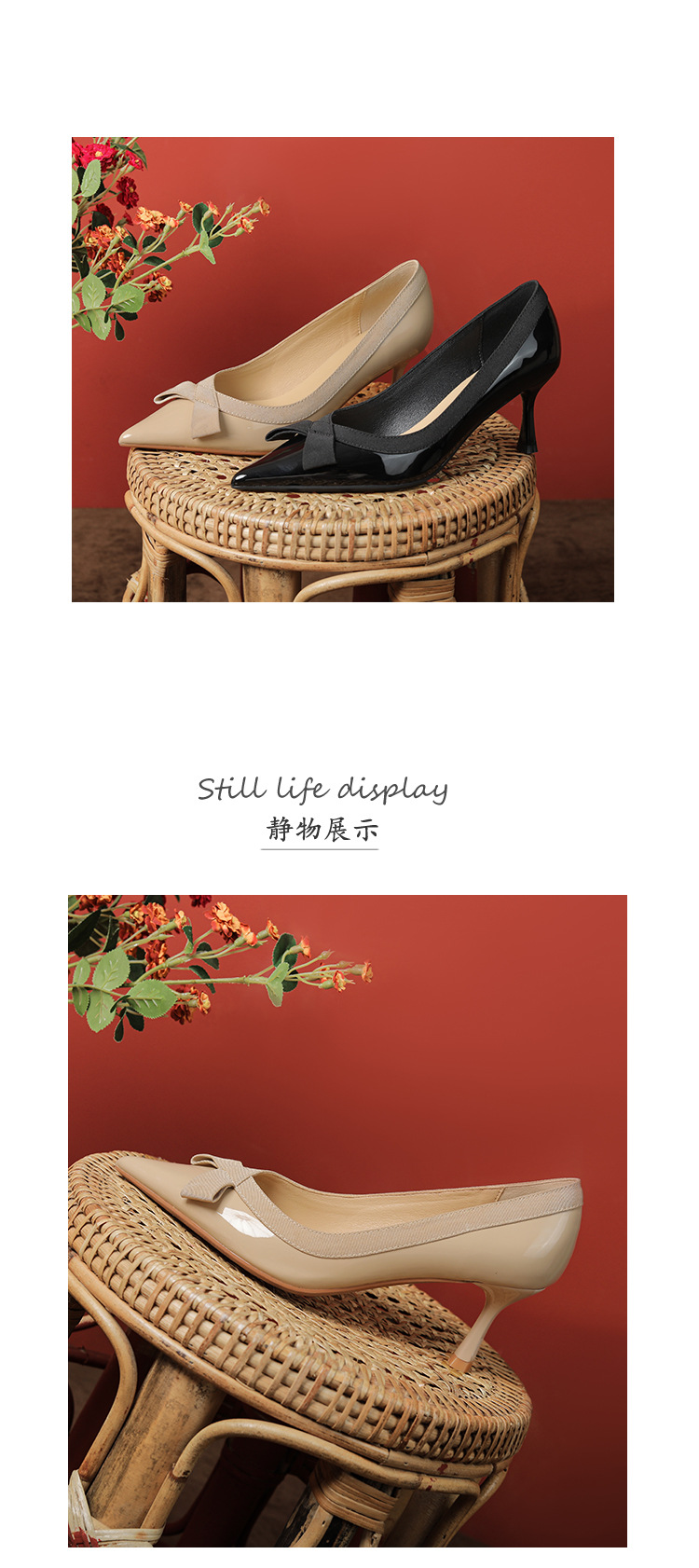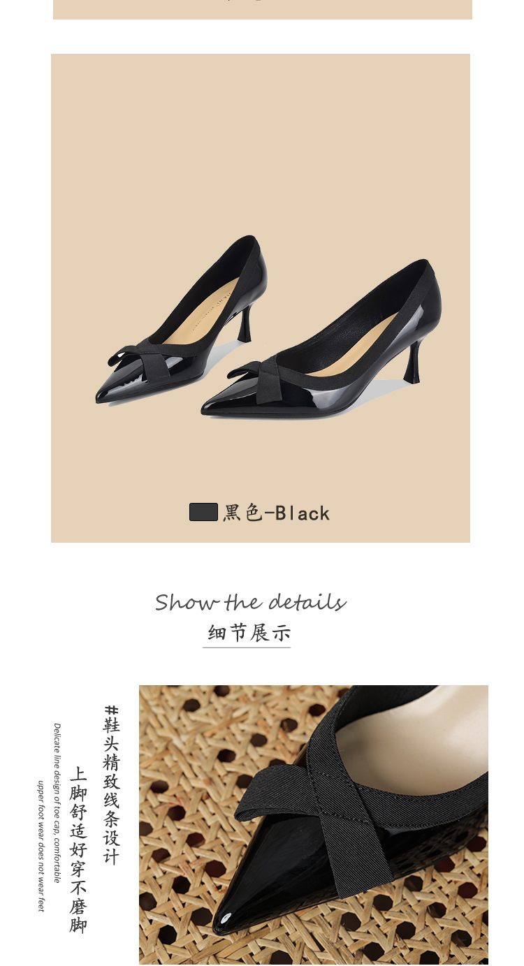 TZW-3356-19 羊皮法式高跟鞋女细跟尖头单鞋通勤蝴蝶结气质不累脚浅口