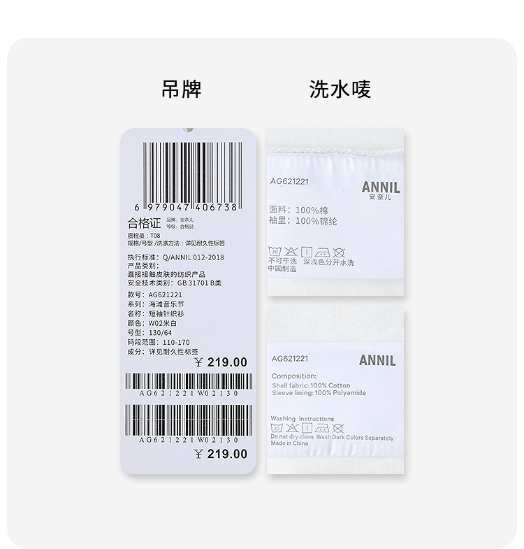 【实体店同款】女童短袖针织衫夏季新款安奈儿童装AG621221