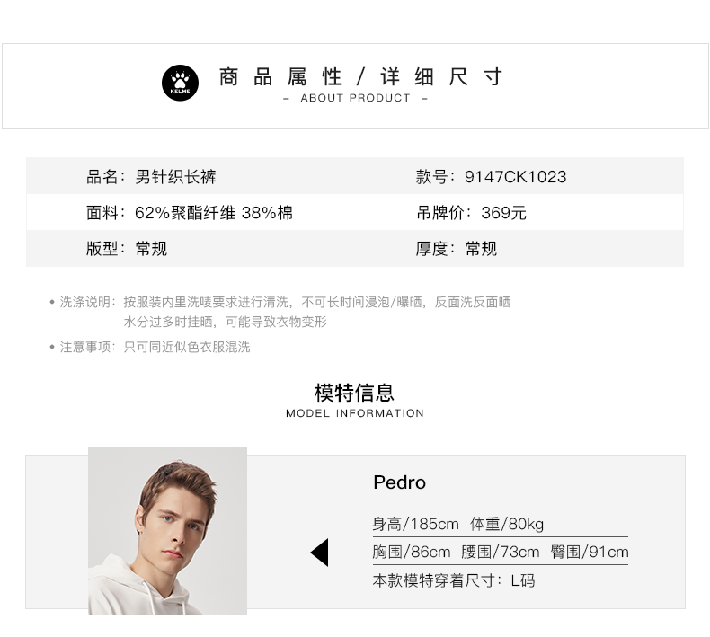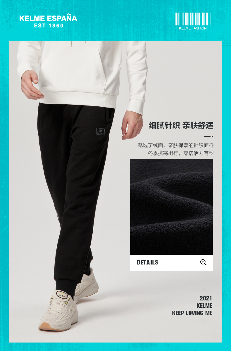 卡尔美加绒针织长裤男秋冬厚灰色运动裤休闲百搭束脚女卫裤