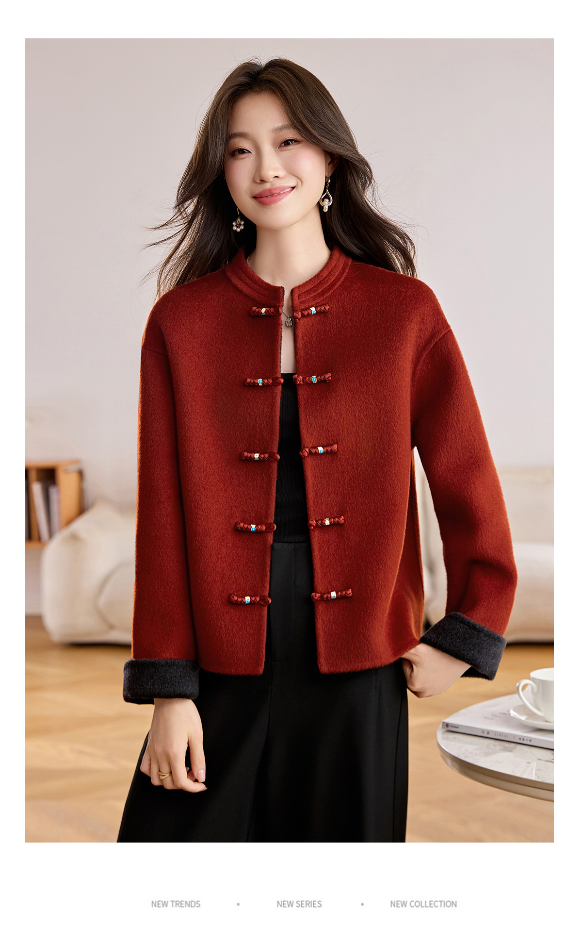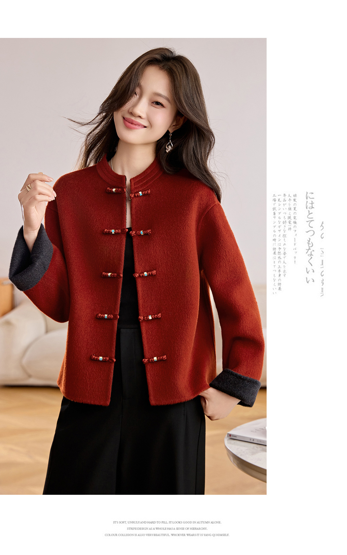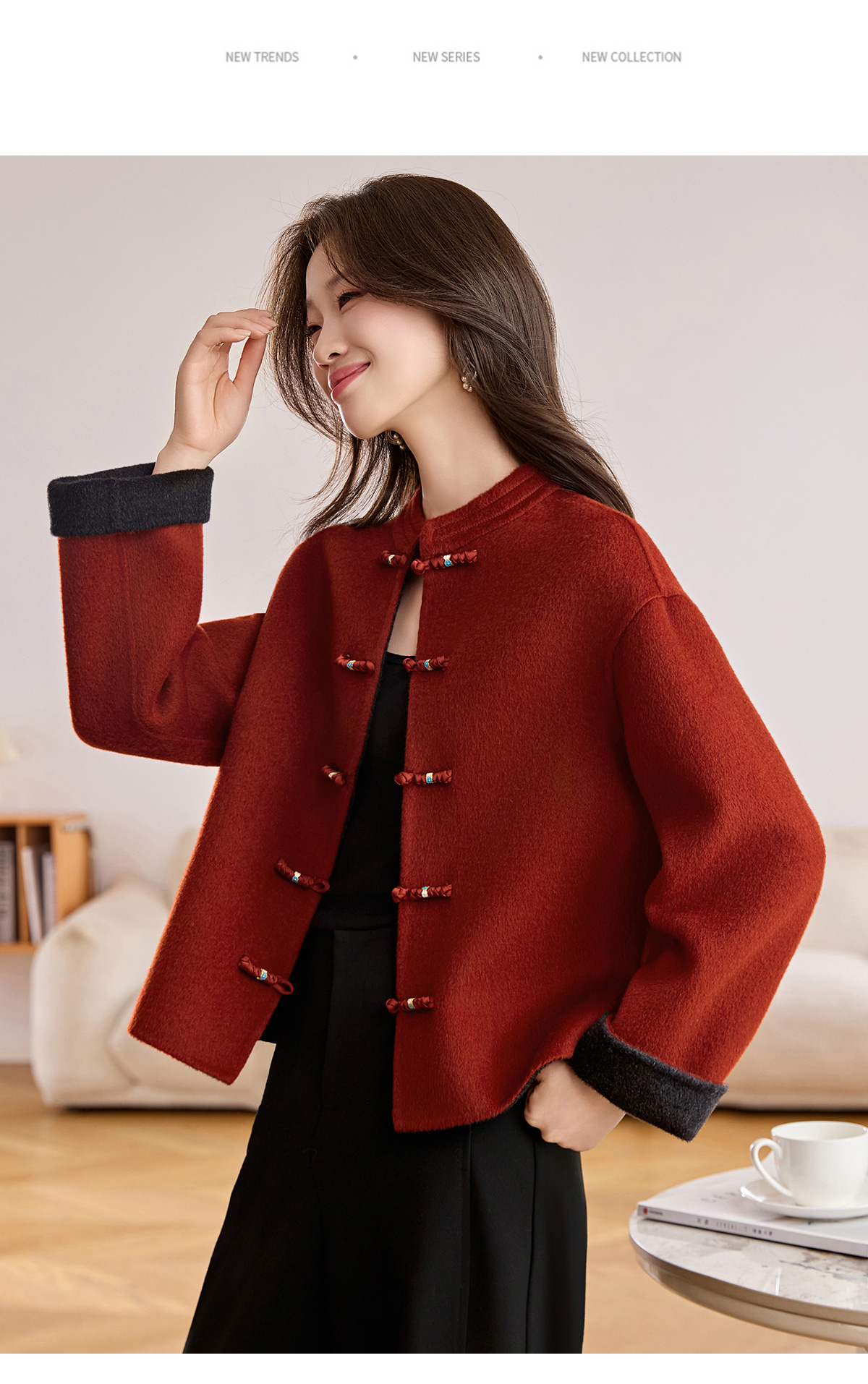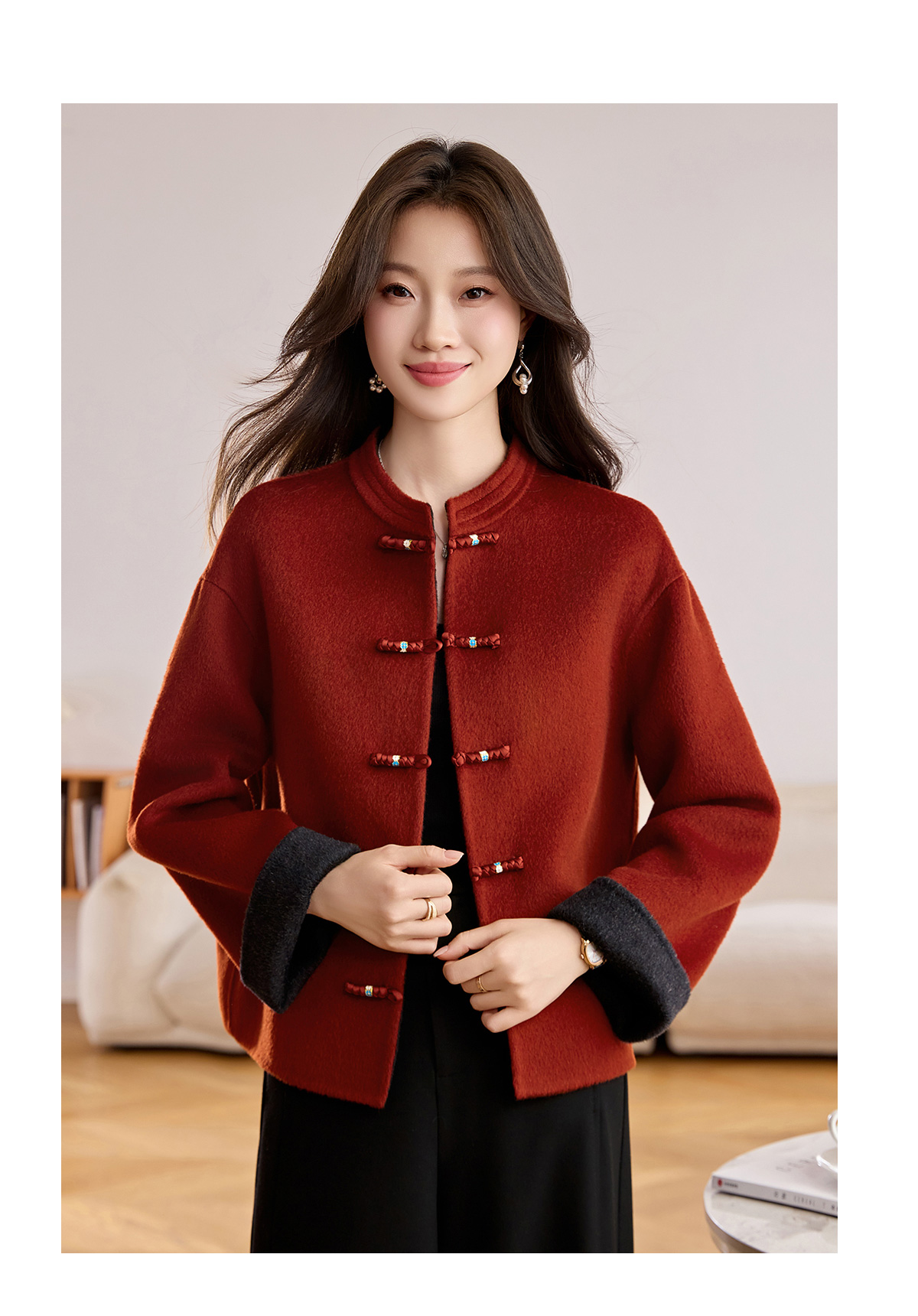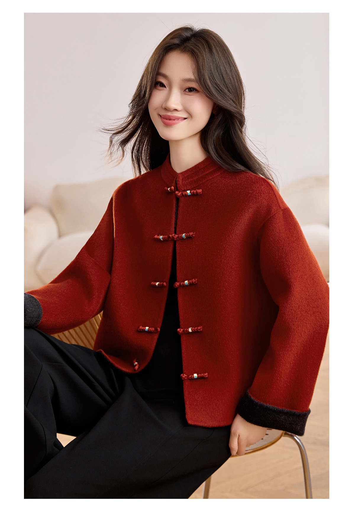 新中式国风复古盘扣毛呢外套,时尚显瘦红色双面羊毛大衣HR-ZYQ25280