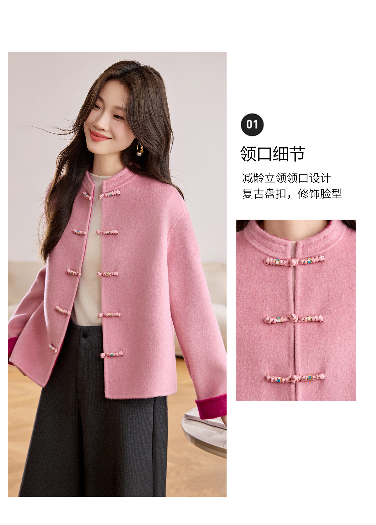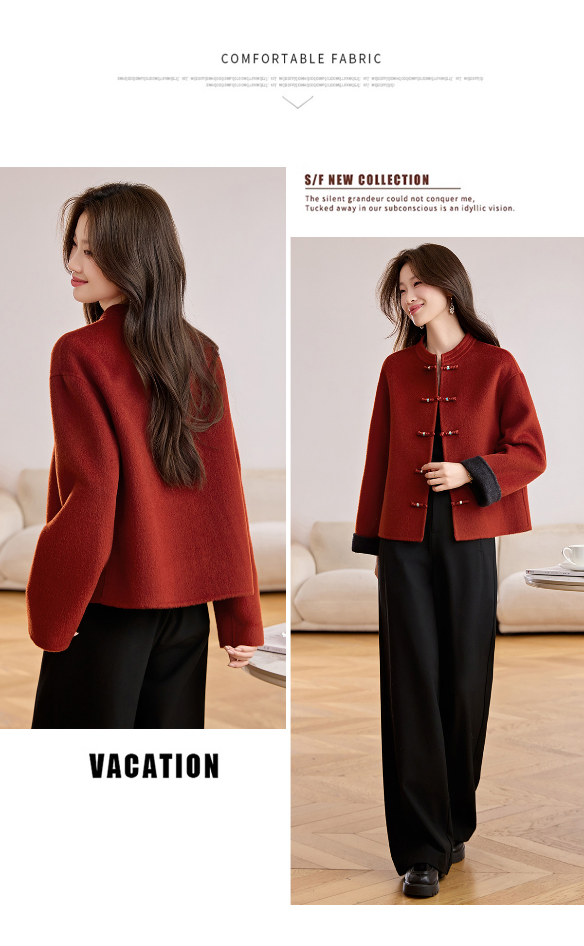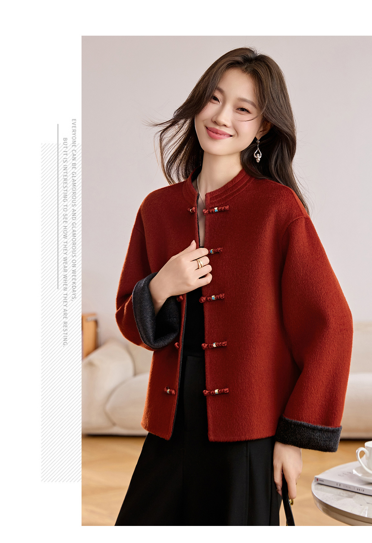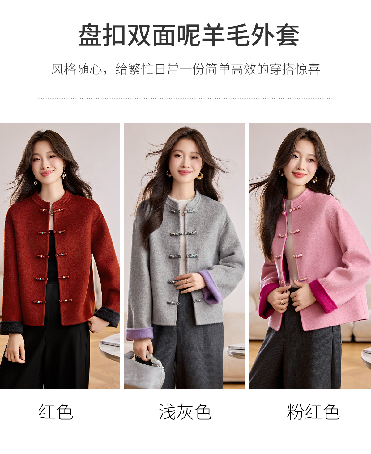 新中式国风复古盘扣毛呢外套,时尚显瘦红色双面羊毛大衣HR-ZYQ25280