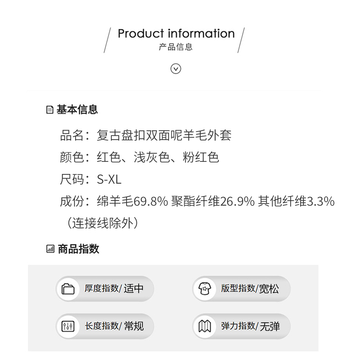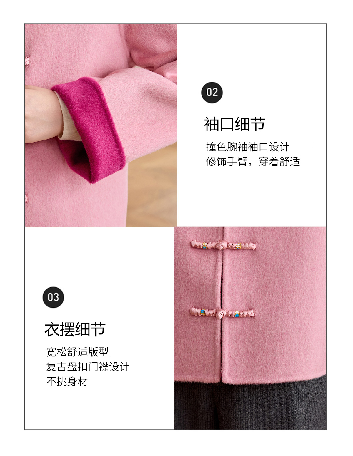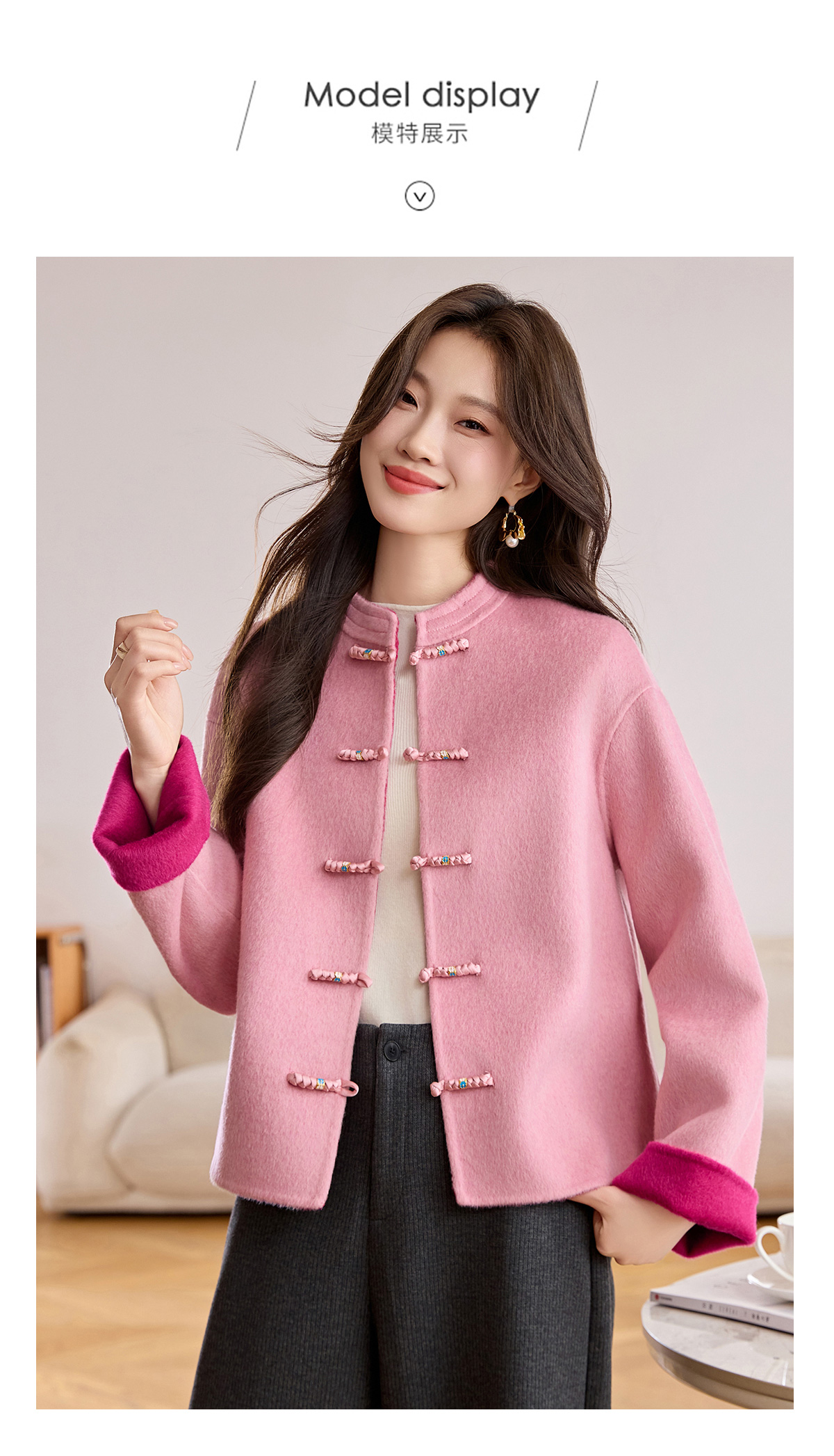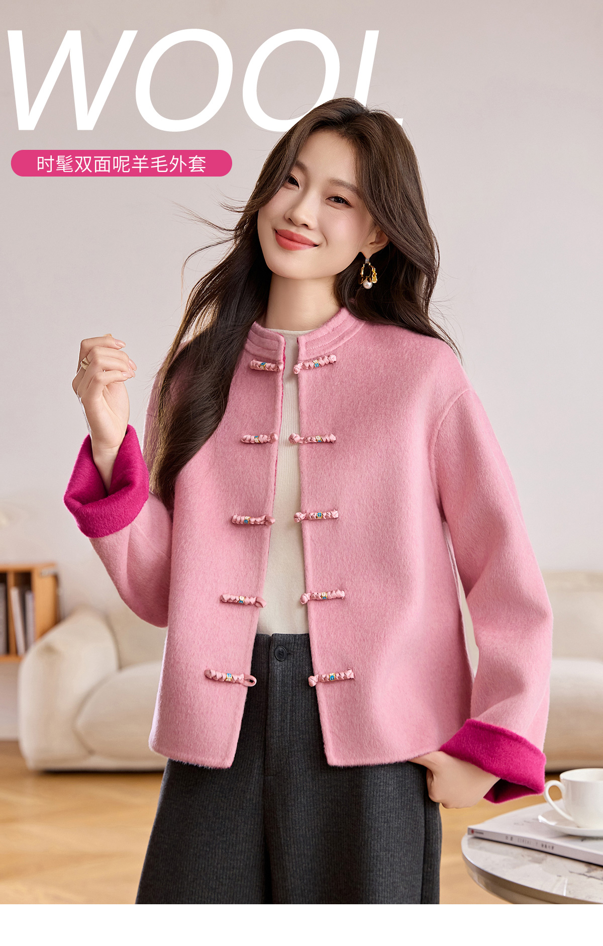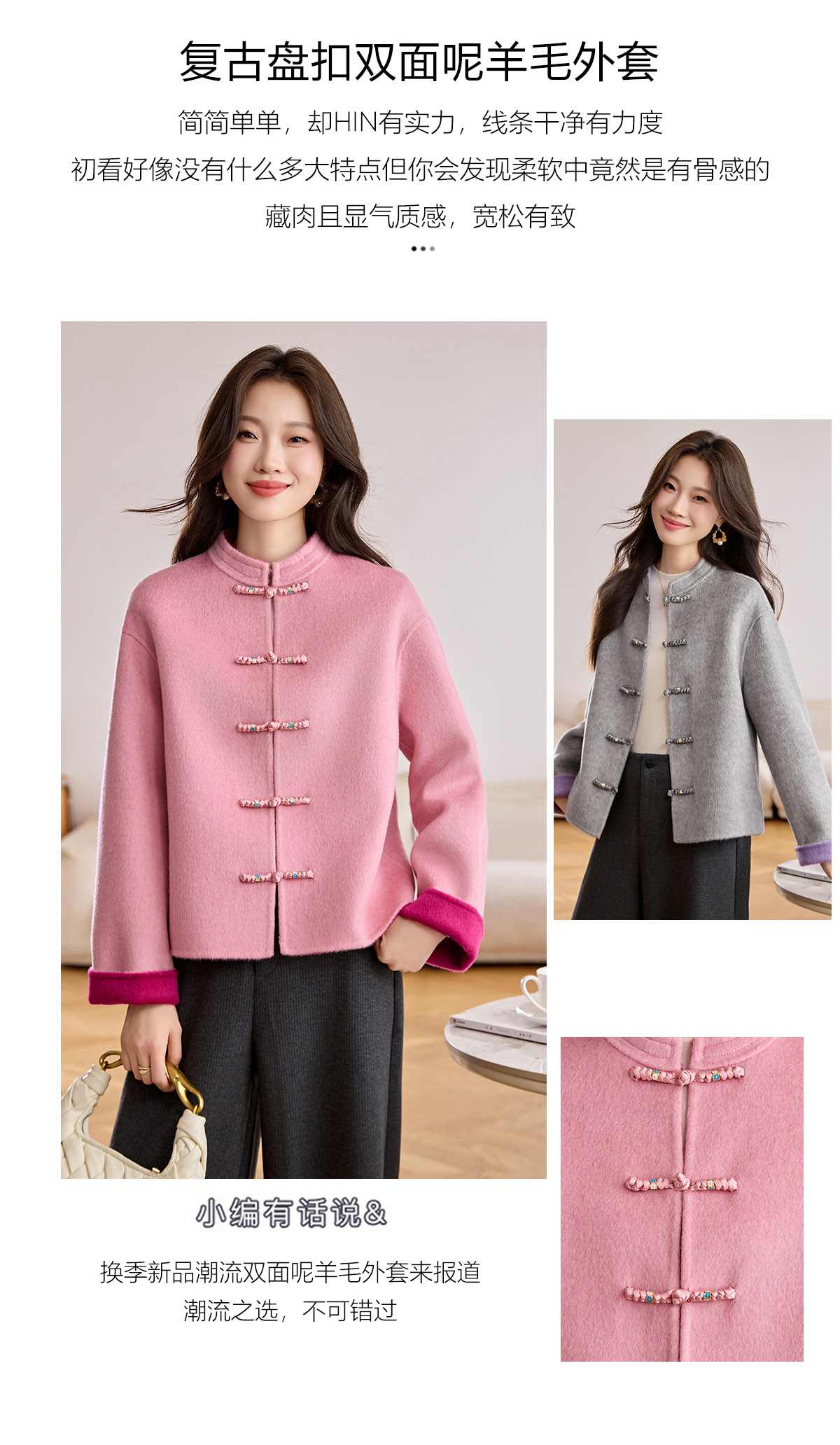 新中式国风复古盘扣毛呢外套,时尚显瘦红色双面羊毛大衣HR-ZYQ25280