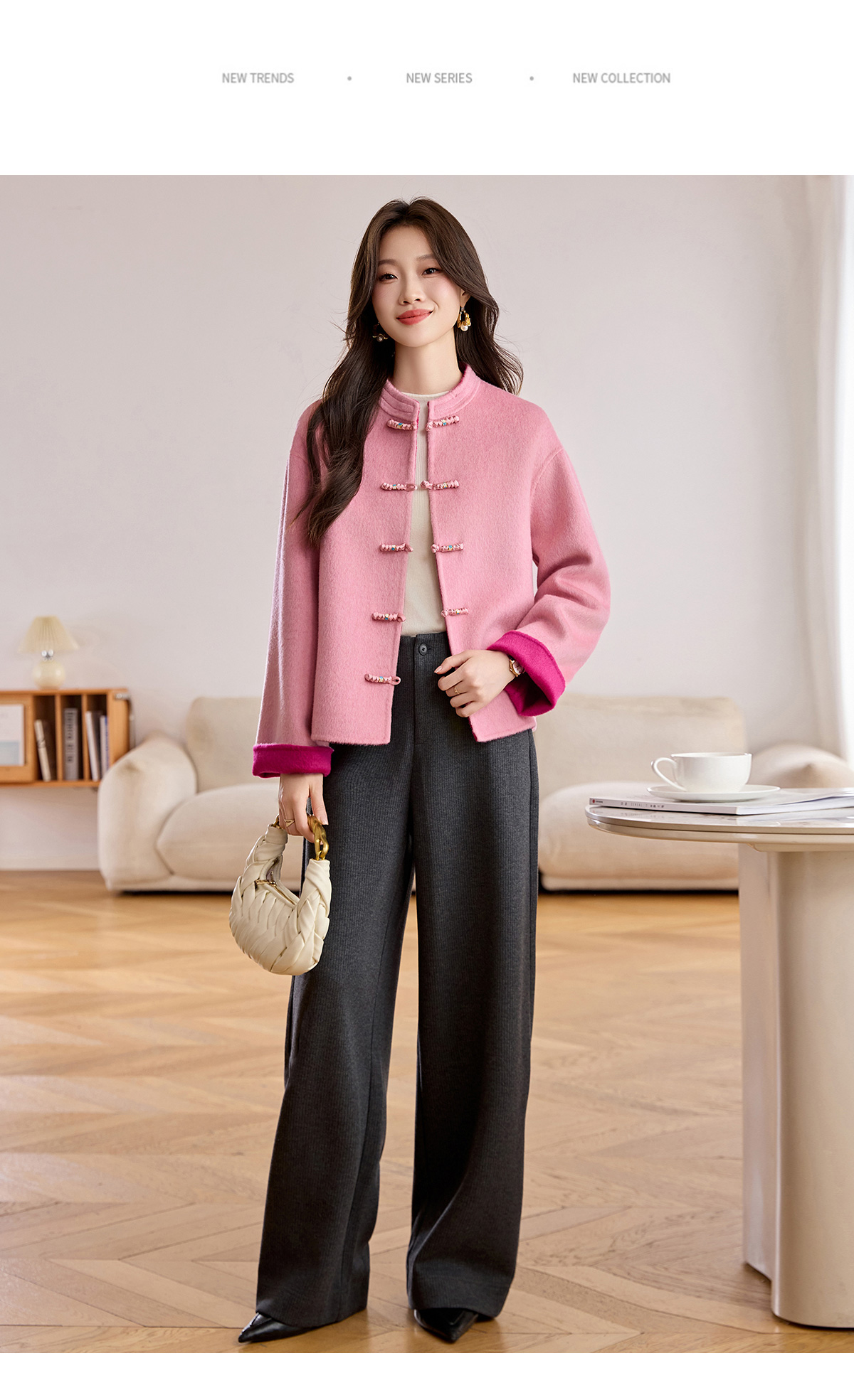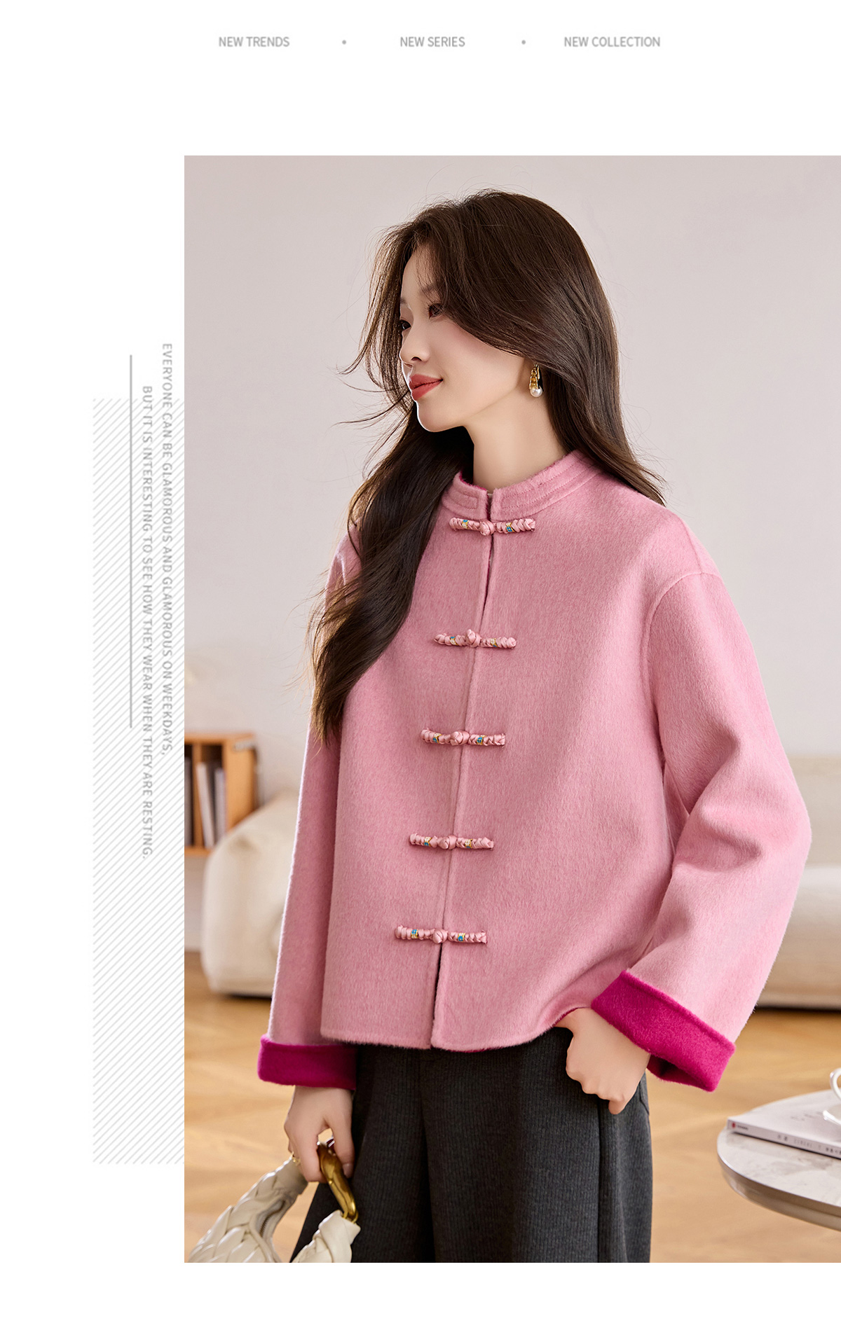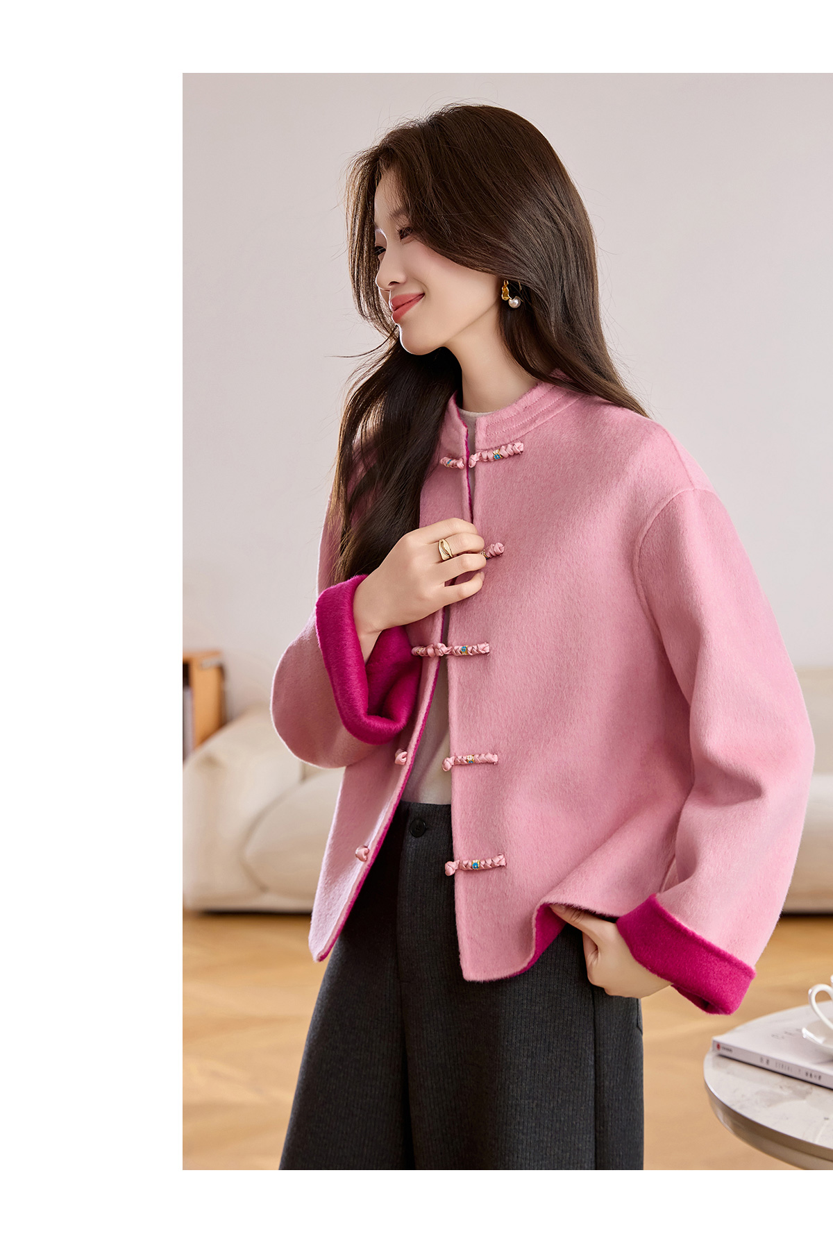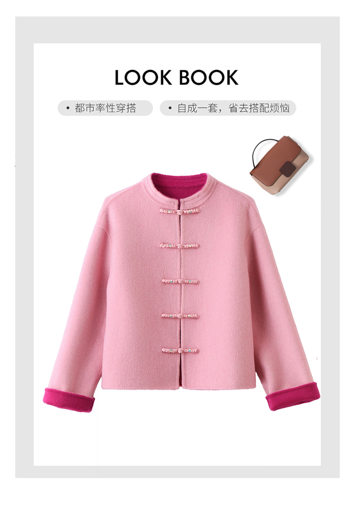 新中式国风复古盘扣毛呢外套,时尚显瘦红色双面羊毛大衣HR-ZYQ25280