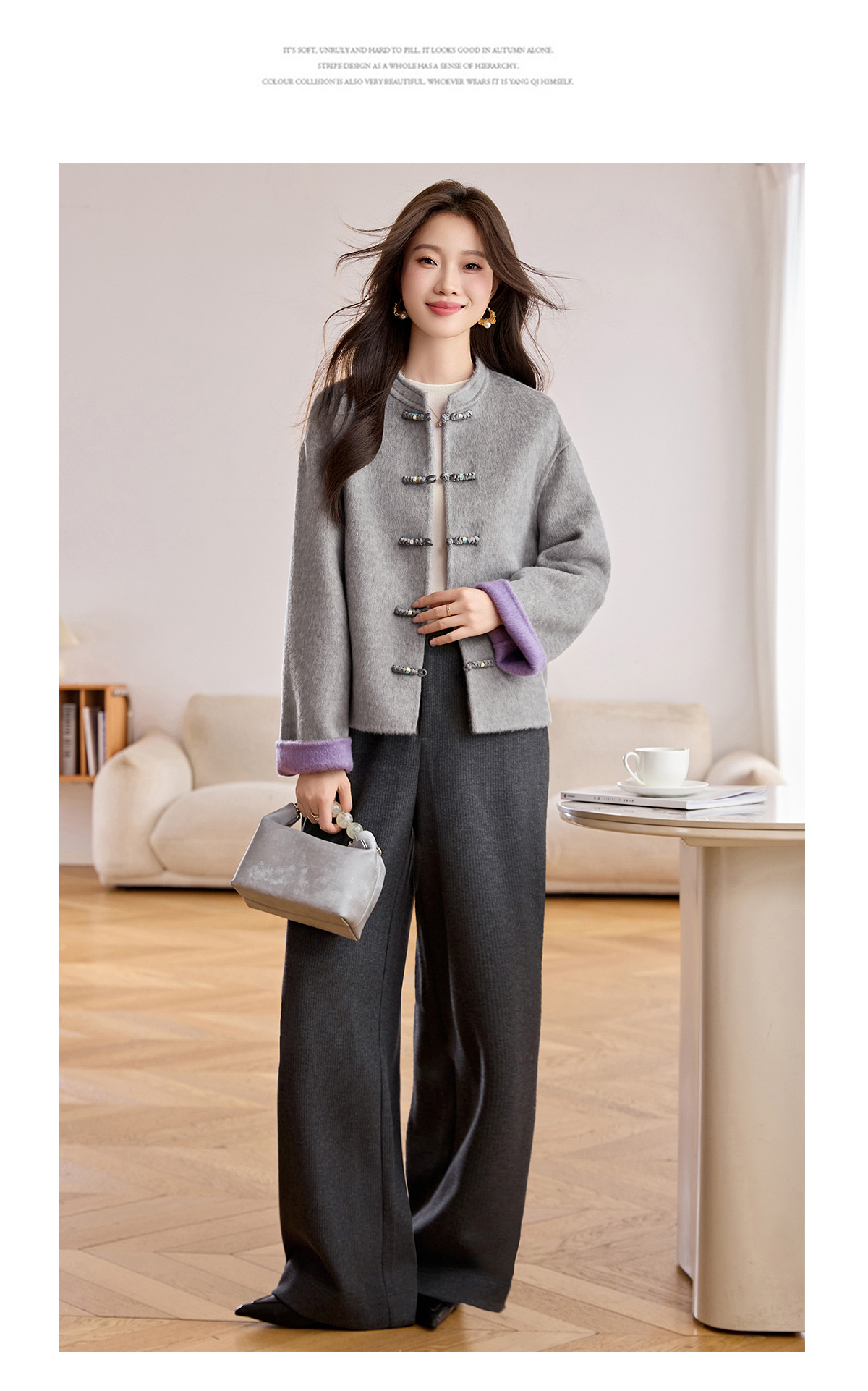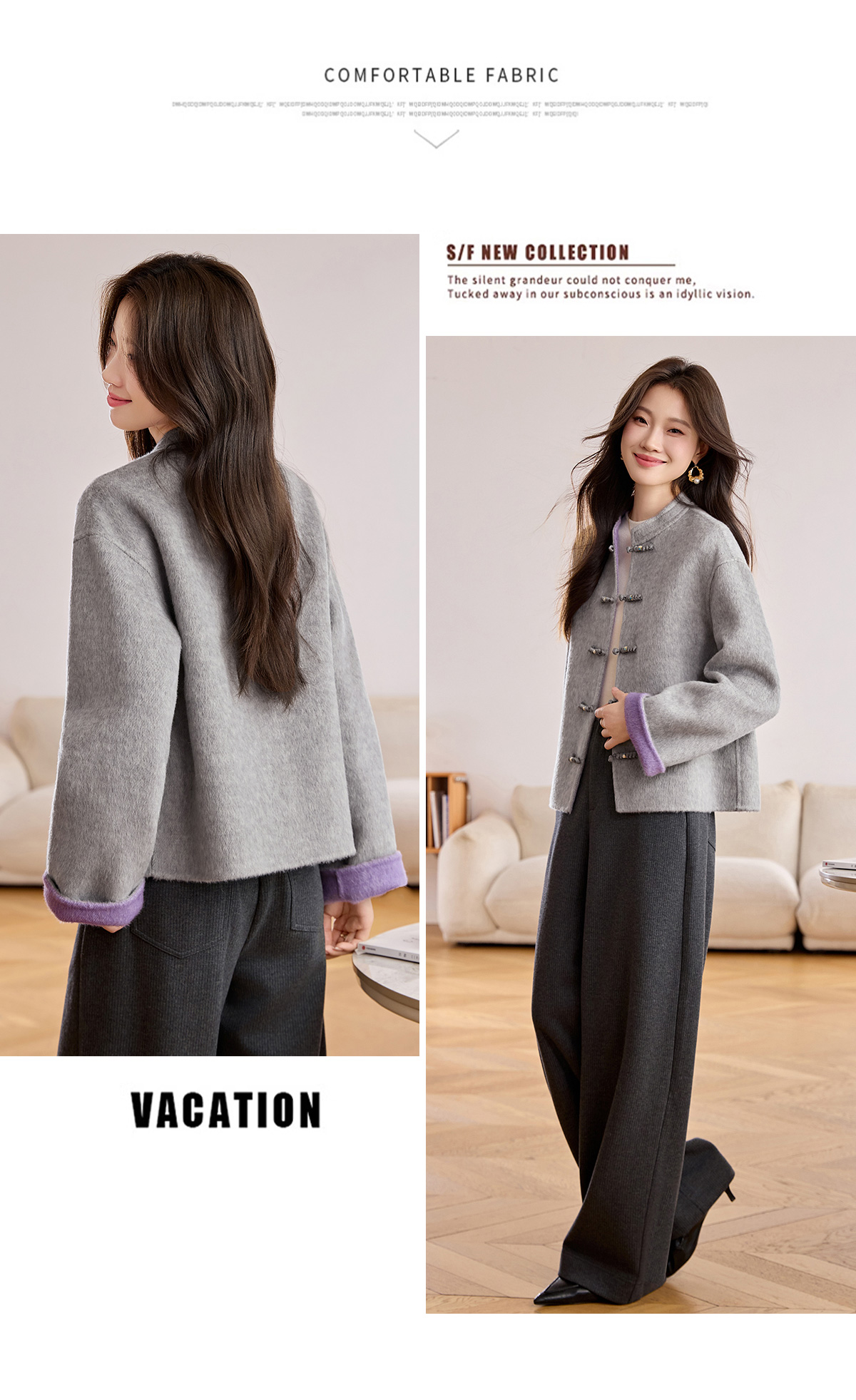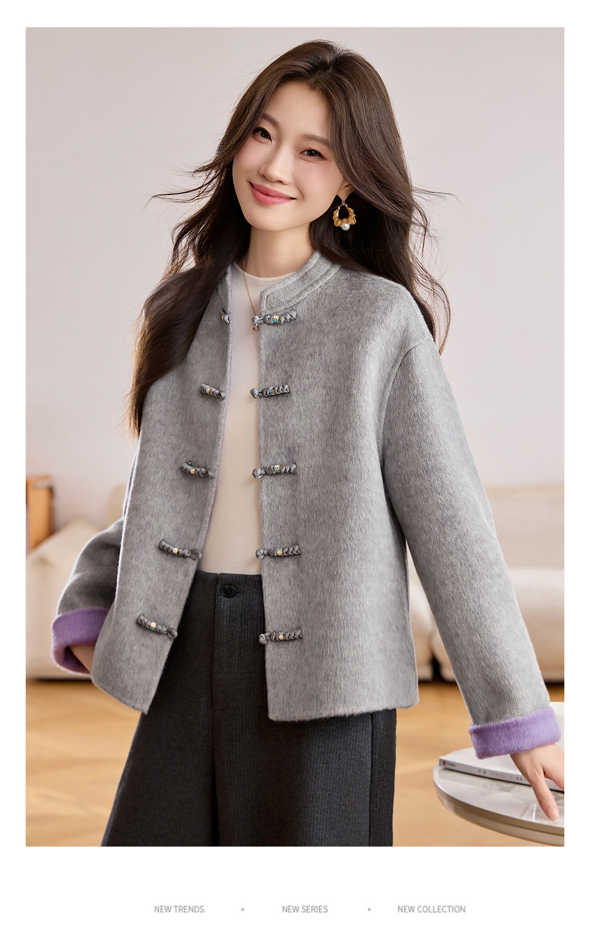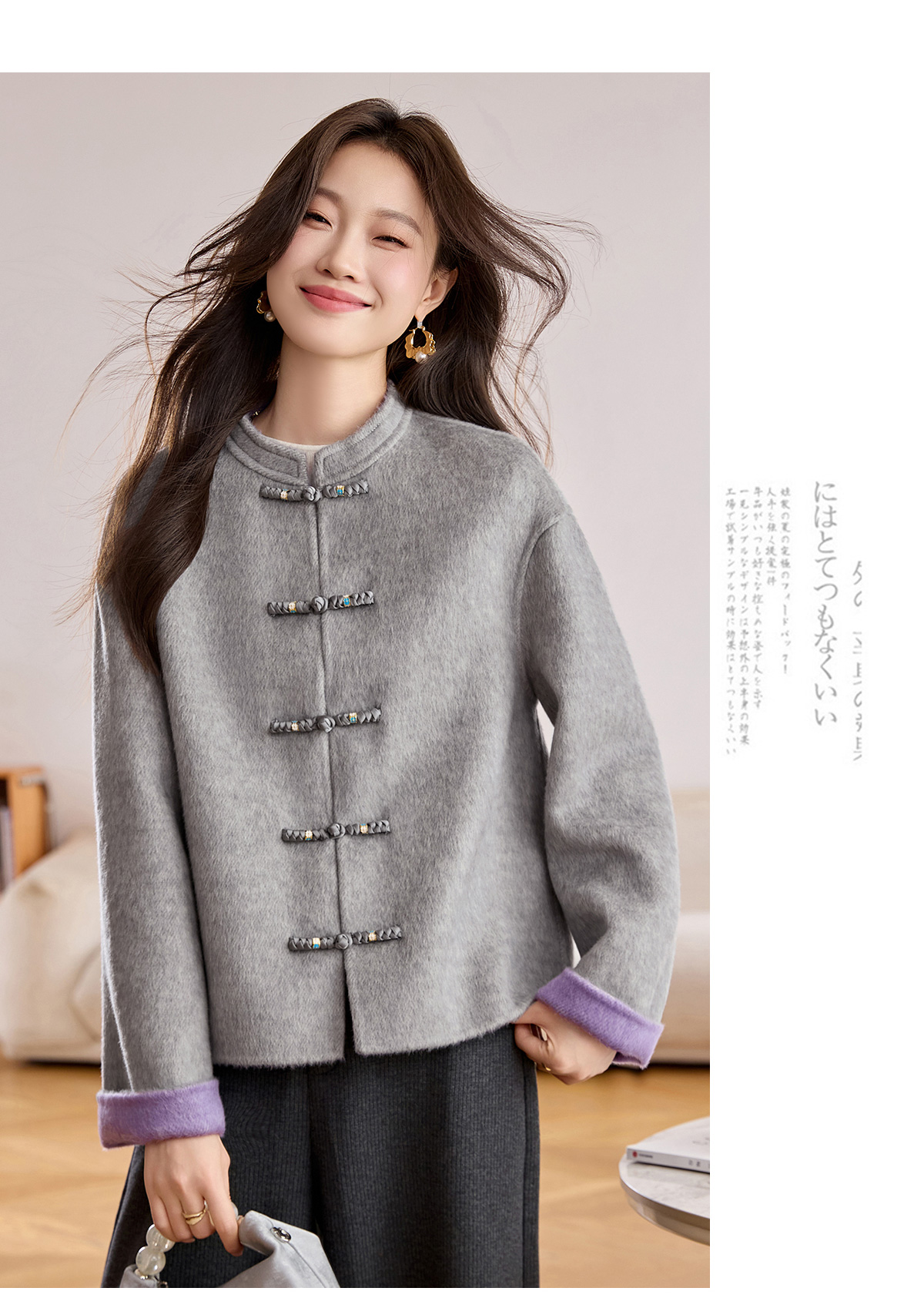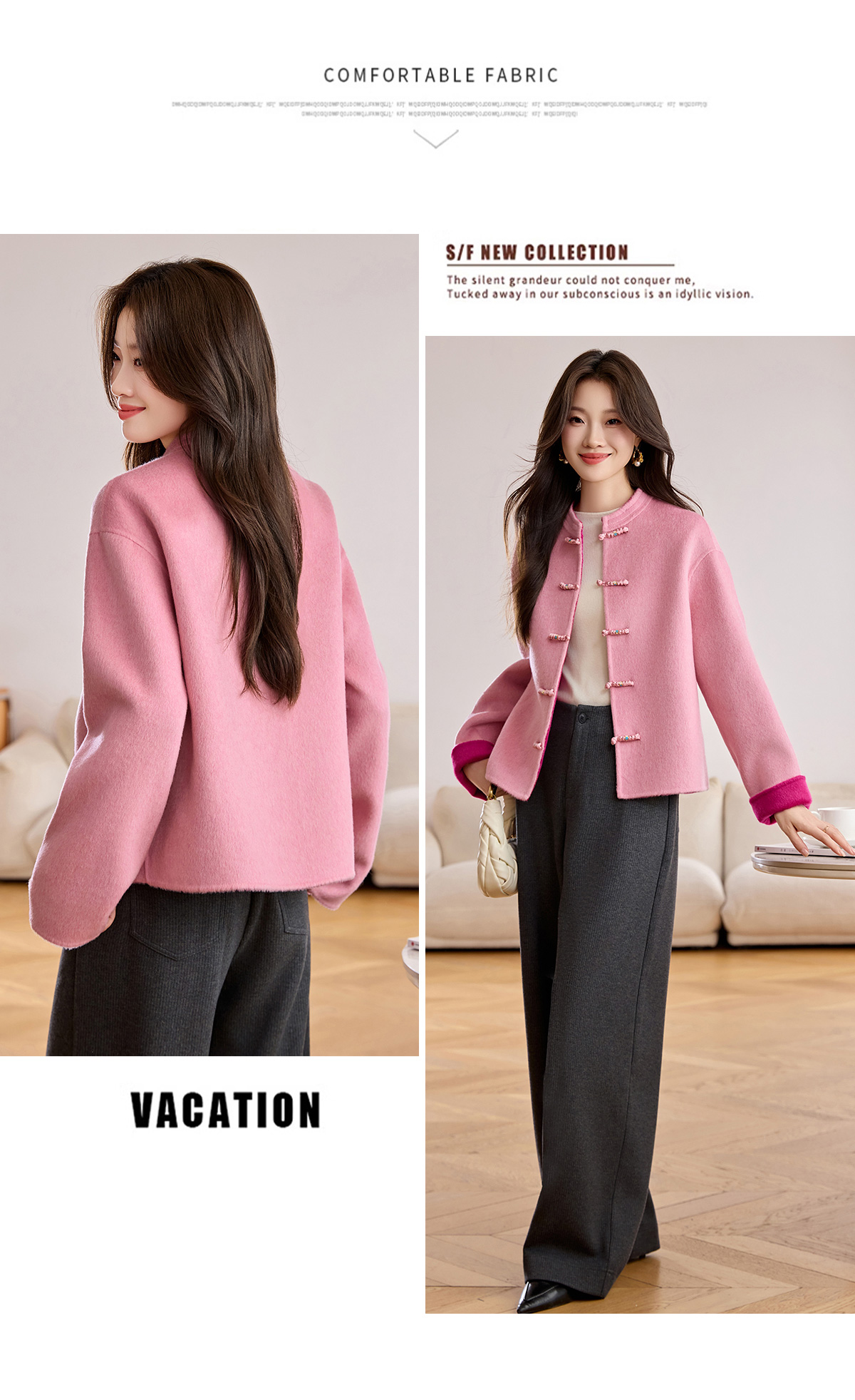 新中式国风复古盘扣毛呢外套,时尚显瘦红色双面羊毛大衣HR-ZYQ25280