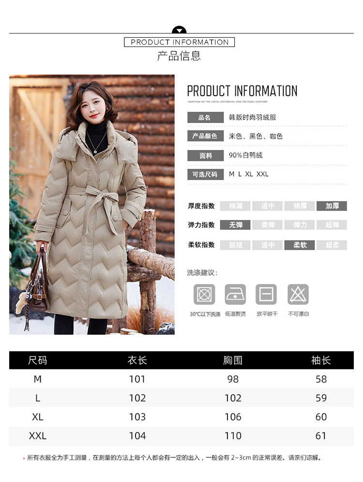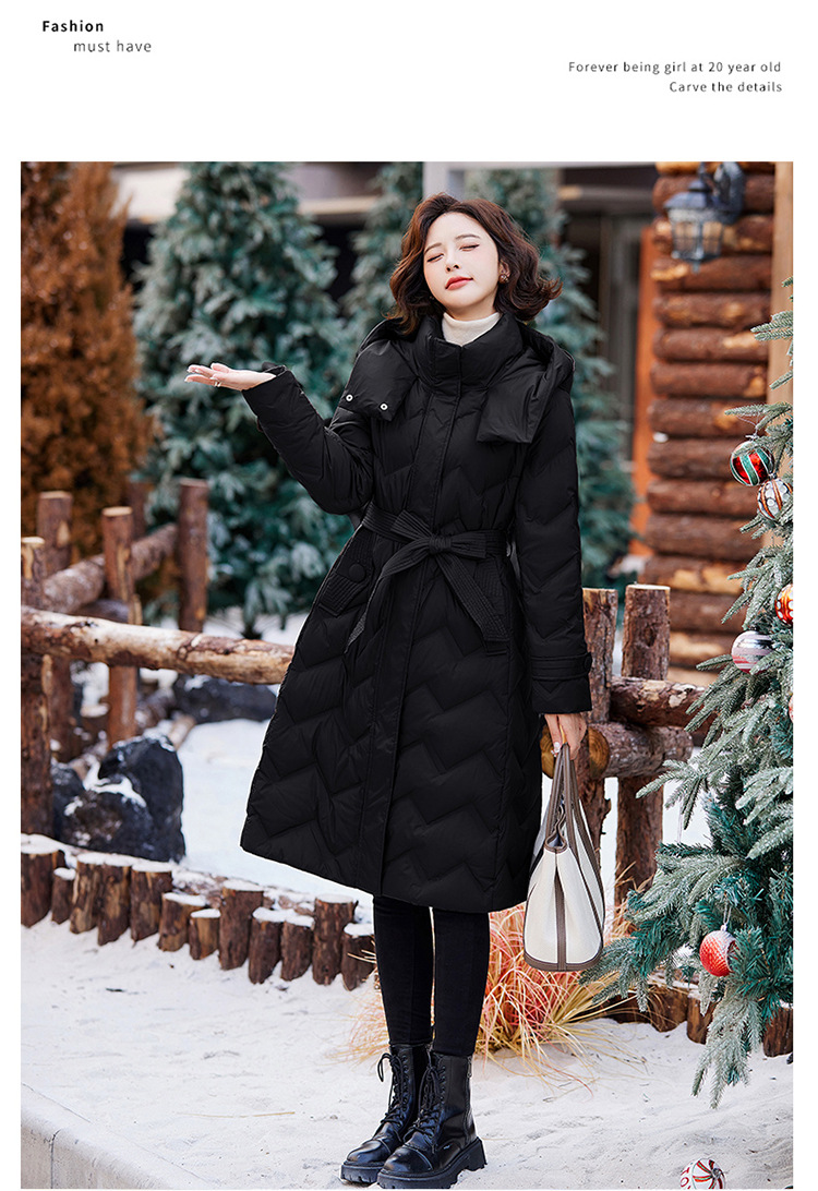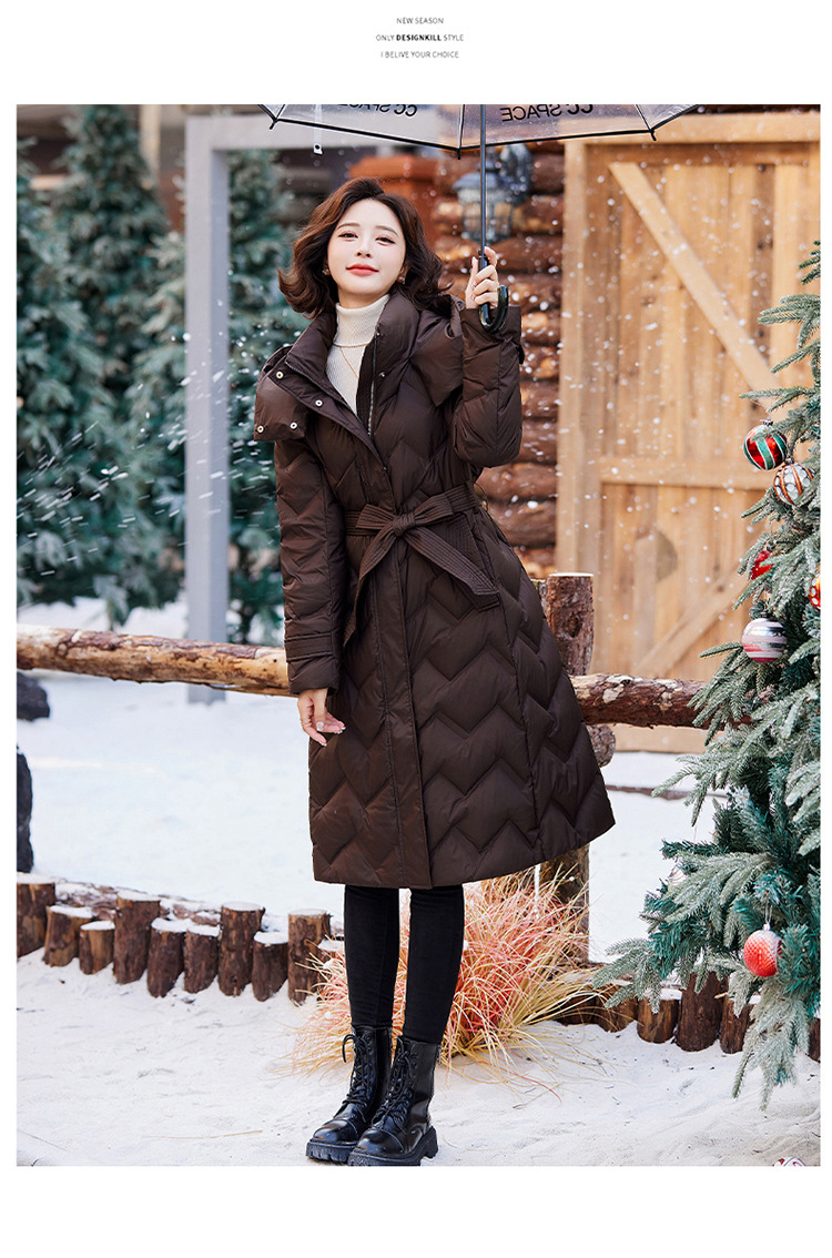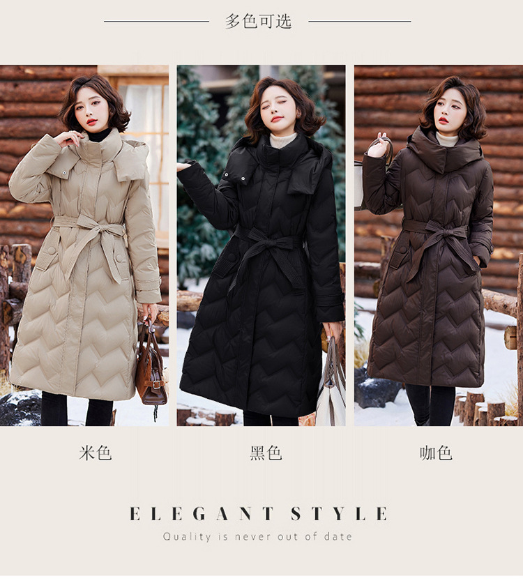 时尚气质羽绒服长款气质收腰,显瘦加厚百搭白鸭绒外套YGYL8812A
