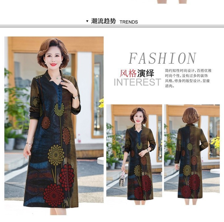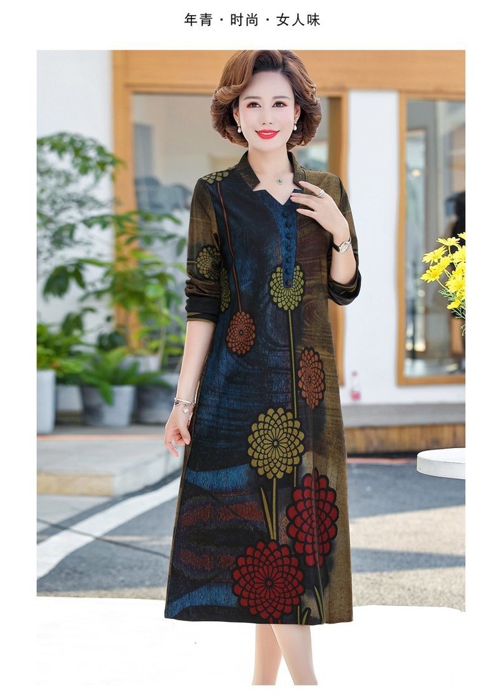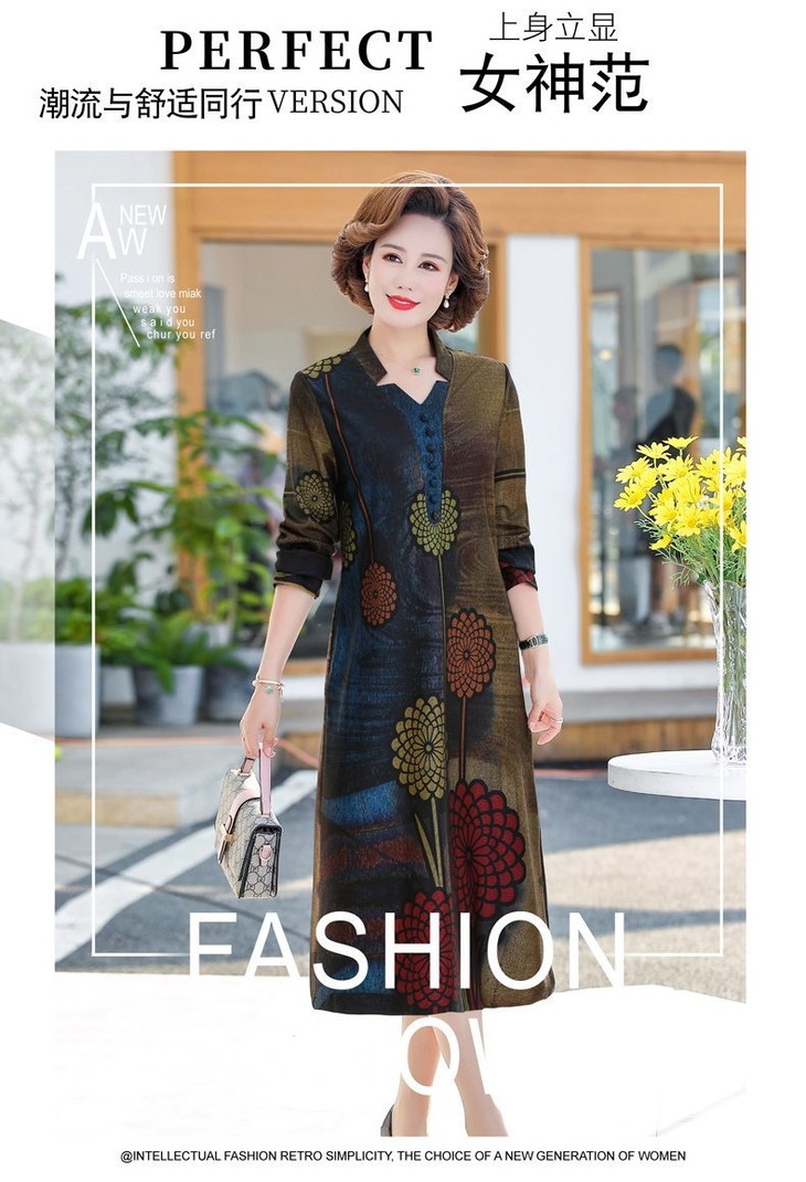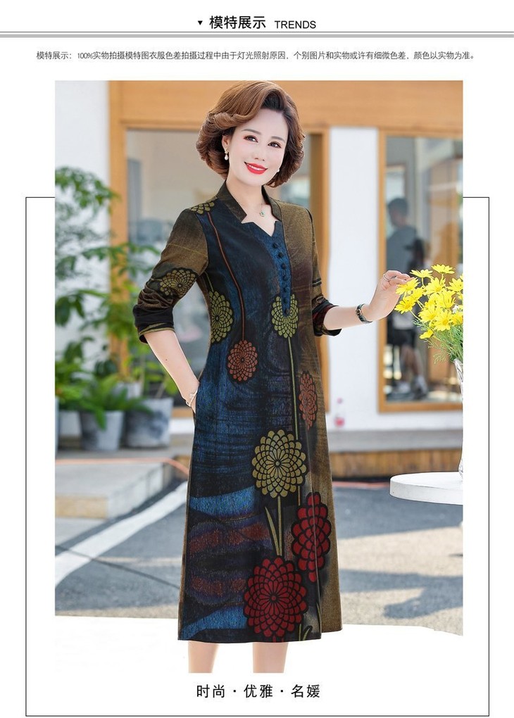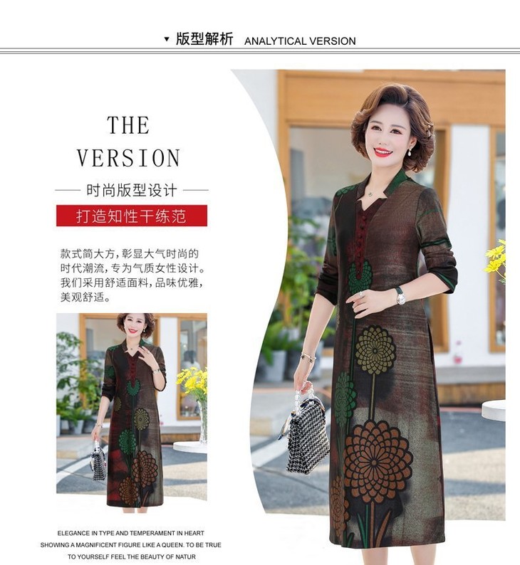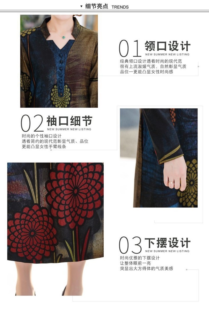 YCE-A935-2012印花大码宽松过膝宽松连衣裙