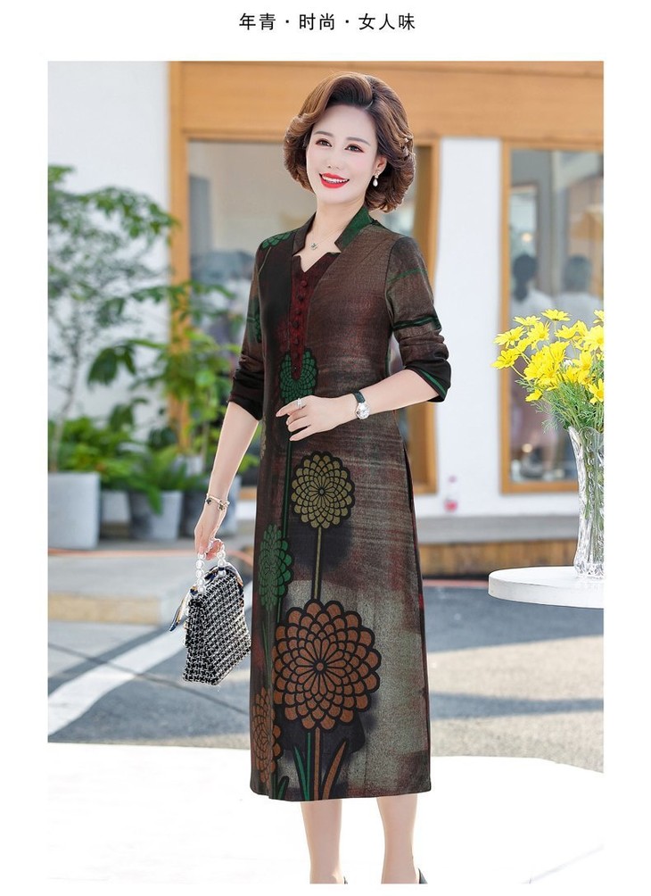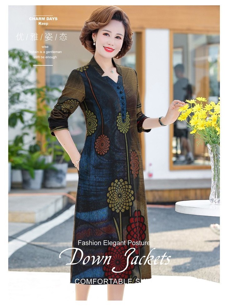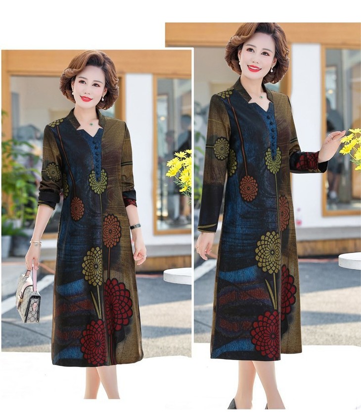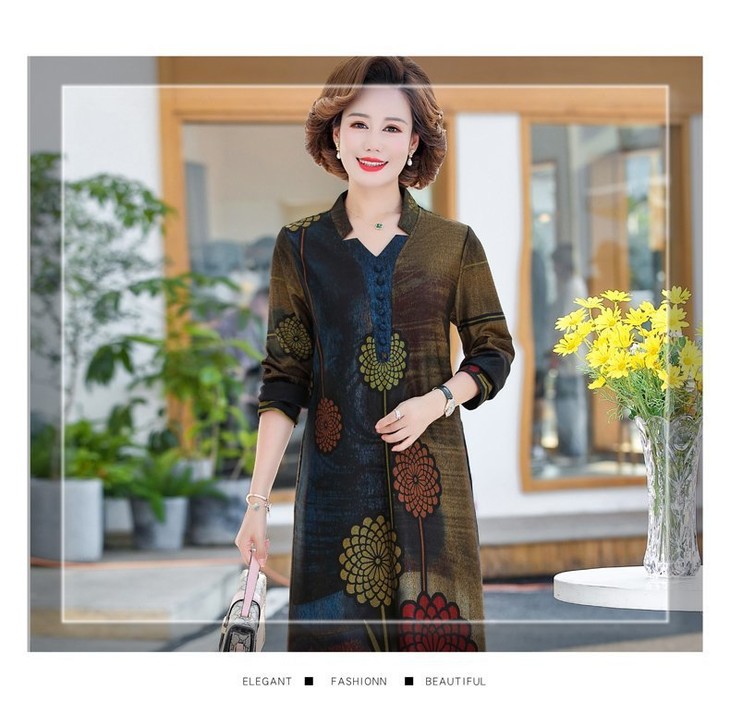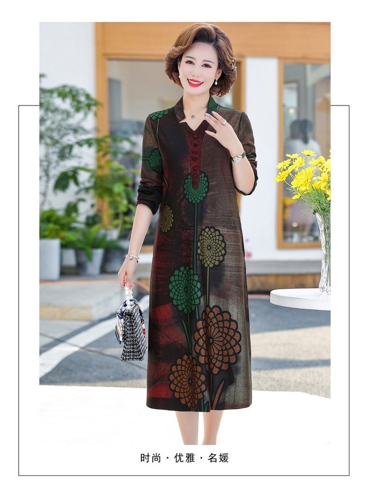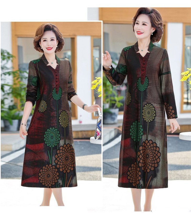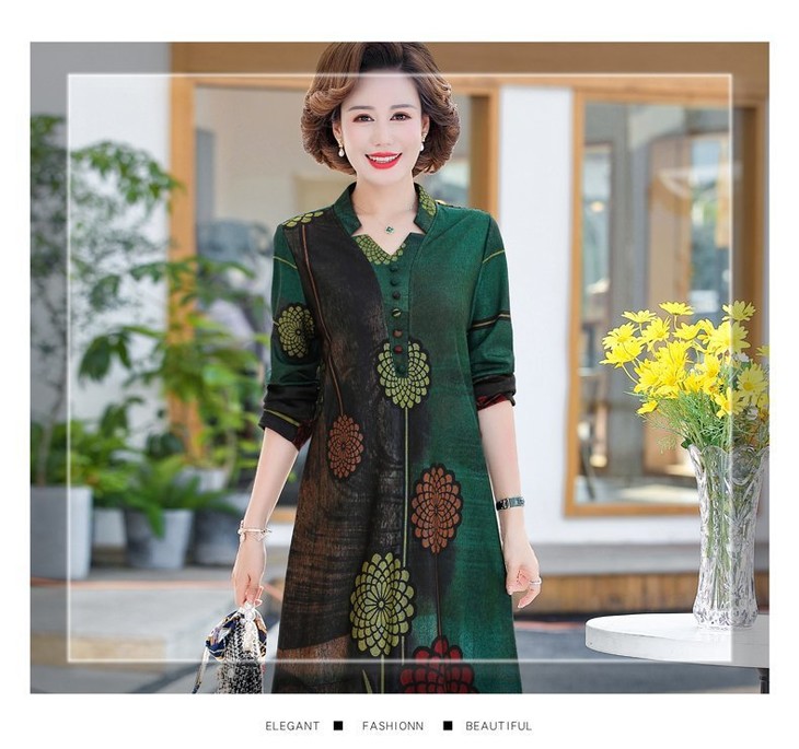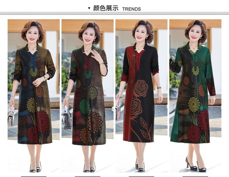 YCE-A935-2012印花大码宽松过膝宽松连衣裙