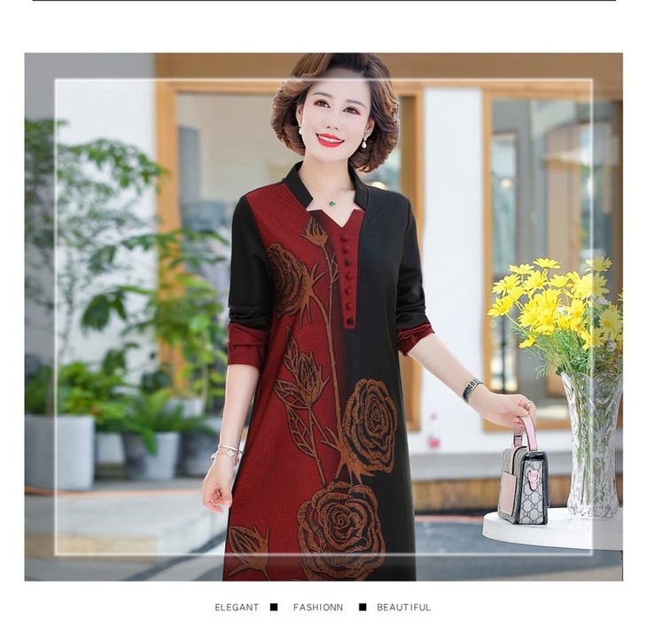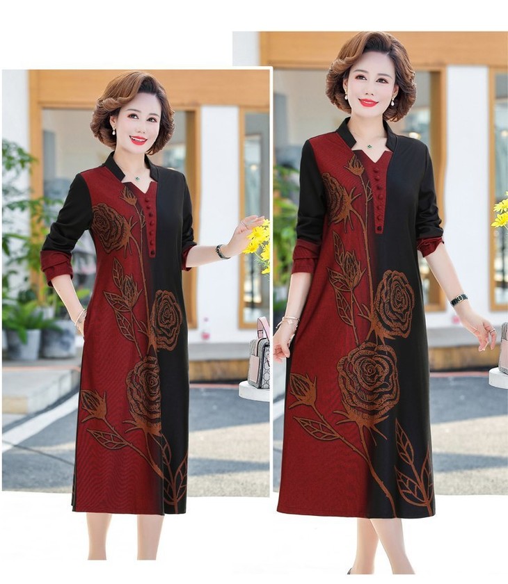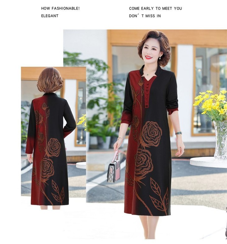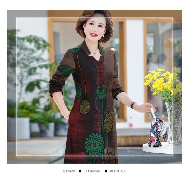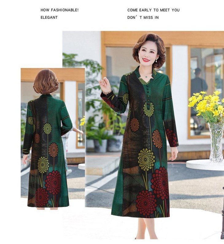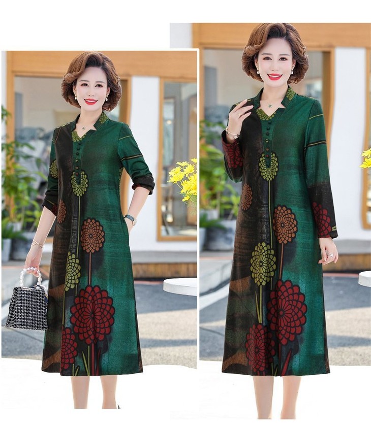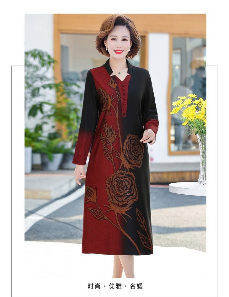 YCE-A935-2012印花大码宽松过膝宽松连衣裙