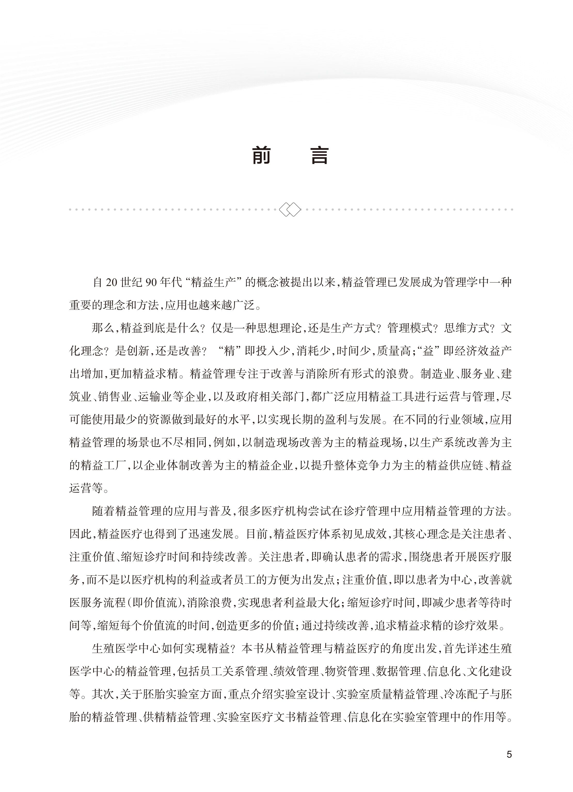 ★ 实用价值 围绕核心理念,即关注患者、注重价值、缩短诊疗时间和持续改善,系统解析精益管理在生殖医学中心的应用路径,助力机构优化流程、提升患者满意度与医疗质量。