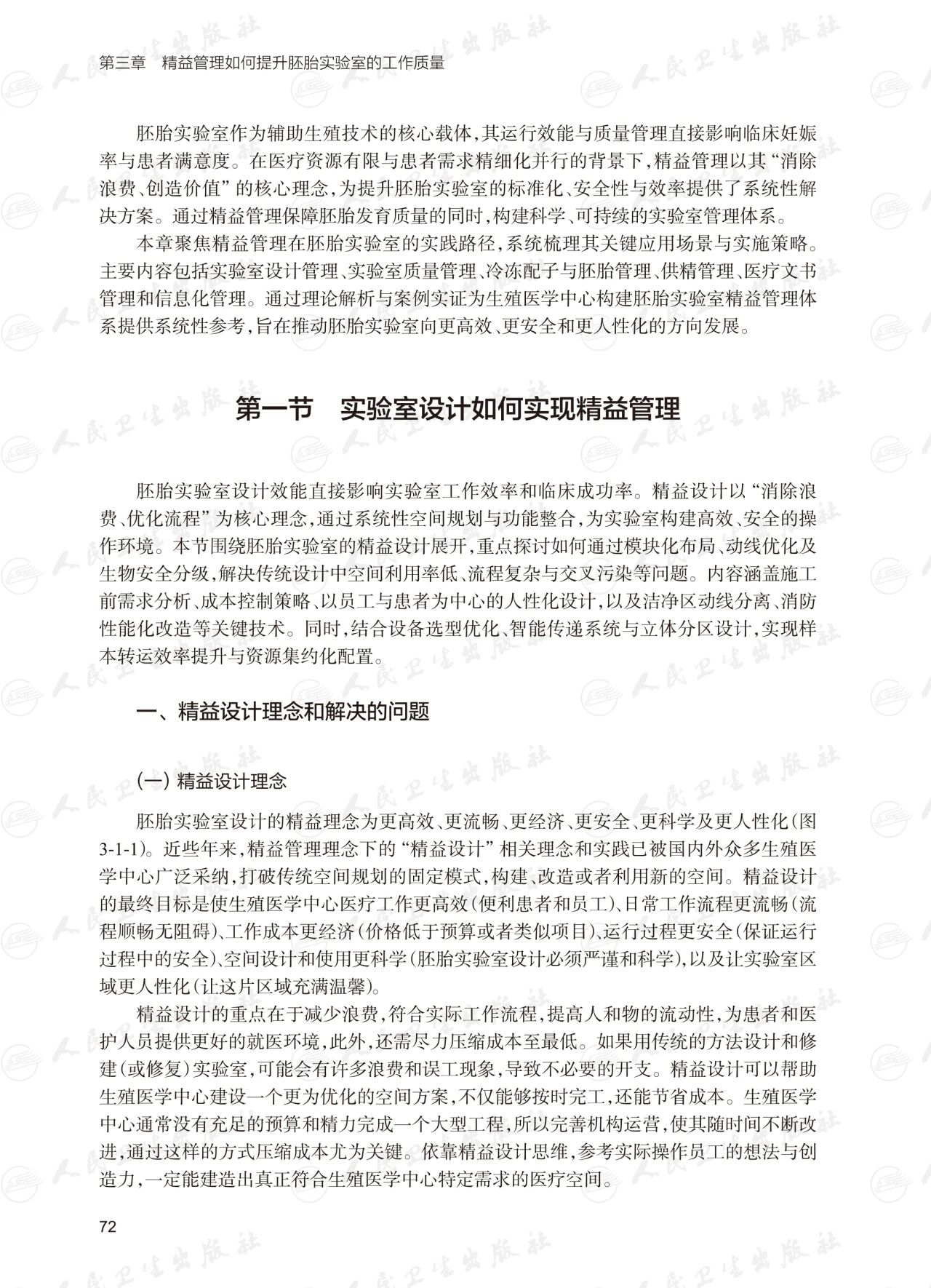 ★ 从精益管理与精益医疗的角度出发,首先详述生殖医学中心的精益管理。其次,对于胚胎实验室,重点介绍实验室设计、实验室质量精益管理、冷冻配子与胚胎的精益管理、供精精益管理等。再次,对生殖医学中心精益医疗进行详细阐述。最后,展望生殖医学中心精益管理的目标。