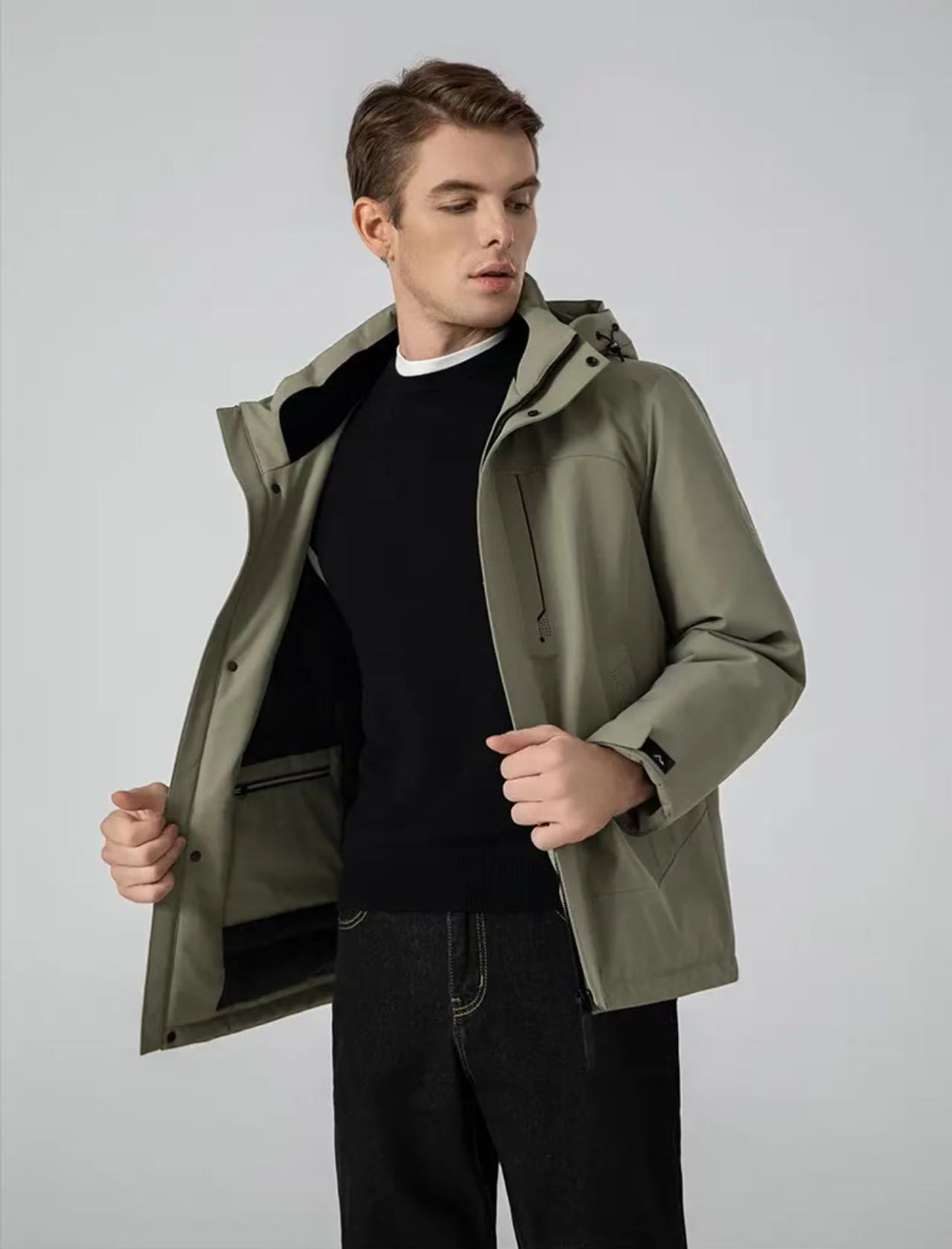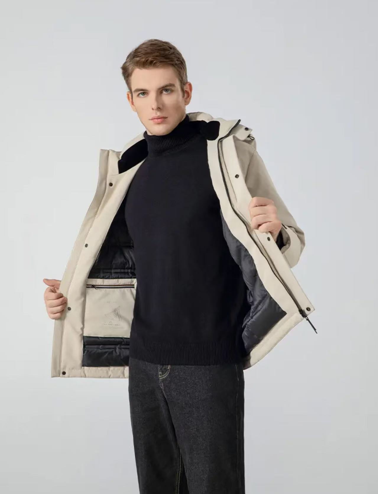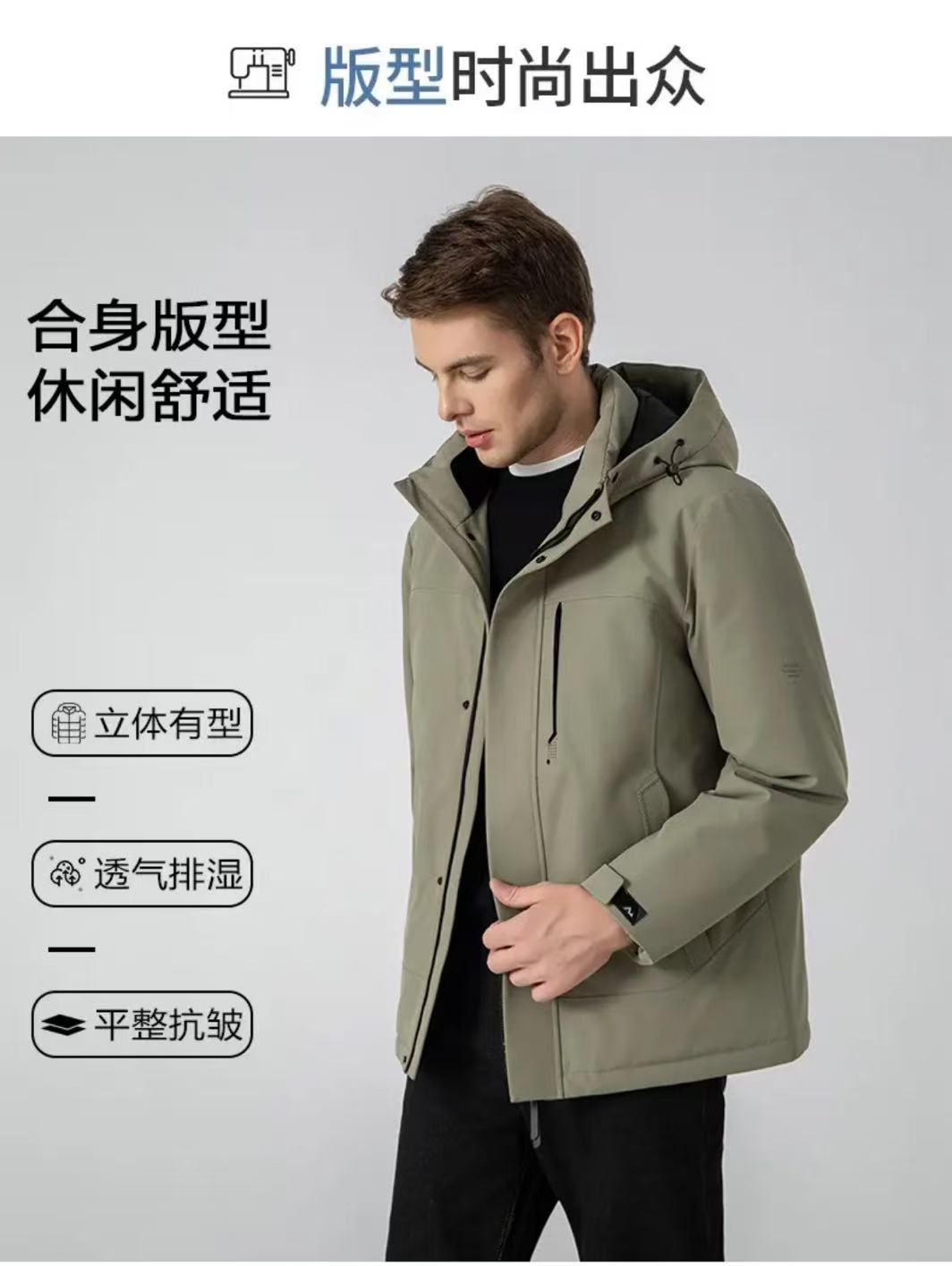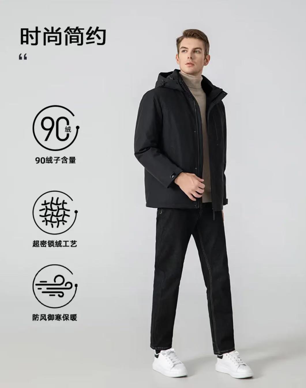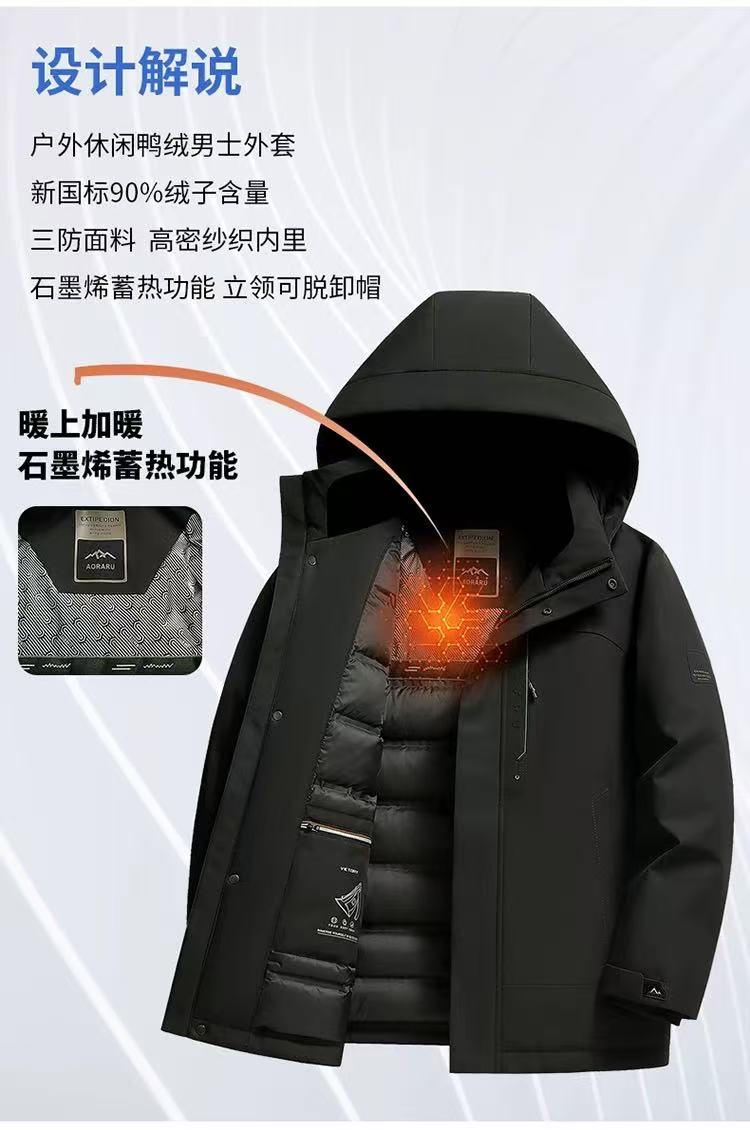 【防风防泼防寒 修身版型 90白鸭绒】罗蒙军事风石墨烯内里羽绒服外套