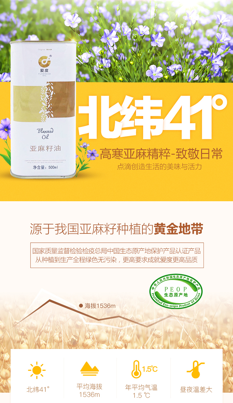爱度亚麻籽油1桶(500ml)